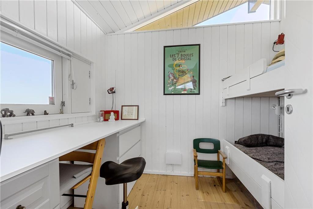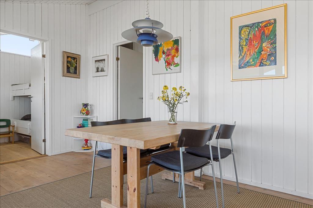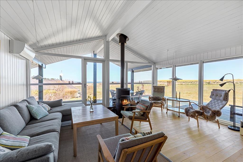 Huset indeholder rummelig og lys stue med TV, varmepumpe, brændeovn og fantastisk udsyn over Sejerø Bugten gennem de store panoramavinduer. Der er nyt og flot badeværelse med brus samt 3 rigtig gode og smukt indrettede soveværelser. 2 med dobbeltsenge(180cmx200cm) og et med køjeseng. Børneværelset har skrivebord under vindue også med udsyn over Sejerø Bugten og kan med fordel også bruges som arbejdsværelse. Køkkenet er åbent og indeholder opvaskemaskine. I entréen er der vaskemaskine huset er i det hele taget meget smagfuldt indrettet med øje for detaljerne. Hele huset omgives af en pragtfuld træterrasse, hvor solen og den fantastiske udsigt kan nydes både dag og aften. En del af terrassen er overdækket.