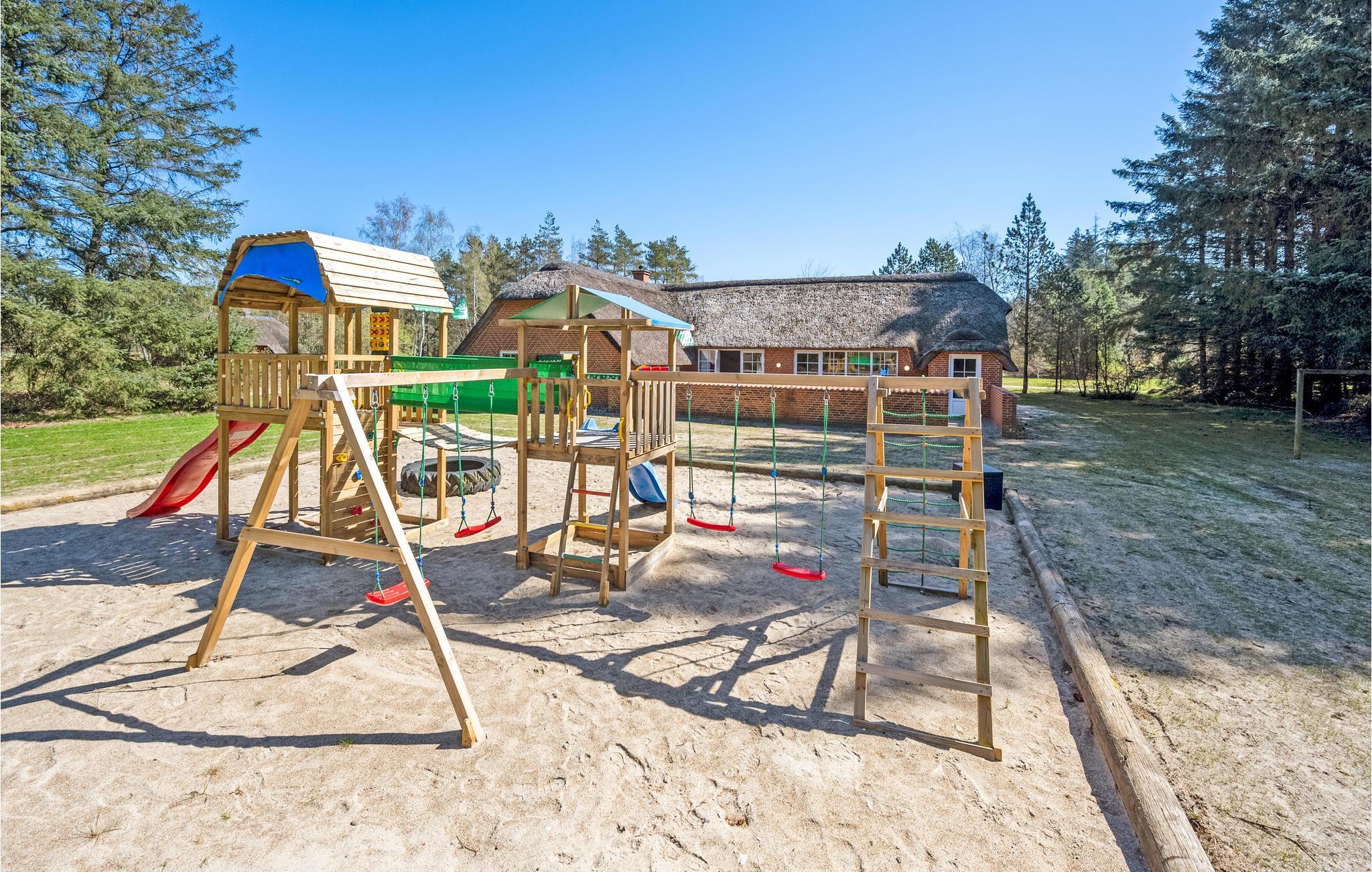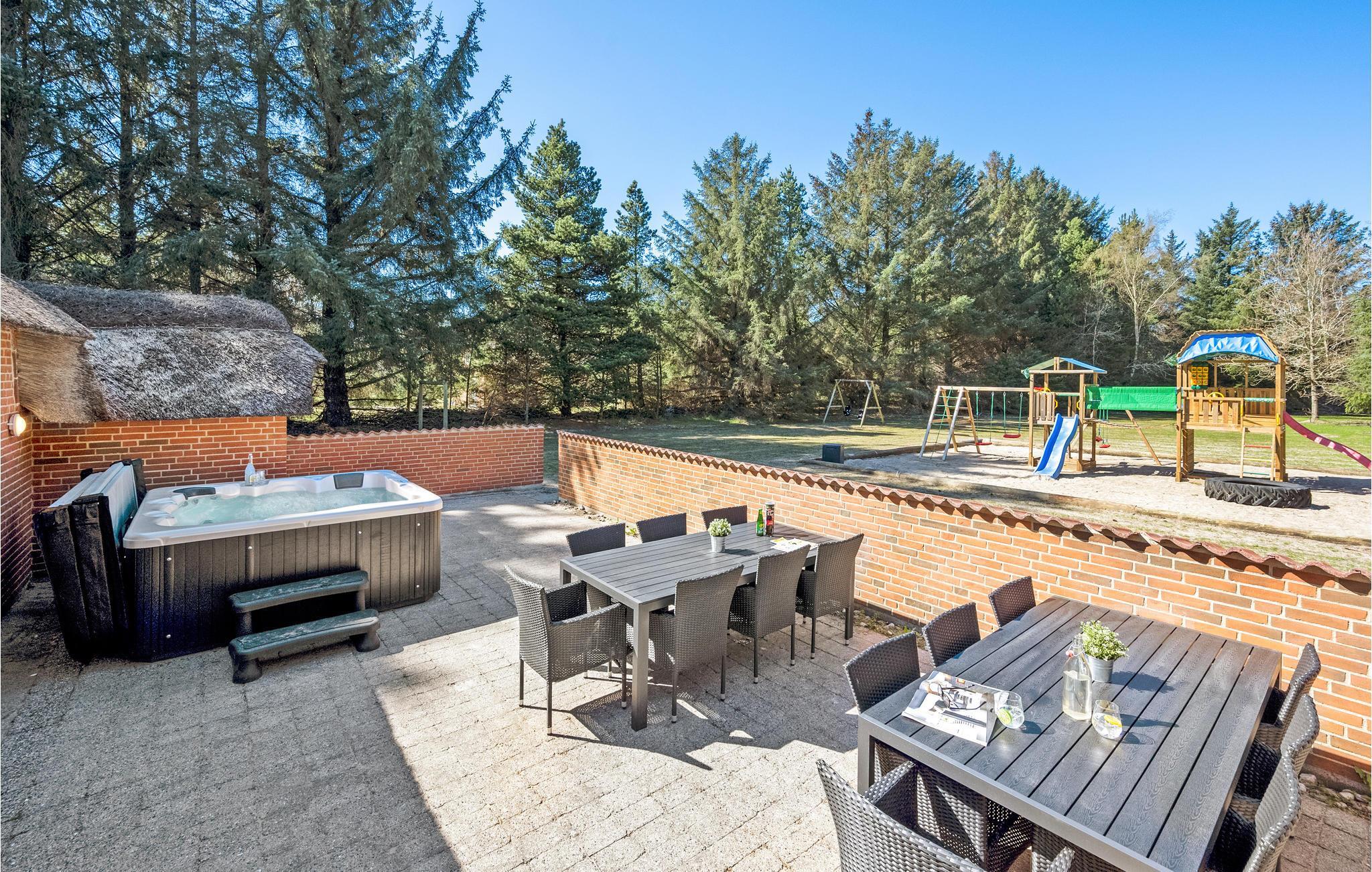 Stort stråtækt sommerhus med pool, sauna og udendørs spa.
