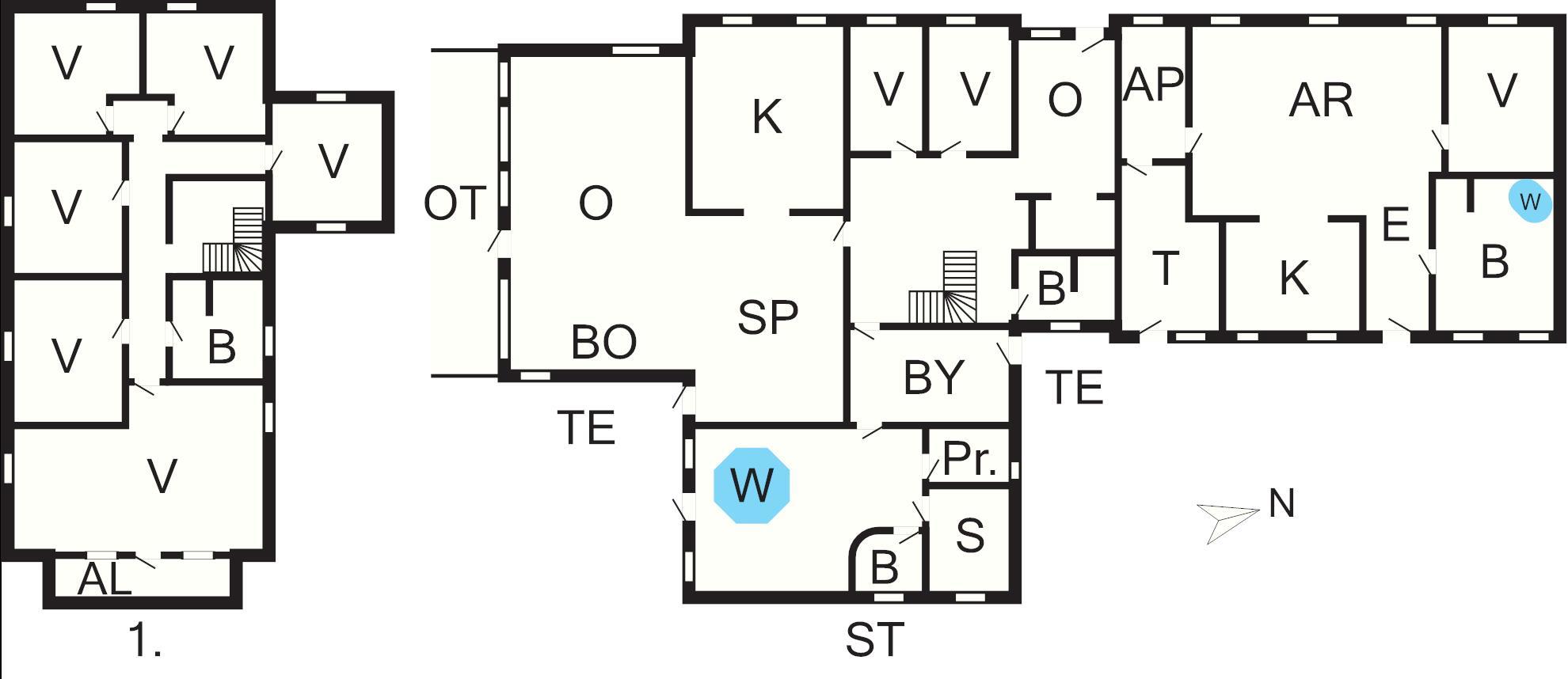 9 Soveværelser: (1DS)+(1DS)+(1DS)+(1DS)+(1DS)+(1DS)+(1DS)+(1DS+2K)+(2DS)