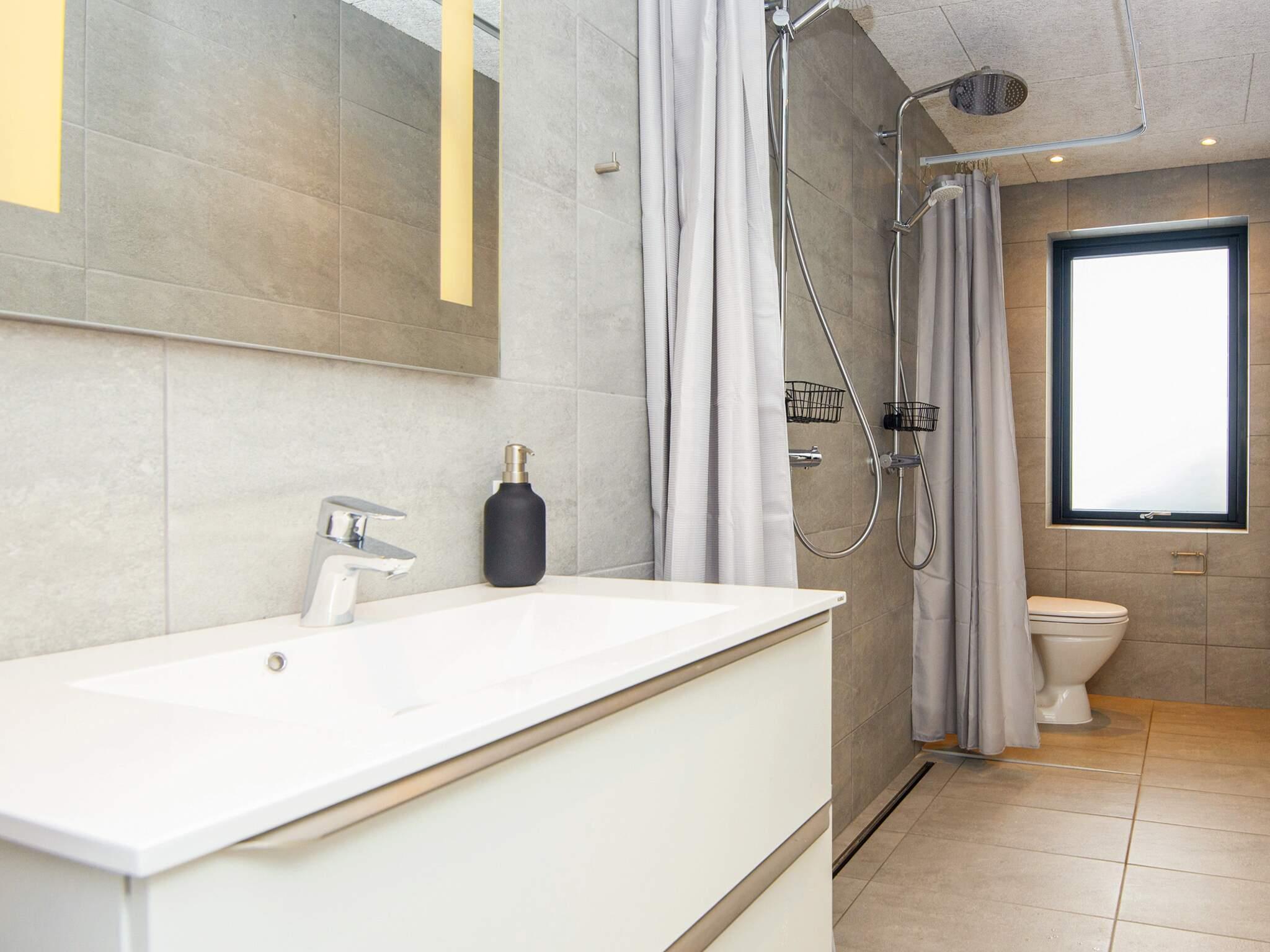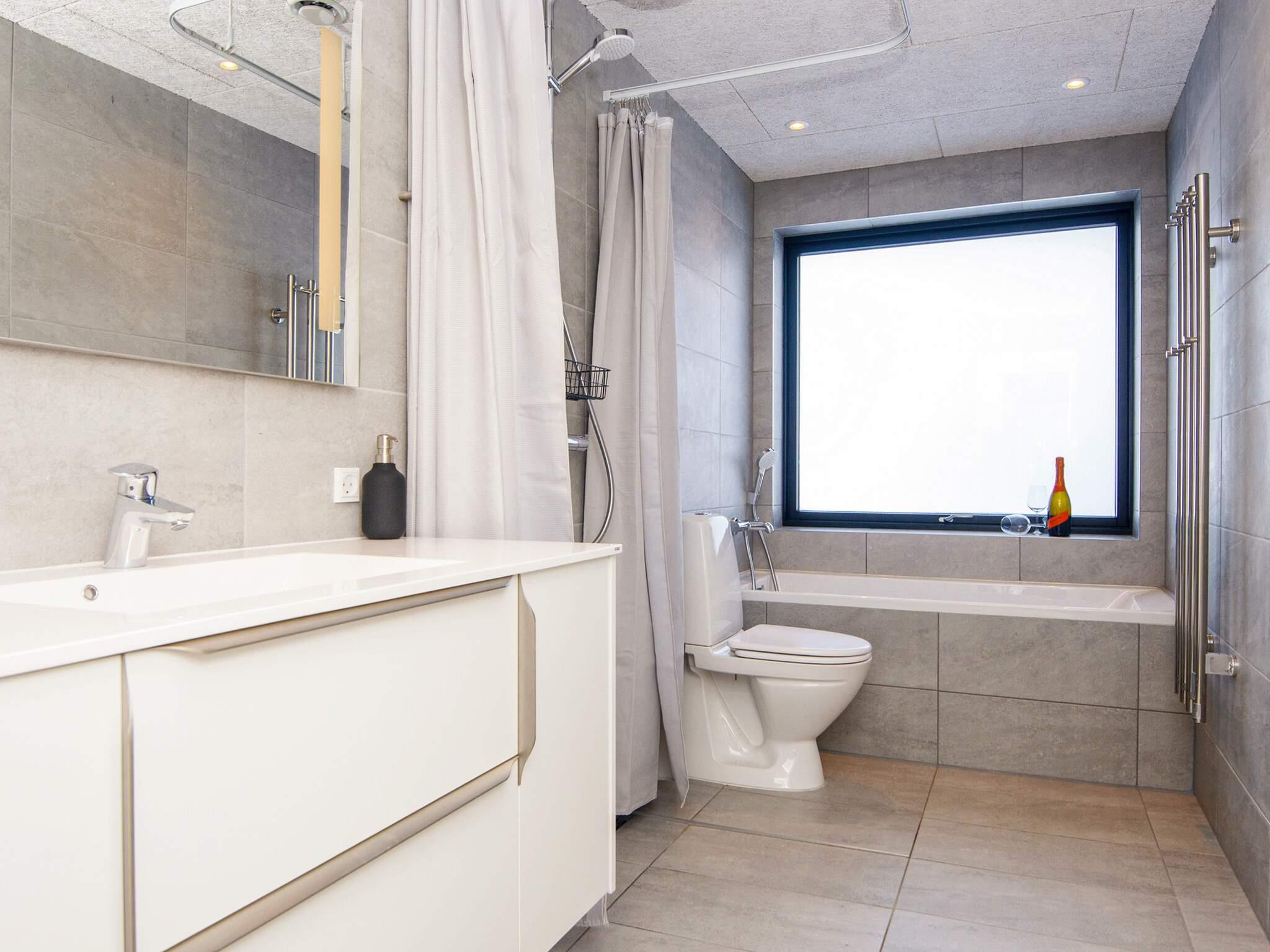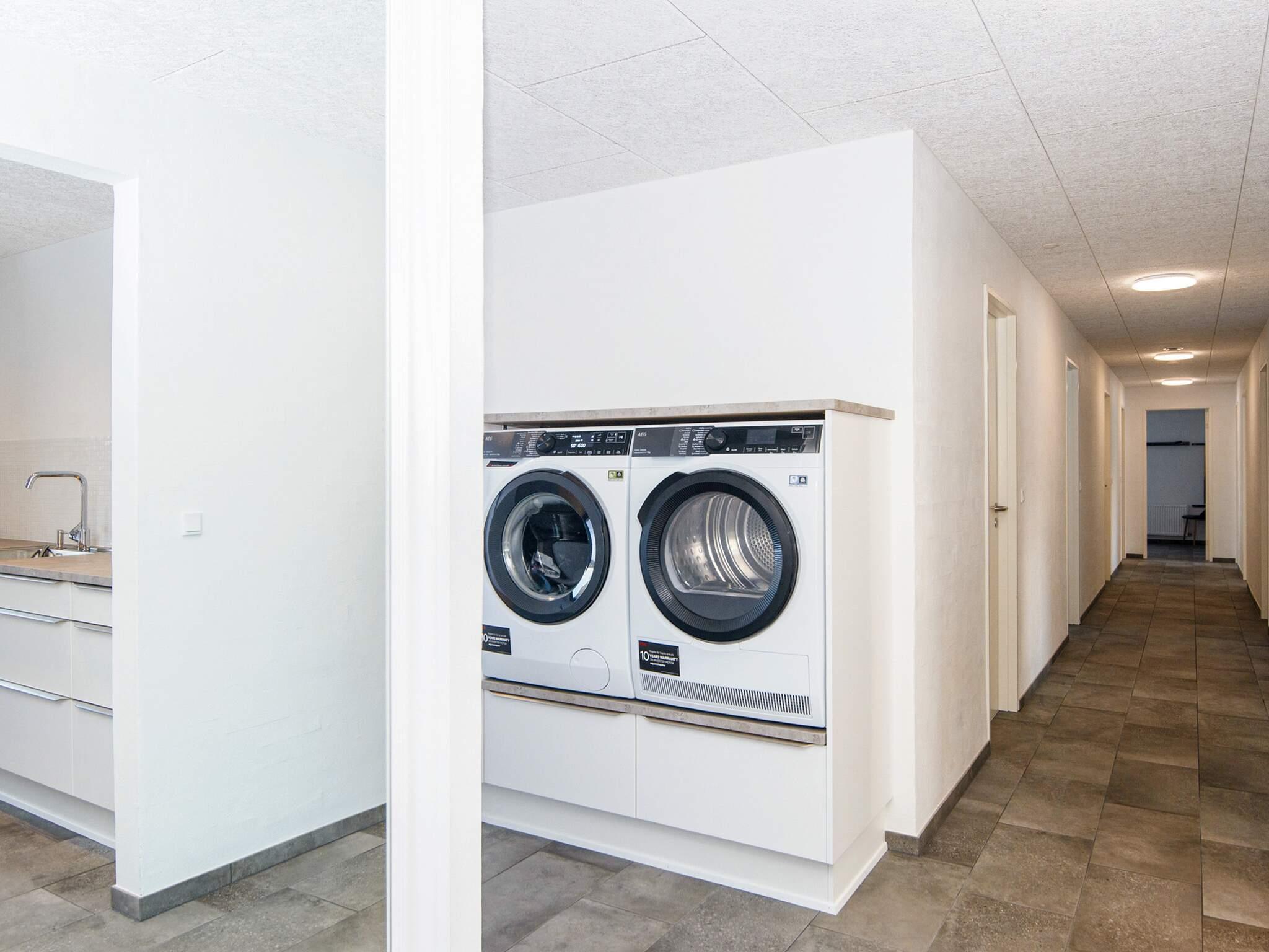 Der er to badeværelser, begge med gulvvarme, ligesom der er vaskemaskine og tørretumbler.