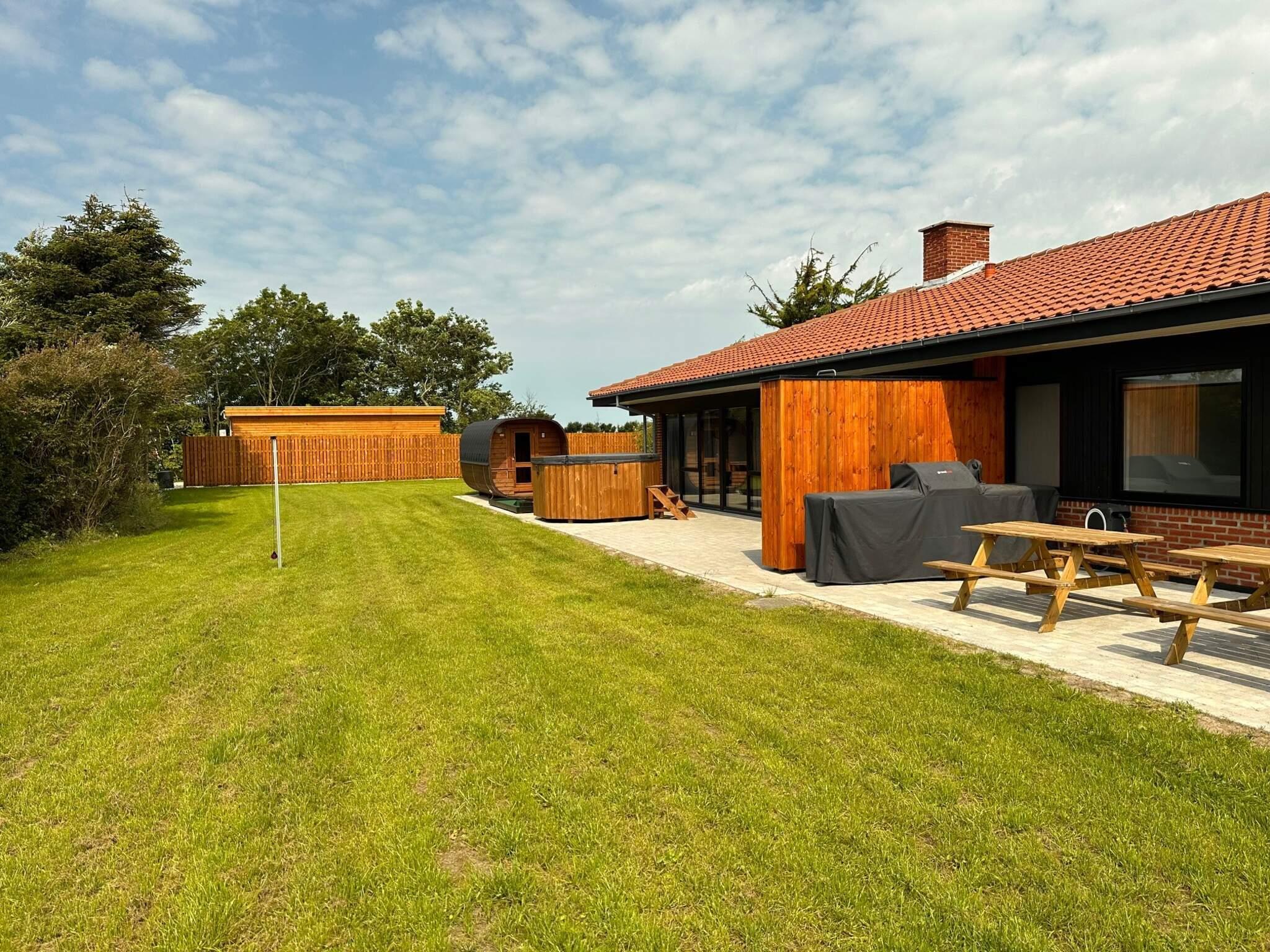 På Vedersø Klit finder du dette totalrenoverede sommerhus (2023) med sans for detaljen, beliggende på en 3700 m2 stor grund med aktiviteter for hele familien, både indendørs og udendørs. Huset byder også på et helt nyt luksus vildmarksbad med lys og bobler med plads til 14-16 personer, samt en kæmpe saunatønde med plads til 12-14 personer.