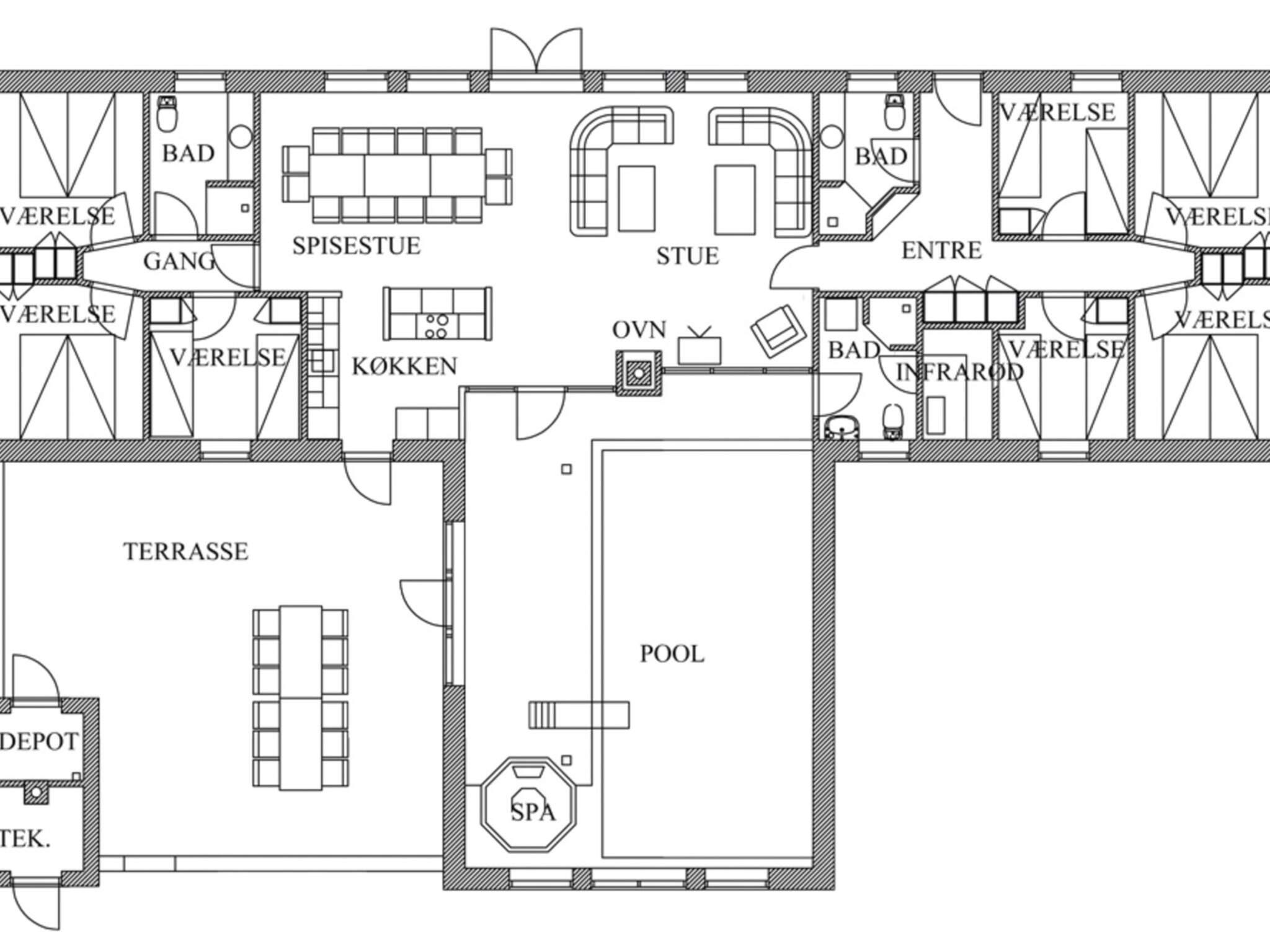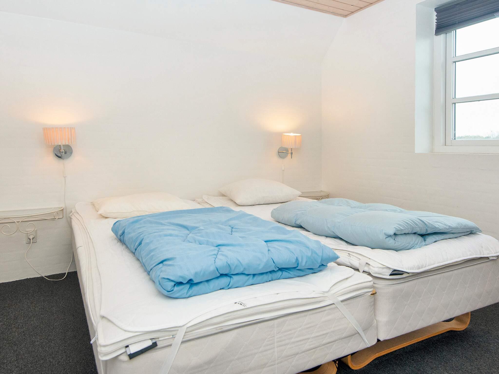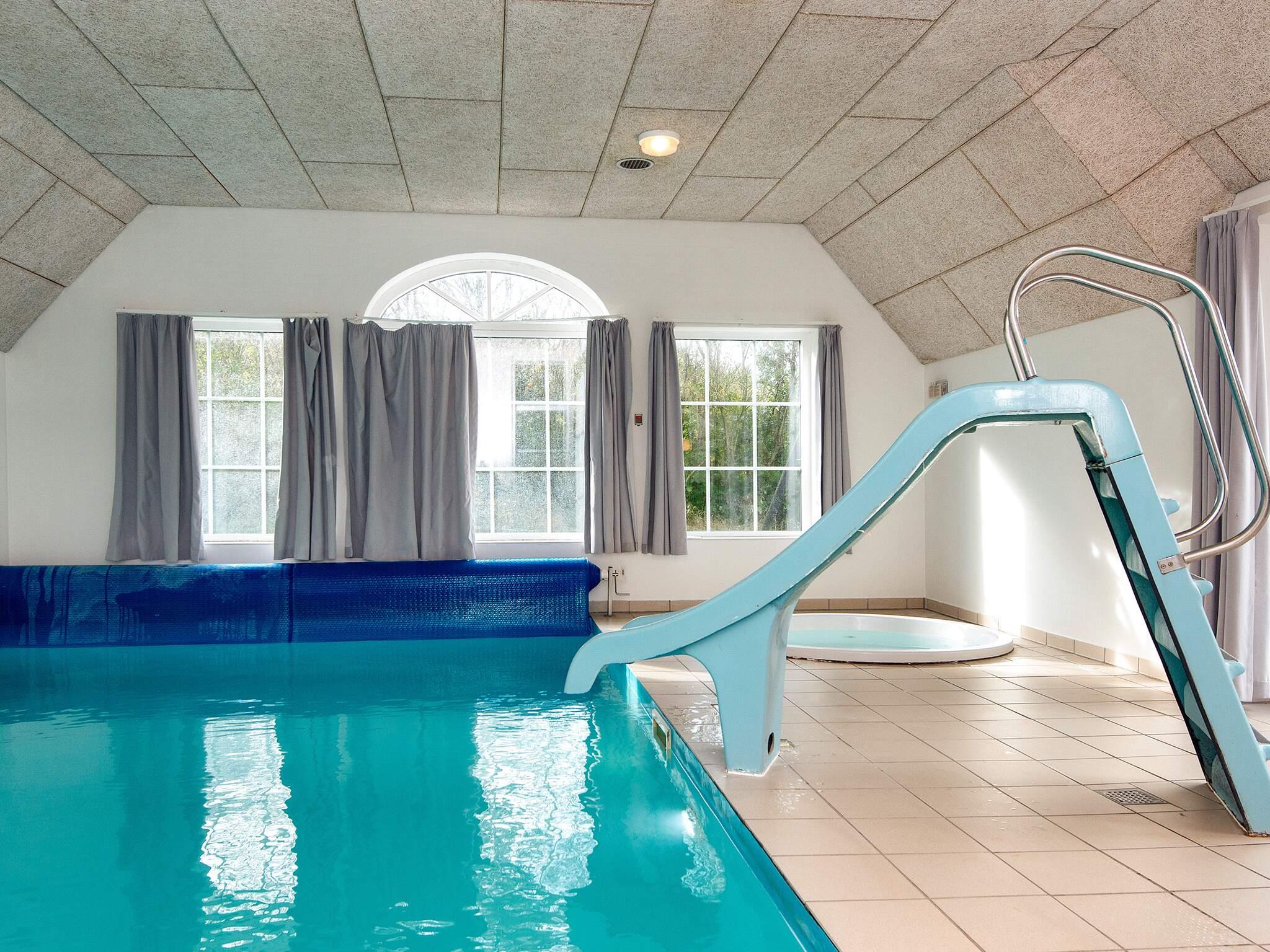 Dette 250 m² store stråtækte murstenshus ligger på 3500 m² naturgrund, hvor der er hoppepude, gynger og sandkasse til børnene. Huset er bygget i 2009 og ligger ca. 2 km fra det dejlige Vesterhav. I det herlige poolrum kan hele familien more sig i den store pool, på vandrutschebanen eller i det nedsænkede spa-bad. I forbindelse med poolrummet er der et badeværelse, hvorfra der er adgang til den infrarøde kabine. På den lukkede terrasse med direkte udgang fra køkkenet, er der stor mulighed for at nyde solen i havemøblerne og aftensmaden fra grillen. Der er ligeledes en lækker afskærmet terrasse foran huset, så solen kan nydes hele dagen. I luksushuset er der 3 badeværelser med toilet, håndvask, bruseniche og gulvvarme. Den knitrende brændeovn og oliefyret opvarmer huset. I luksushuset er der 18 sovepladser: 4 værelser med dobbeltsenge, 2 værelser med hver 4 køjepladser, 1 værelse med 2 enkeltsenge. 2 husdyr er tilladt RYGNING ER IKKE TILLADT.