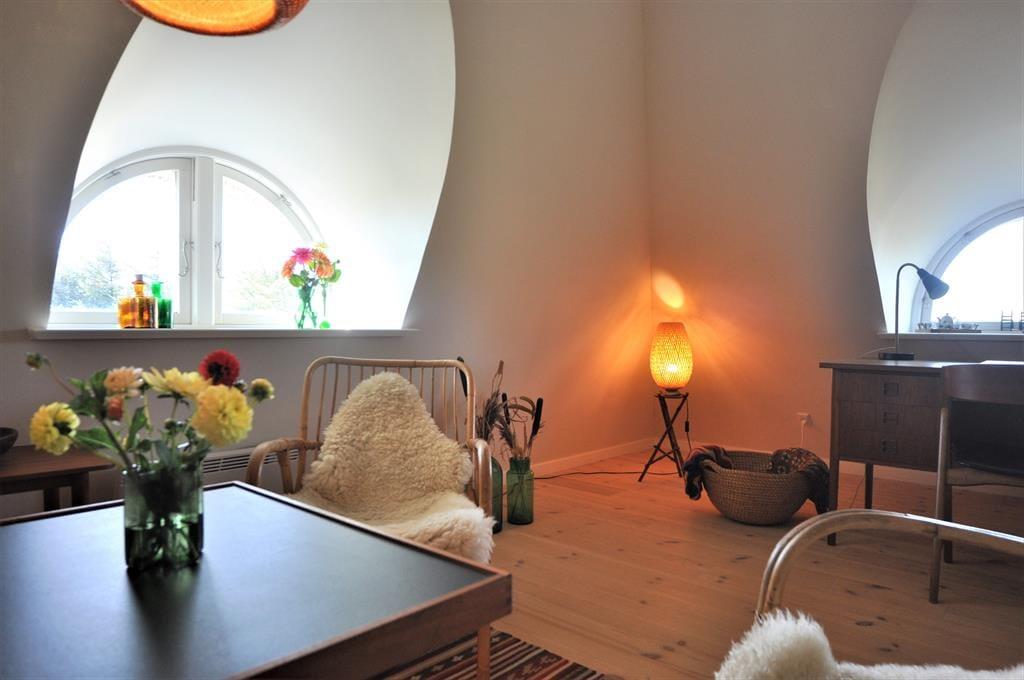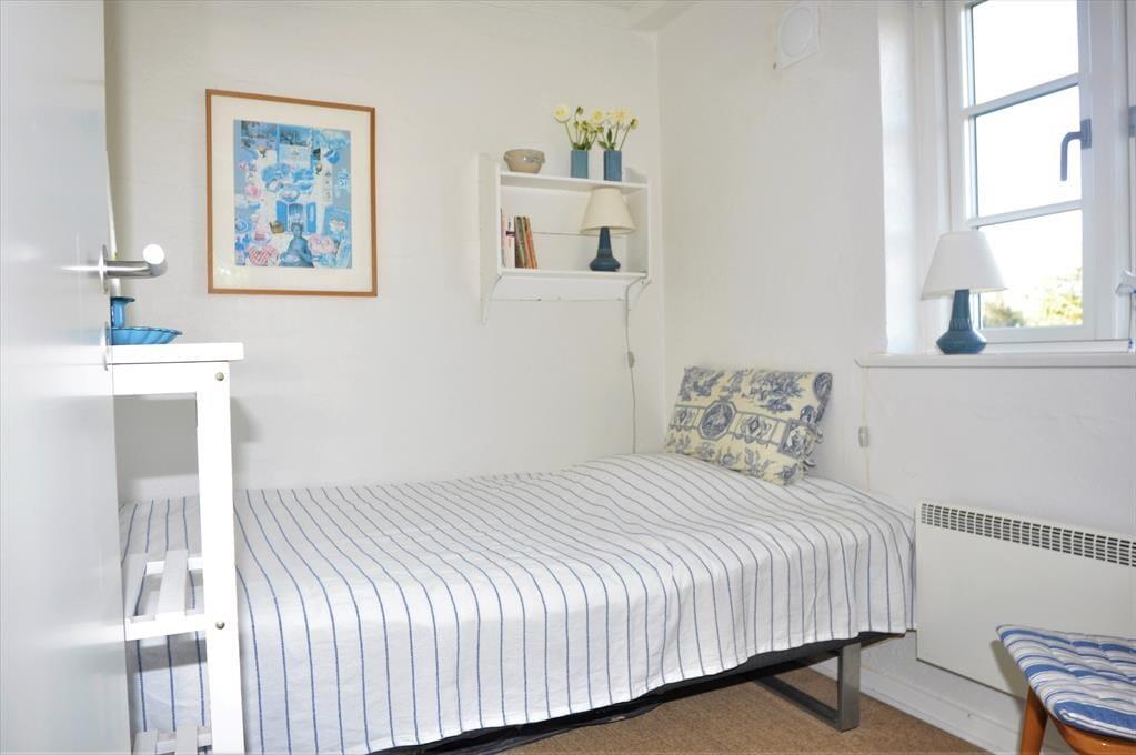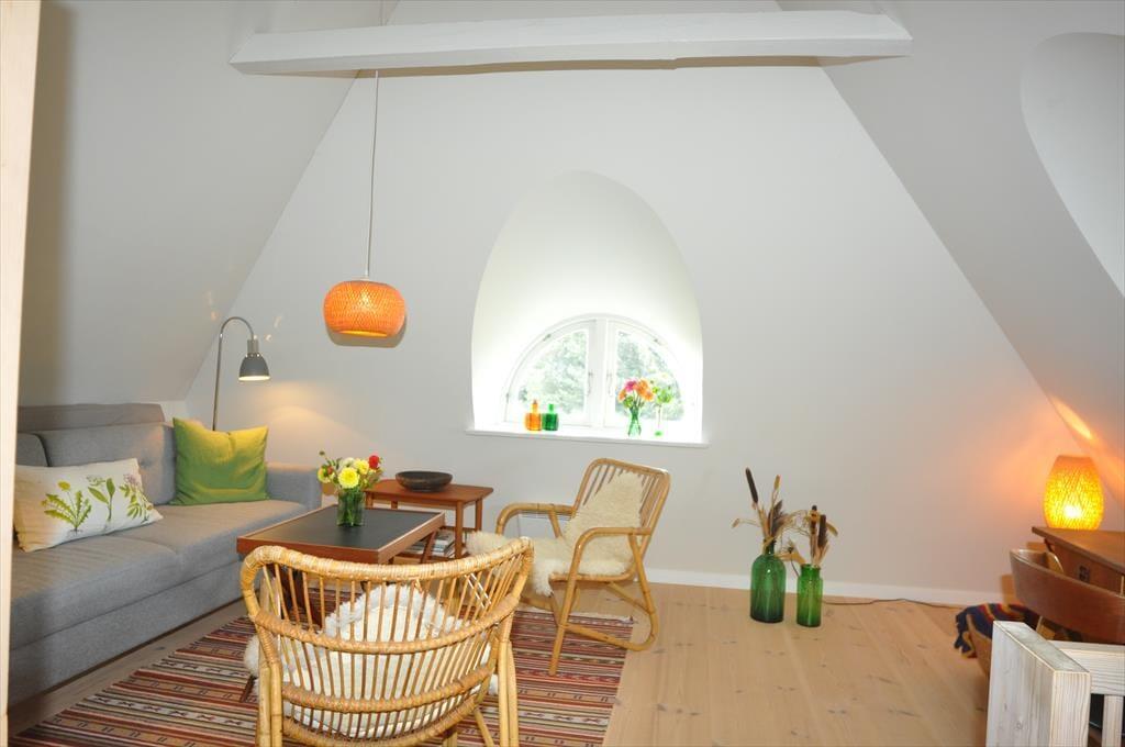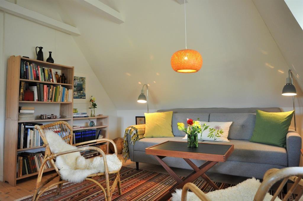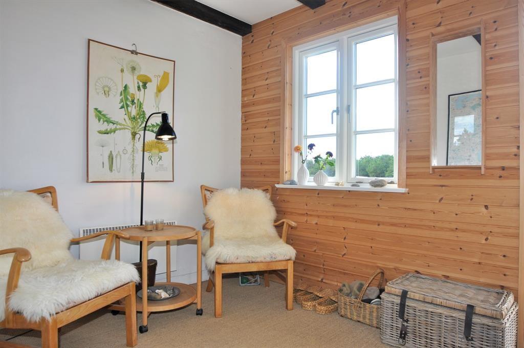 Fra stuen fører trappen jer op til første sal, hvor loftet åbner sig til kip og skaber en luftig og lys atmosfære. Her finder I et rummeligt soveværelse og en tilhørende stue – det perfekte sted at starte dagen med en stille stund og nyde morgenkaffen, mens I lader blikket glide ud over det bølgende klitlandskab.