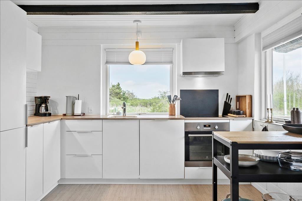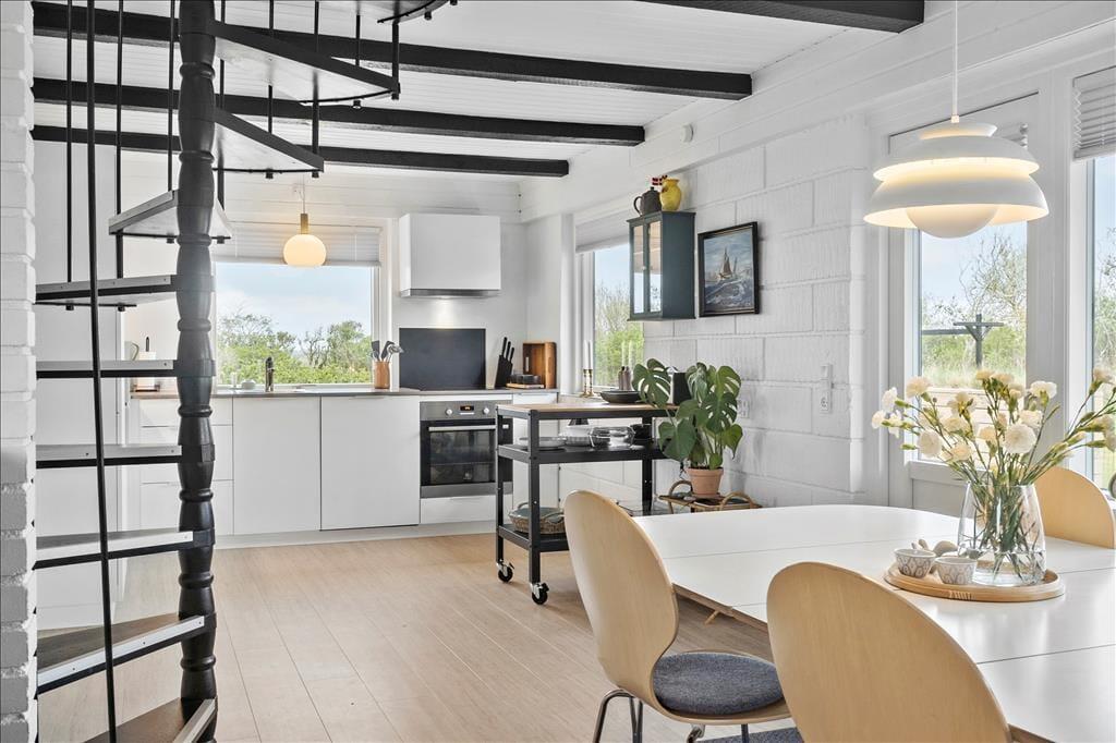 Yderst smukt feriehus, med en dejlig atmosfære der bare emmer af ferie og godt humør. Giv jer i kast med at lave et lækkert aftensmåltid i det veludstyrede og nyrenoverede køkken, hvor der er god plads til hele familien, og med det smukke lysindfald kan I nyde solens stråler selvom I er indendørs. Sæt jer omkring det flotte spisebord i spiseafdelingen der ligger i åben forbindelse med opholdsstue og køkken, her kan I nyde aftensmaden som en samlet flok, men det gør det også muligt at lave forskellige ting uden at være væk fra hinanden. Efter en lang dag med at udforske området kan I tænde op for brændeovnen og nyde dens dejlige varme og herlige knitrende lyd der spreder sig i rummet og giver en fantastisk ro.