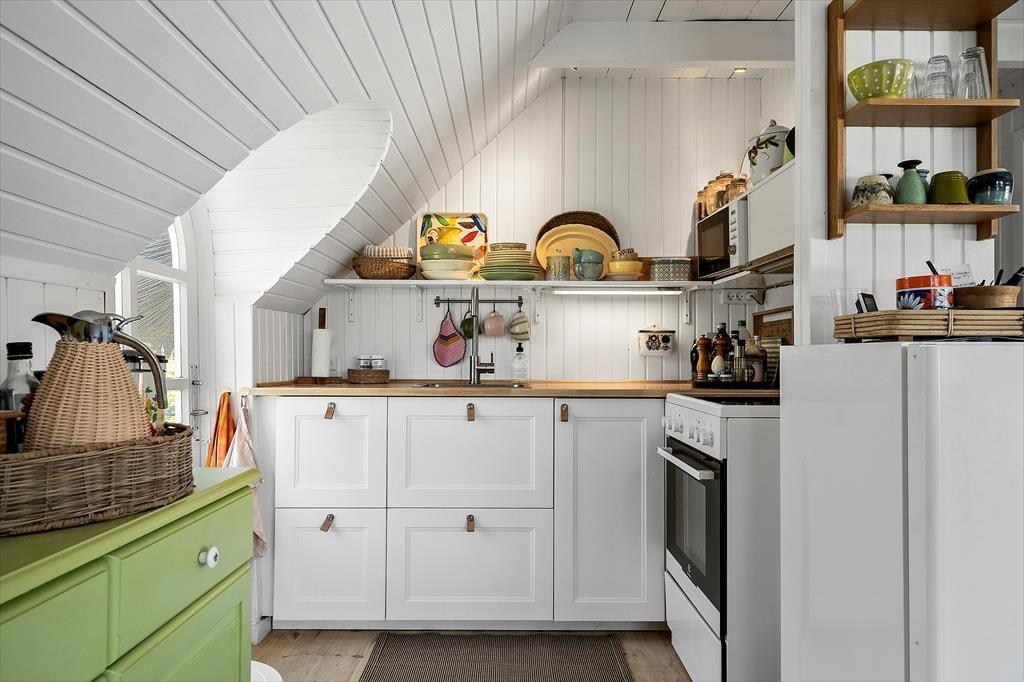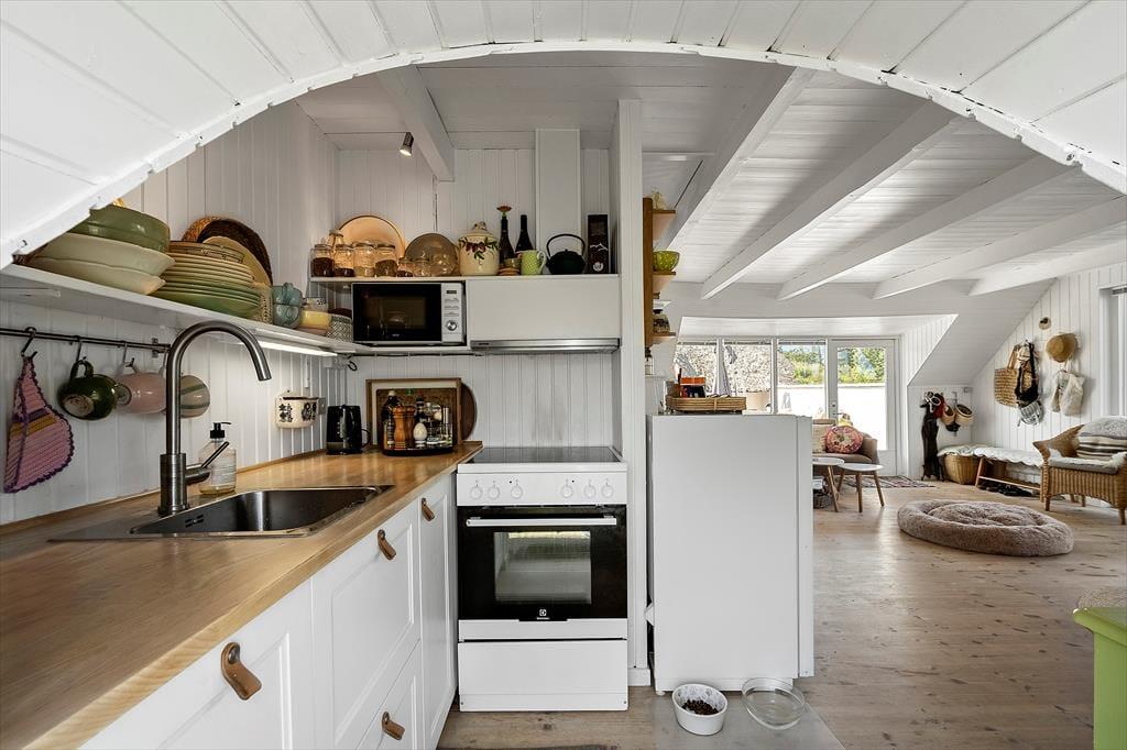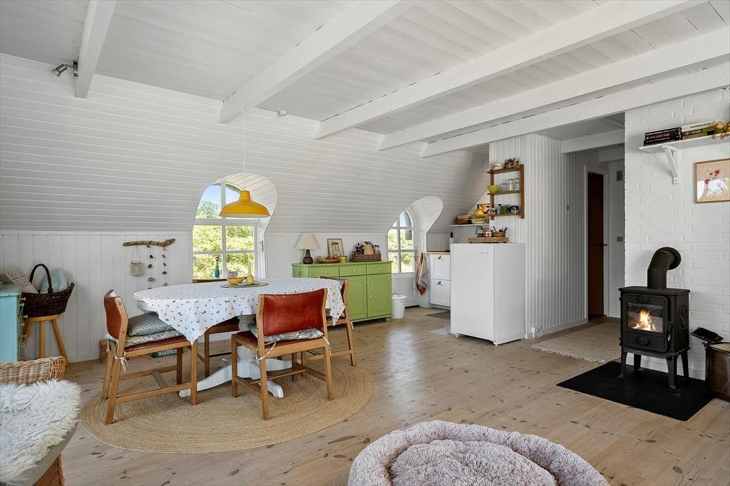 Velkommen til et hyggeligt og velindrettet feriehus, hvor rammerne er sat for en afslappende ferie. Her er opholdsstuen, spiseområdet og køkkenet forenet i en åben og lys planløsning, der indbyder til samvær. Fra spiseafdelingen er der direkte udgang til en skøn træterrasse — perfekt, når aftensmaden skal nydes under åben himmel. Badeværelset er lyst og pænt, og huset rummer to gode, lyse soveværelser. I det charmerende anneks finder I endnu et værelse med to enkeltsenge samt eget toilet og bruser — ideelt til større børn, forældre eller venner, der ønsker lidt ekstra privatliv. Huset har en hyggelig brændeovn, der spreder varme og stemning på kølige dage.