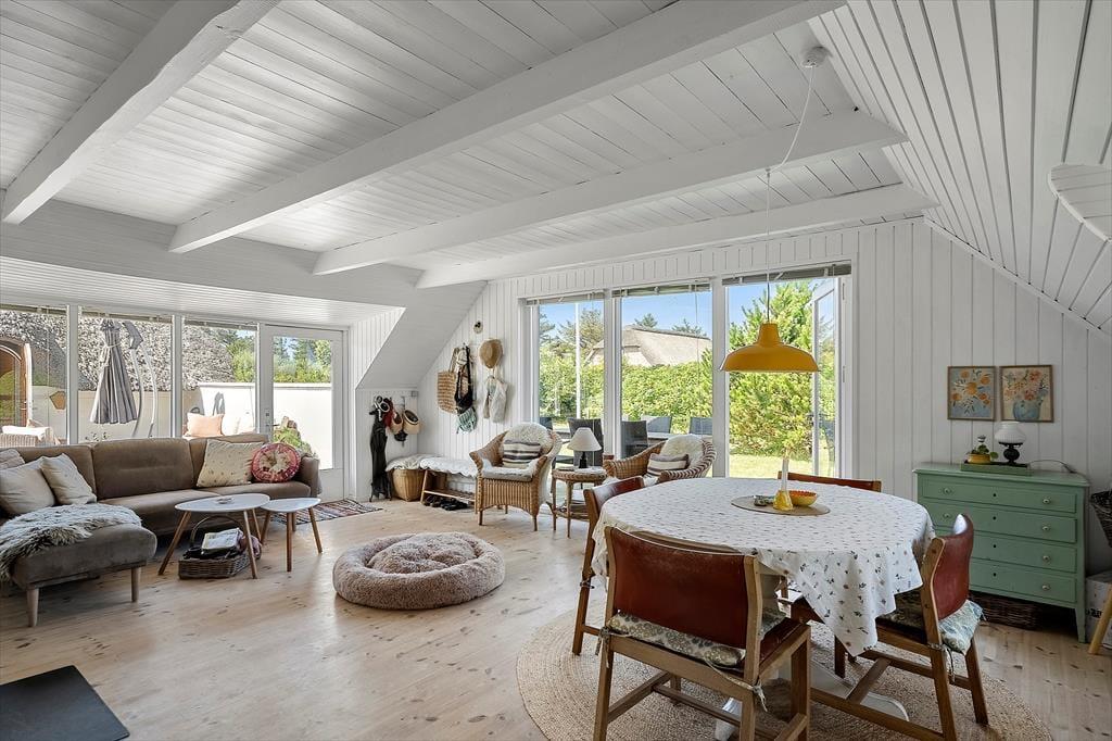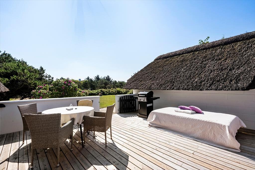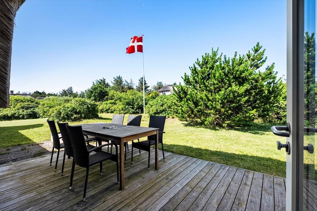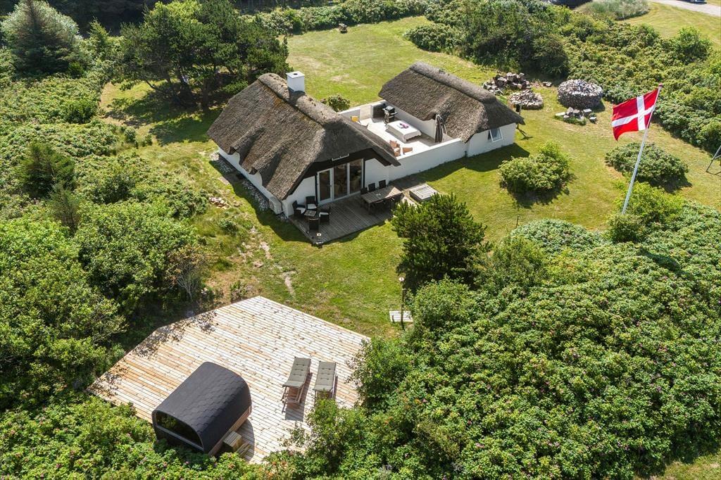 Huset ligger i det naturskønne ferieområde Vedersø Klit med masser af storslået natur og skønne badestrande, som bærer Det Blå Flag. Kun få kilometer mod nord finder I Husby Klitplantage med afmærkede vandreruter og en populær badesø. Den lavvandede Nissum Fjord er et paradis for vadefugle, og langs fjorden ligger fredede reservater, hvor I kan opleve et rigt fugle- og planteliv. Dagligvareindkøb kan klares i områdets hyggelige, lokale supermarkeder.