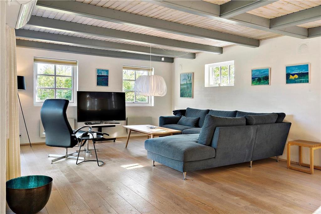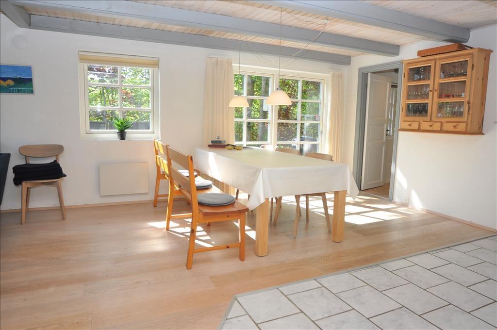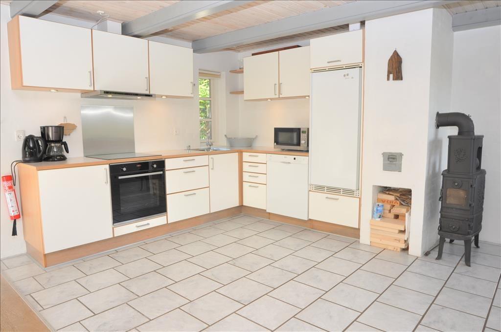 Bliv mødt af et dejligt stort opholdsrum med stue, køkken og spiseafdeling i et og samme rum, her er mulighederne altså mange for at I kan få en masse hyggelige stunder, for imens nogle laver mad, kan andre spillekort omkring spisebordet og de resterende kan nyde en god film i fjernsynet, men alle kan stadigvæk være med i en og samme samtale, så lade samtalen flyde. Skulle det en dag ske at være en smule køligt så tænd op i den charmerende brændeovn og nyd dens varme stråler og hyggelige knitrende lyd der spreder sig i hele rummet.