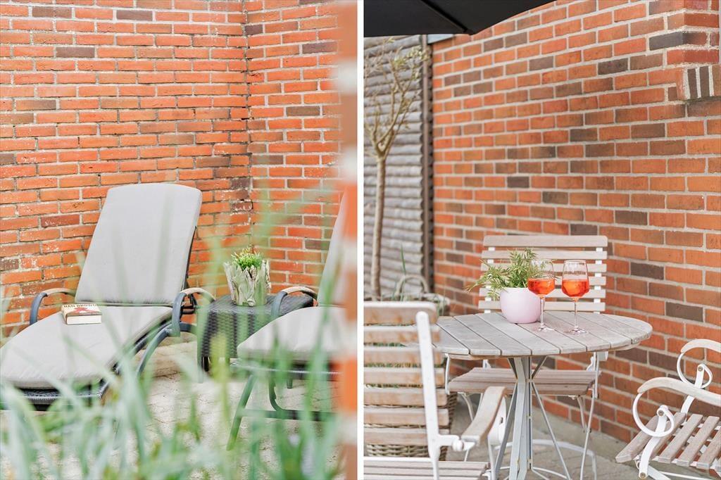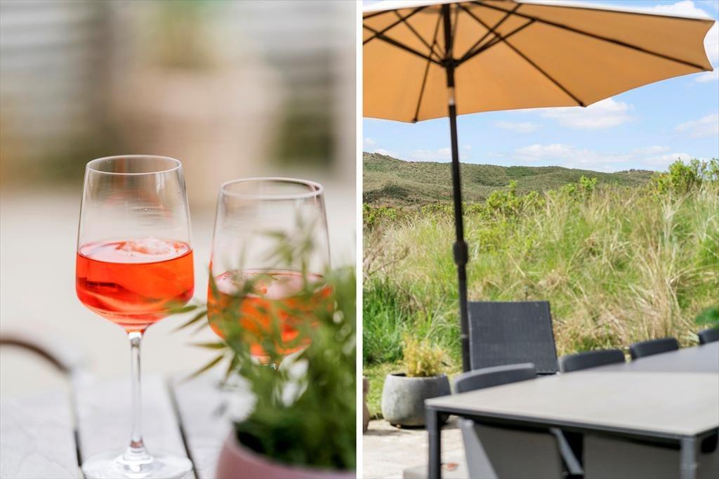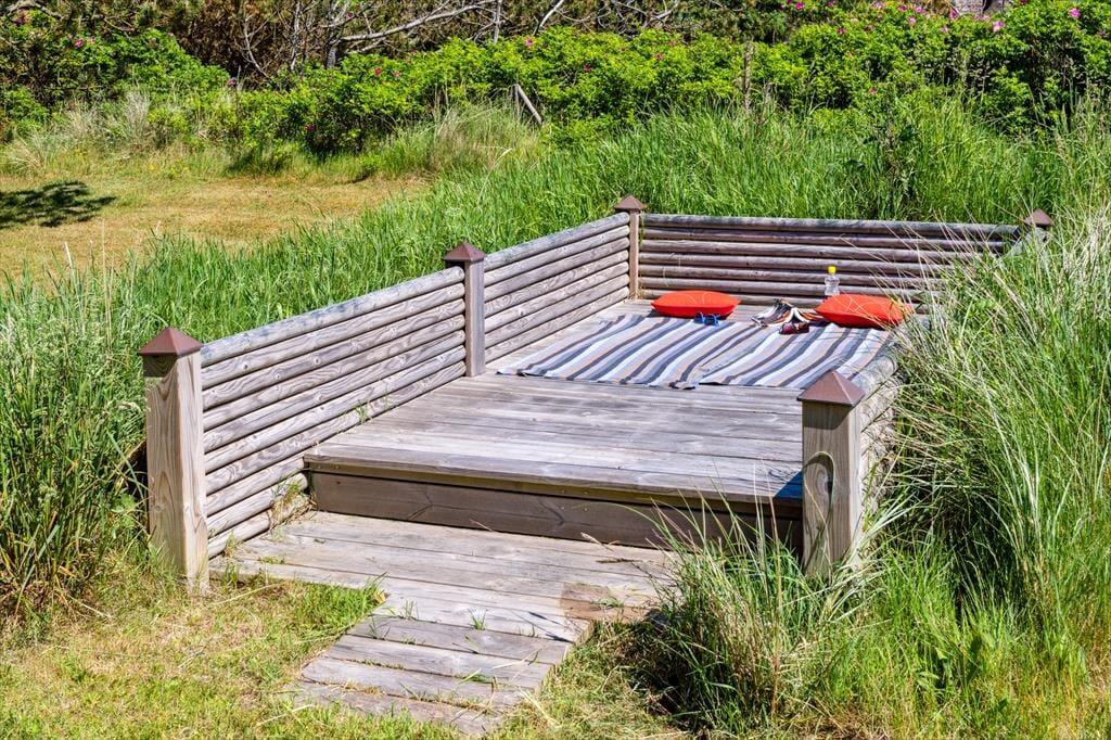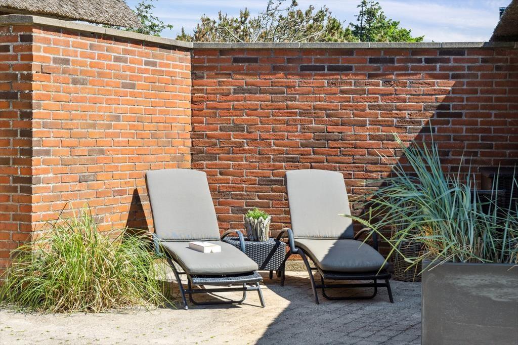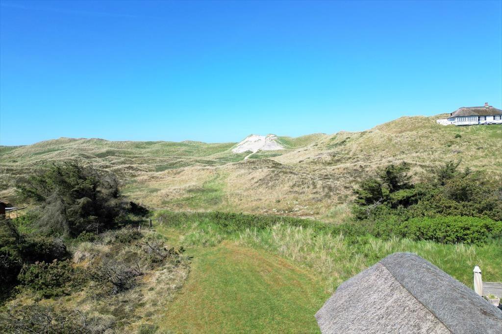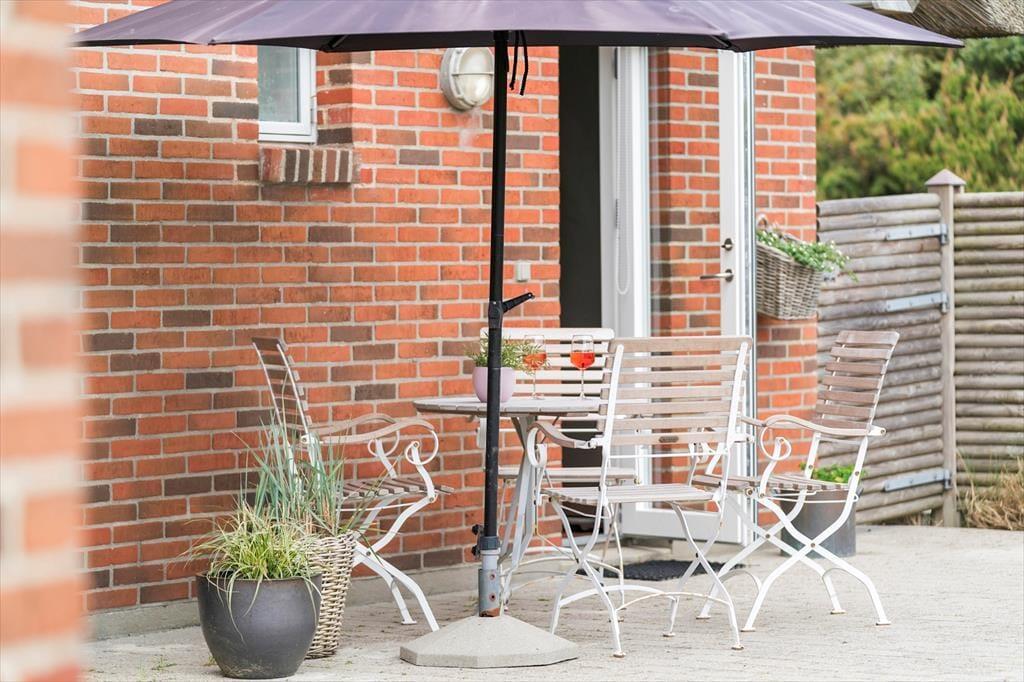 Tag dagens første kop kaffe med udenfor på den smukke østvendte terrasse, og lad hunden løbe frit på den store indhegnede grund, imens kan I nyde dagens første kop kaffe, den fantastiske udsigt over klitterne, den smukke solopgang, den skønne lyd af havets brusen, som næsten altid kan høres, og fuglene der lystigt synger dagen ind. På den østvendte terrasse kan I nyde den dejlige læ, da der er opsat læhegn som giver fantastisk læ. Den store ugenerede grund giver gode muligheder for at hunden kan løbe frit og ungerne kan lege løs.