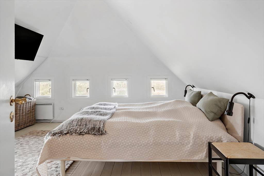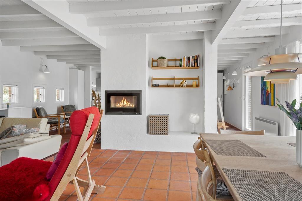 Dette utroligt smukke feriehus byder jer velkommen til en dejlig afslappende ferie med familien. Når I træder ind i den skønne opholdsstue der ligger i åben forbindelse med både spiseafdeling og køkken, vil jeres øjne straks rette sig mod de store vinduer hvor det strømmer ind med lys. Sæt jer omkring det flotte spisebord og nyd en lækker brunch sammen med hele familien, imens kan I nyde den smukke udsigt ud gennem vinduerne, og glem ikke at tænde op i den dejlige brændeovn, der spreder både varme og hygge. Til huset hører et dejligt anneks, så der også er mulighed for at trække sig tilbage og nyde roen i eget selskab.