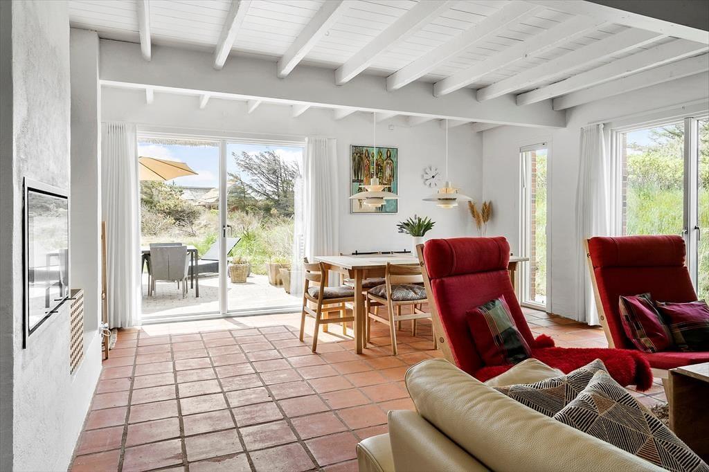 Feriehuset finder I, i det skønne feriehusområde Vedersø Klit. Det smukke feriehus ligger på den skønneste ugenerede grund kun 208 meter fra Vesterhavet, nå ja og I har da også sti direkte fra grunden ned til det smukke og vilde Vesterhav, så tag badetøjet på og følg lyden af havets brusen hele vejen ned til vandet, her kan I nyde det kølige klare vand, om så det er med en dukkert eller solbadning på stranden er helt op til jer, og glem ikke at se den smukkeste solnedgang i horisonten. Heller ikke langt fra feriehuset finder I Husby Klitplantage hvor I kan nyde en dejlig gåtur på nogle af plantagen mange stier, og skulle I en dag have lyst til at slippe jeres indre vandhund fri i det skønne nye badeland Lalandia i Søndervig der kun ligger en kort køretur fra feriehuset. I Vedersø Klit findes der to elbil-ladestationer, hvor du nemt kan oplade din bil under opholdet.