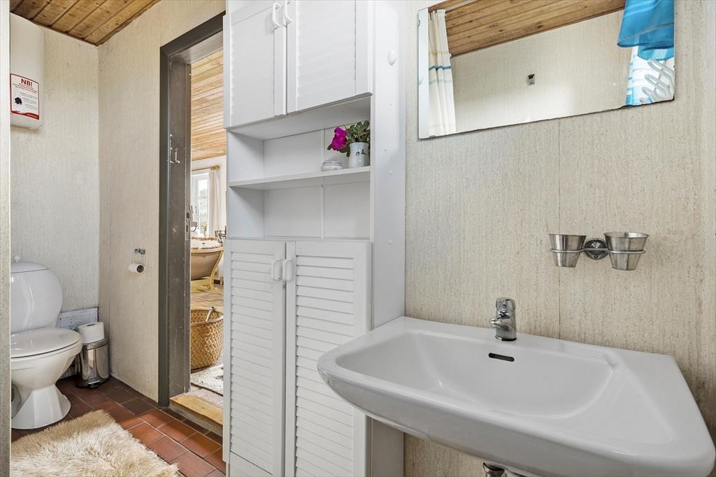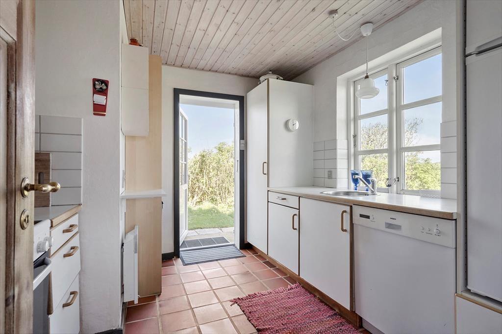 I dette ældre og meget hyggelige sommerhus bliver I mødt af en hyggelig atmosfære der emmer af ro. Her kan I trække stikket og koble helt fra efter hverdagens stress og jag. Sæt jer i den yderst hyggelige stue og glem ikke at tænde op for den gamle og meget charmende brændeovn der spreder en fantastisk varme og en hyggelige knitrende lyd. Når I skal lave mad i det dejlige køkken, skal I ikke være bekymrede for at gå glip af samtalen der flyder omkring spisebordet, fordi køkkenet ligger i åben forbindelse med spiseafdeling og opholdsstuen.