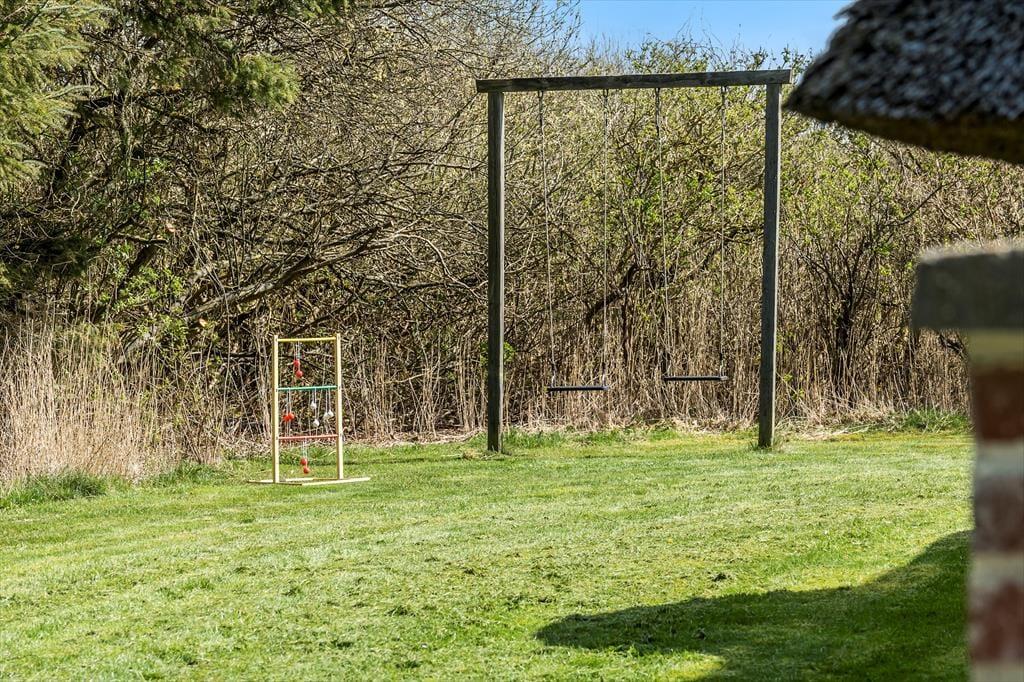 Den store grund inviterer til leg og bevægelse – måske en fodboldkamp eller en omgang tag-fat, der får pulsen op. Når de voksne trænger til en pause, og børnene stadig har energi, står gyngerne klar. I mellemtiden kan I nyde solens varme på den dejlige terrasse. Om sommeren er det oplagt at spise ude, slappe af i liggestolene og bare være til, mens fuglene synger, og duften af sommer fylder luften.