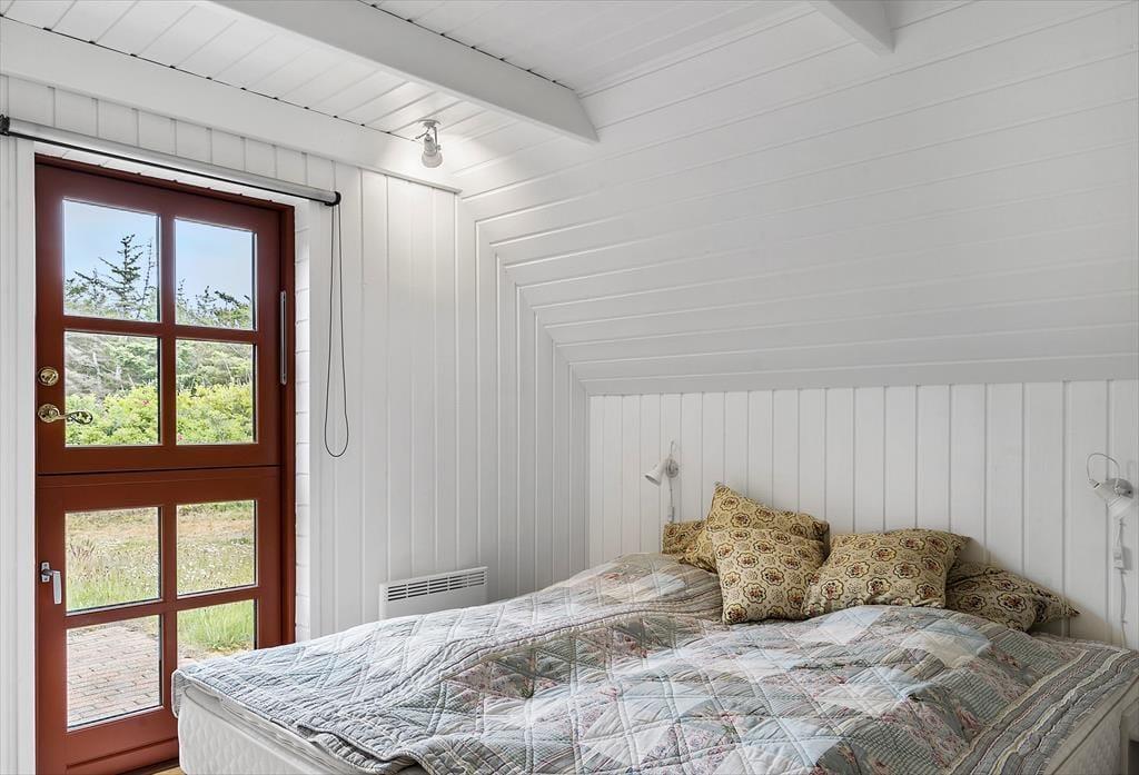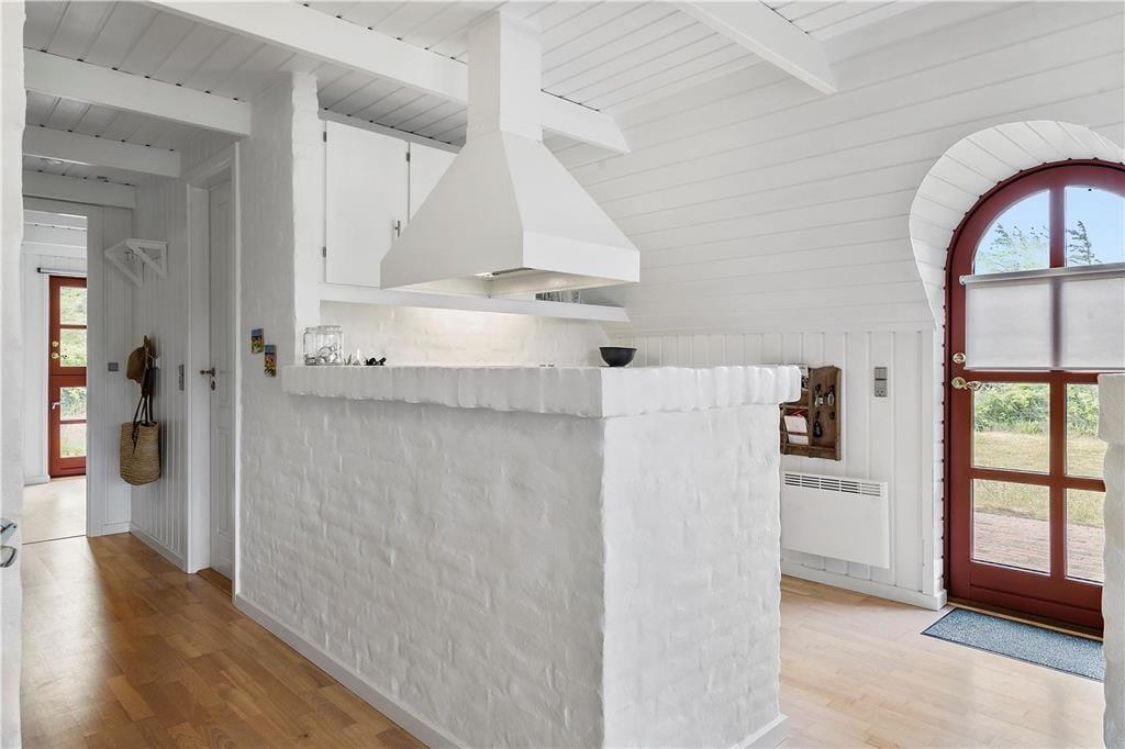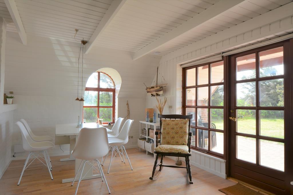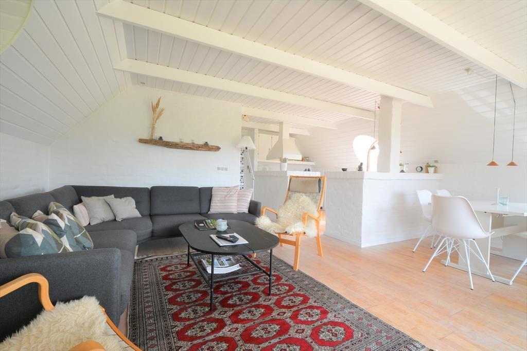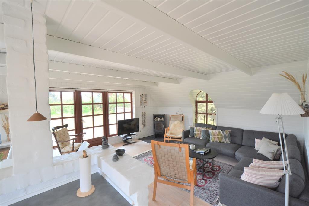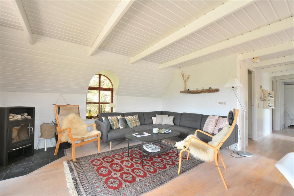 Træd ind i et feriehus med en rigtig sommerhusstemning, her er lyst og utroligt stilrent indrettet. Sæt jer foran brændeovnen med en god bog eller strikketøjet, imens I nyder den gode udsigt ud gennem de store vinduer. Det mindre køkken ligger op til mange hyggelige stunder imens der laves mad og andre hygger med et spil kort omkring spisebordet. Lad havedøren stå åbent og nyd den dejlige friske luft der strømmer ind sammen med den herlige duft af sommer og blomster.