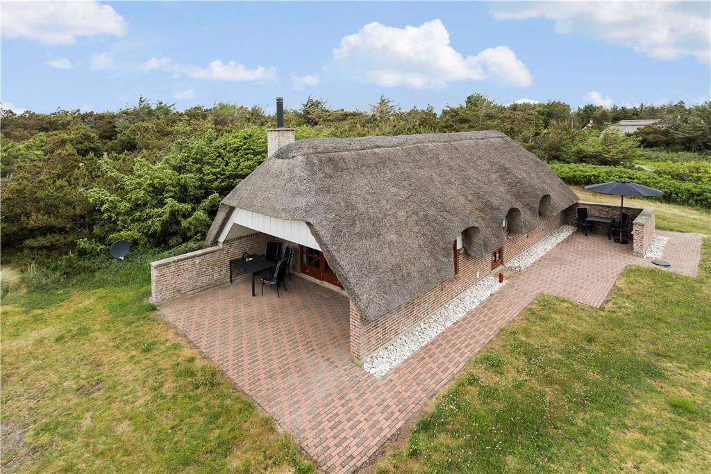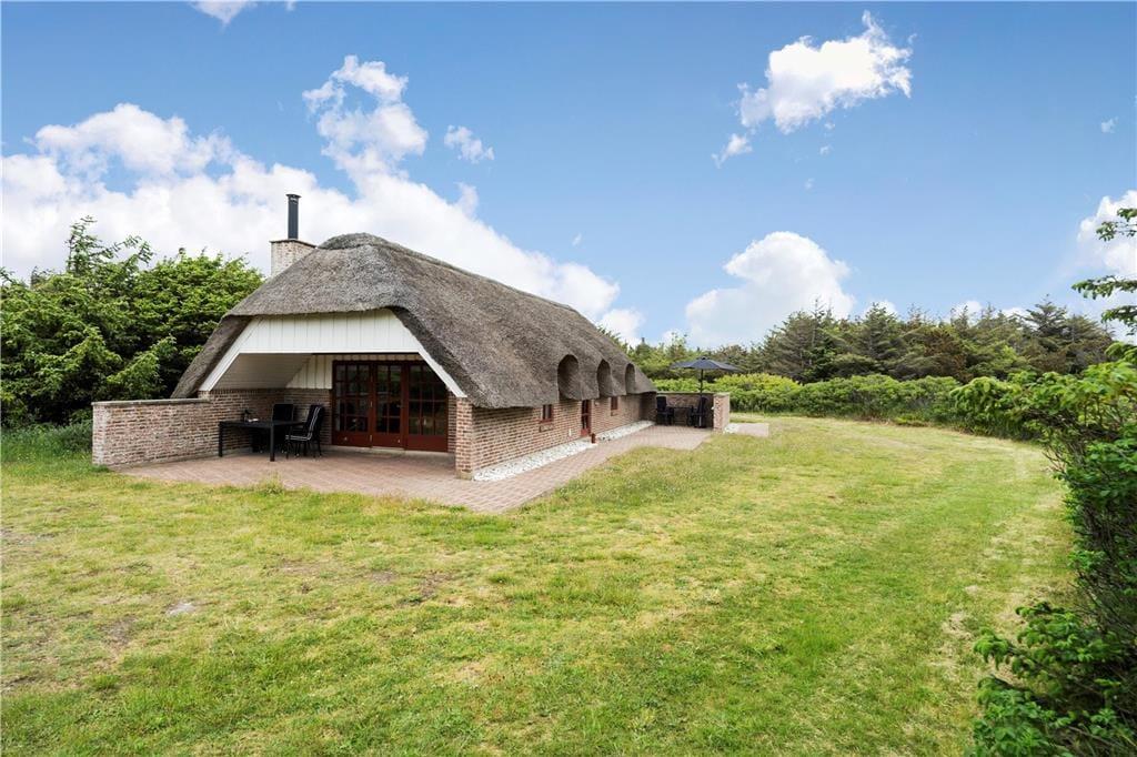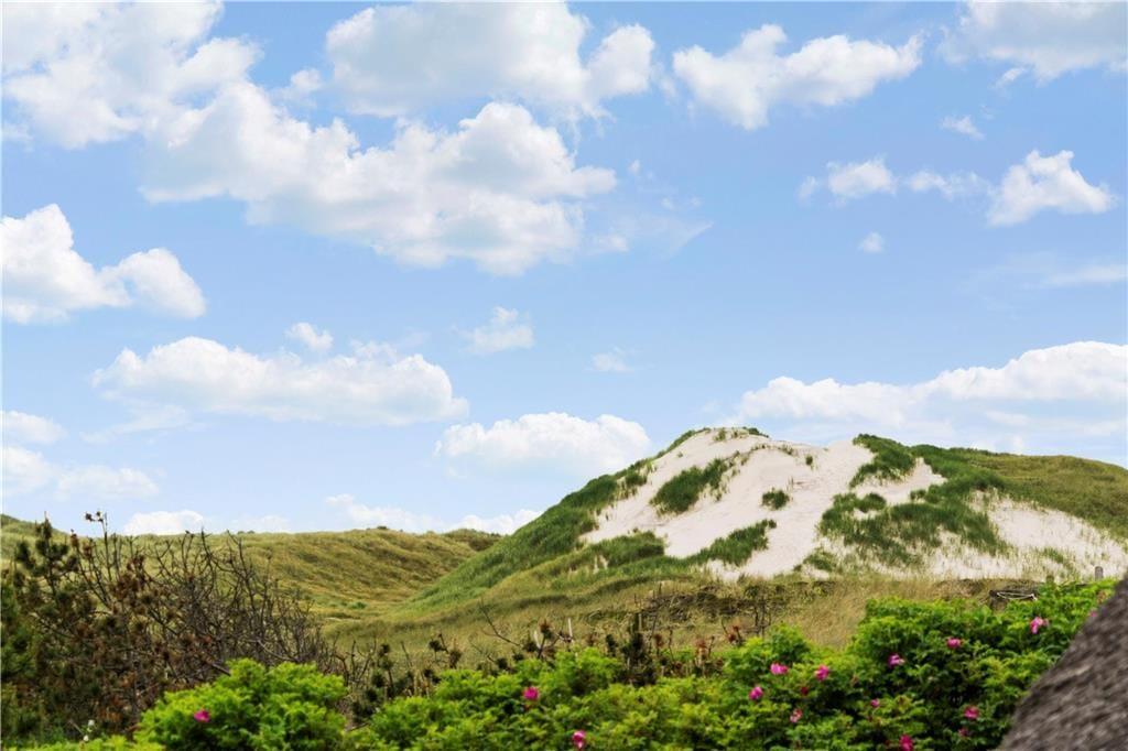 Feriehuset ligger skønt på en herlig naturgrund med en smuk udsigt udover klitterne og i det fjerne kan I hører havets brusende lyd der blander sig med fuglenes kvider. Sæt jer på den vestvendte terrasse og nyd solens stråler imens bøfferne steger på grillen og et dejligt glas vin bliver hældt op, når maden er spist og der er et glas vin tilbage så sæt jer godt til rette og se solen gå ned bag klitterne mod vest, så bliver det ikke meget bedre.