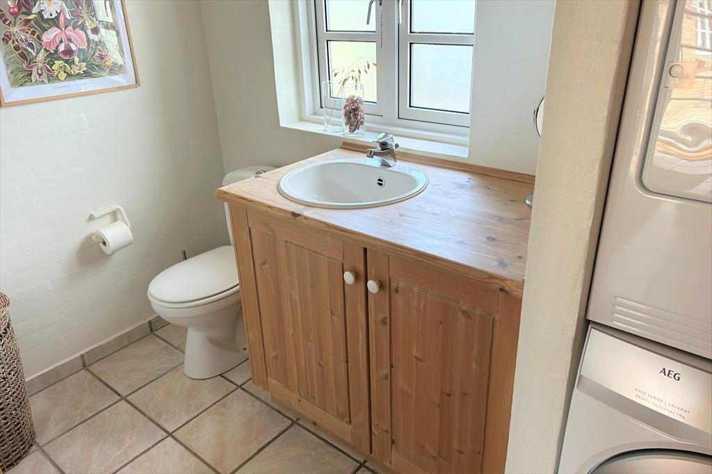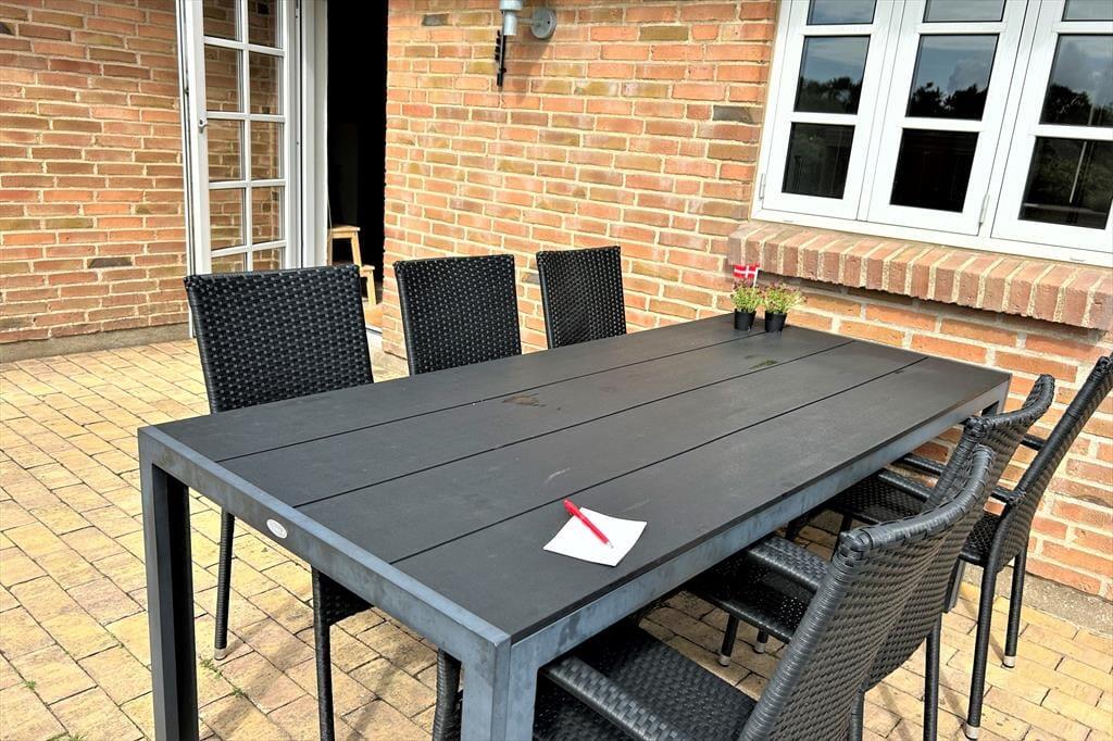 I finder huset på en stor velplejet grund hvor det er muligt for jer at nyde solens stråler i mange timer. Grunden er perfekt til boldspil og leg for hele familien. Når I gerne vil slappe helt af så hæng gyngekøjerne op på hængekøjestolperne hvor der er plads til tre køjer, så kan I nyde solens stråler og blidt blive vugget i søvn imens fuglene synger og en blid brise kommer forbi. Tag en let sommerlig frokost med ud på den skønne sydvendte terrasse og nyd solens varme stråler imens I nyder maden under åben himmel.