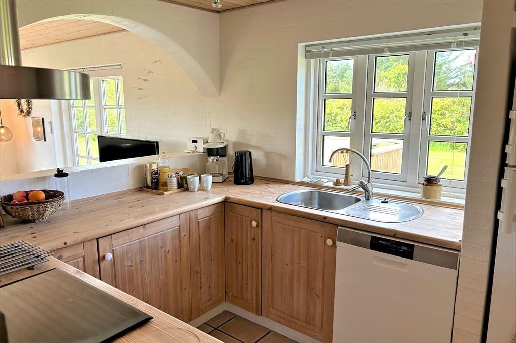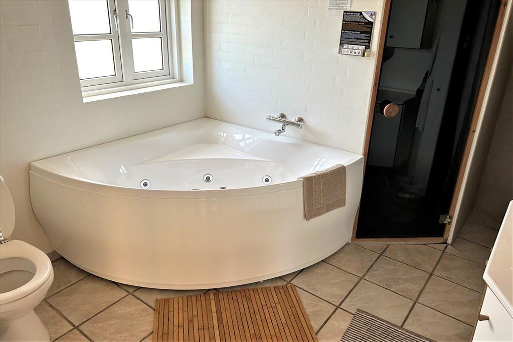 I dette feriehus bliver I mødt af et fantastisk lysindfald der giver huset en hyggelig og rumlig atmosfære. Lav mad i det dejlige og veludstyrede køkken som ligger i åben forbindelse med opholdsstuen og spiseafdelingen, hvilket gør det muligt for jer at nyde hinandens selskab på trods af at I laver forskellige ting. Når I trænger til en lille wellness oplevelse så tænd op i saunaen og spabadet og nyd de dejlige varme bobler og mærk hvordan jeres skuldre sænkes og roen spreder sig i hele kroppen.