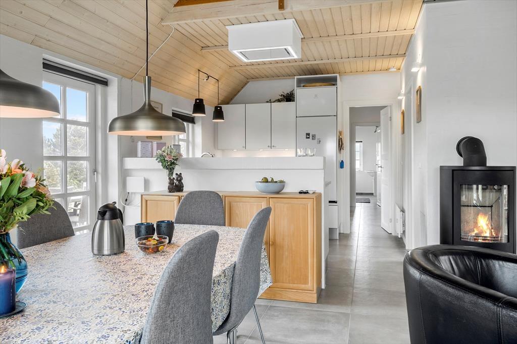 Træd ind i dette skønne feriehus hvor der er højt til loftet og flotte frithængende bjælker der skaber en dejlig rummelighed. Lav mad i det dejlige køkken og nyd at der er åben forbindelse til både opholdsstue og spiseafdeling, på den måde har I mulighed for at være sammen på trods af at I laver forskellige ting. Når I trænger til en lille wellness oplevelse så tænd op for det dejlige spabad og sauna og nyd den dejlige varme der får musklerne til at slappe af. Her får I et fint lille sommerhus der vil bringe familien tæt sammen.