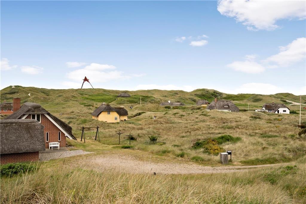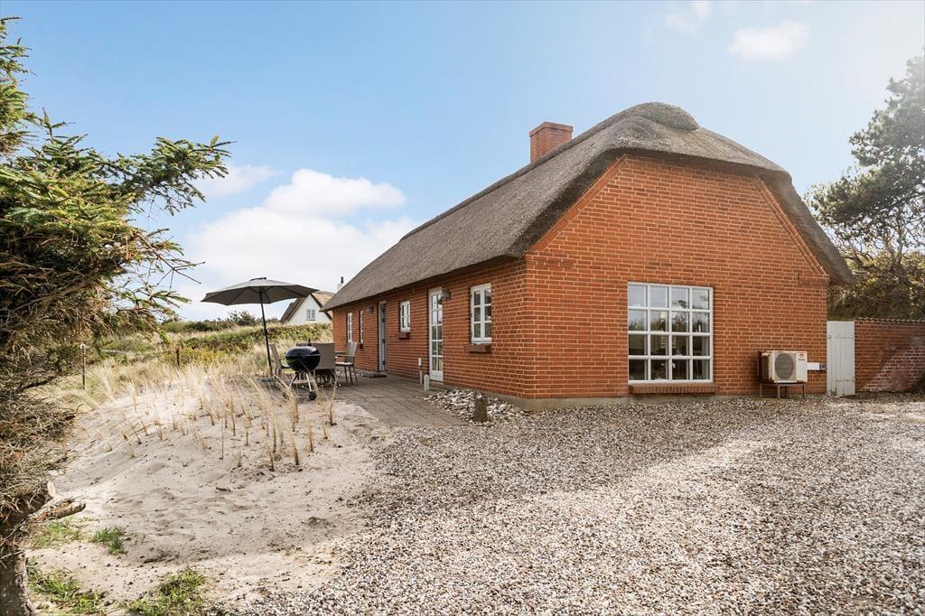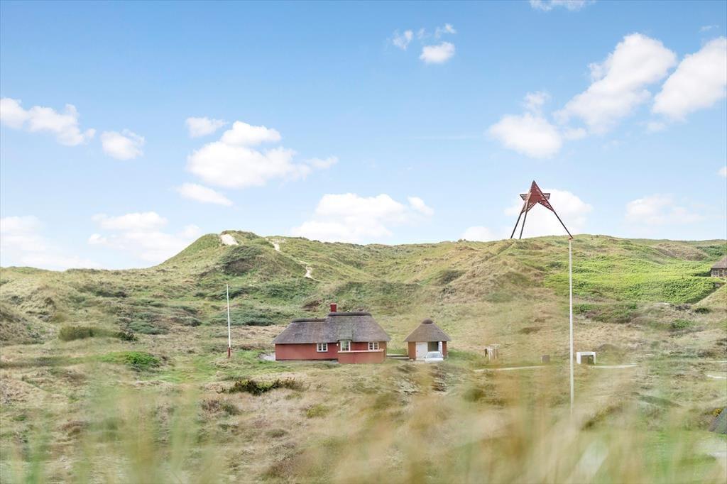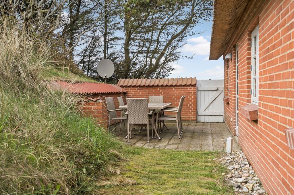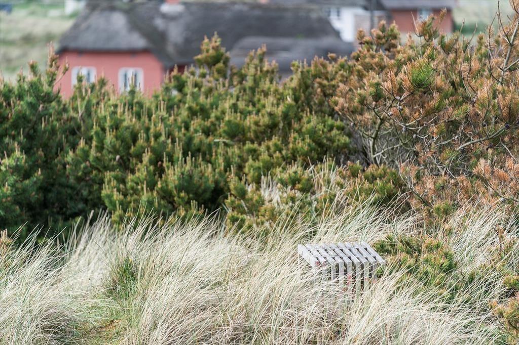Den store grund er præget af de vestjyske klitter som er med til at give haven flere små kroge på ujævn grund, der gør haven både skøn og anderledes. På grunden finder I også både gyngestativ og sandkasse til familiens yngste. Fra den ene af terrassen er der fantastisk udsigt ud over hele haven, så nyd en stille stund og nyd udsigten. Når aftenen nærmer sig så tænd op for grillen og nyd den lækre duft af mad der langsomt spreder sig i luften.
