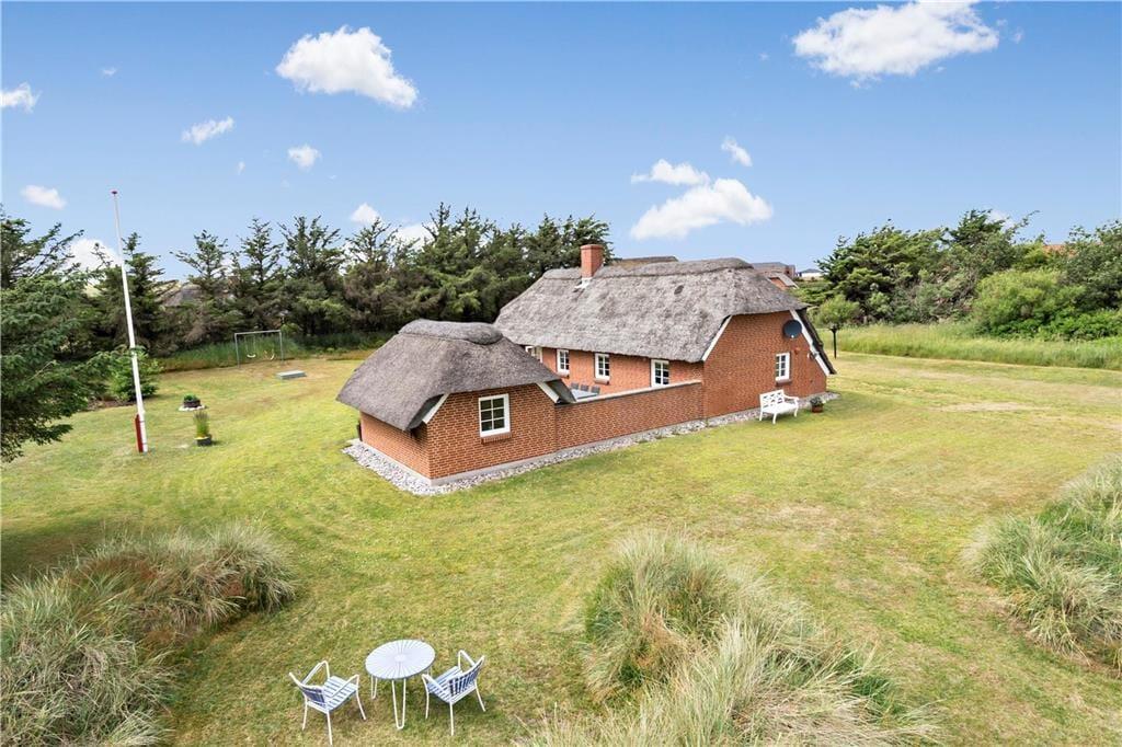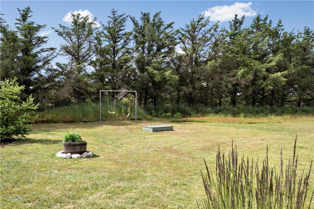 Feriehuset ligger på en stor velplejet grund som ligger op til både boldspil og leg for hele familien, og til familiens yngste finder I også både sandkasse og gyngestativ hvor der kan bruges timevis på sandslotsbyggerier og meget mere. Når aftenen nærmer sig og aftensmaden skal laves kan I smide bøfferne på grillen og nyde den lækre duft af mad imens I dækker bord, og bliver I siddende længe nok så kan I opleve den smukke solnedgang i det fjerne, der skaber et fantastisk skær af rødorangenuancer.