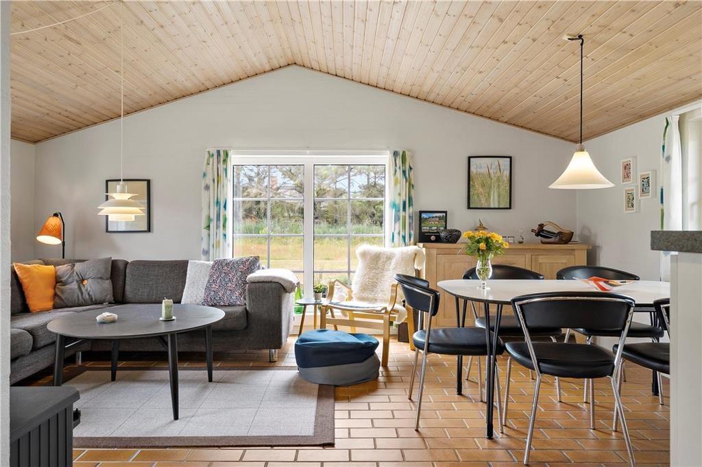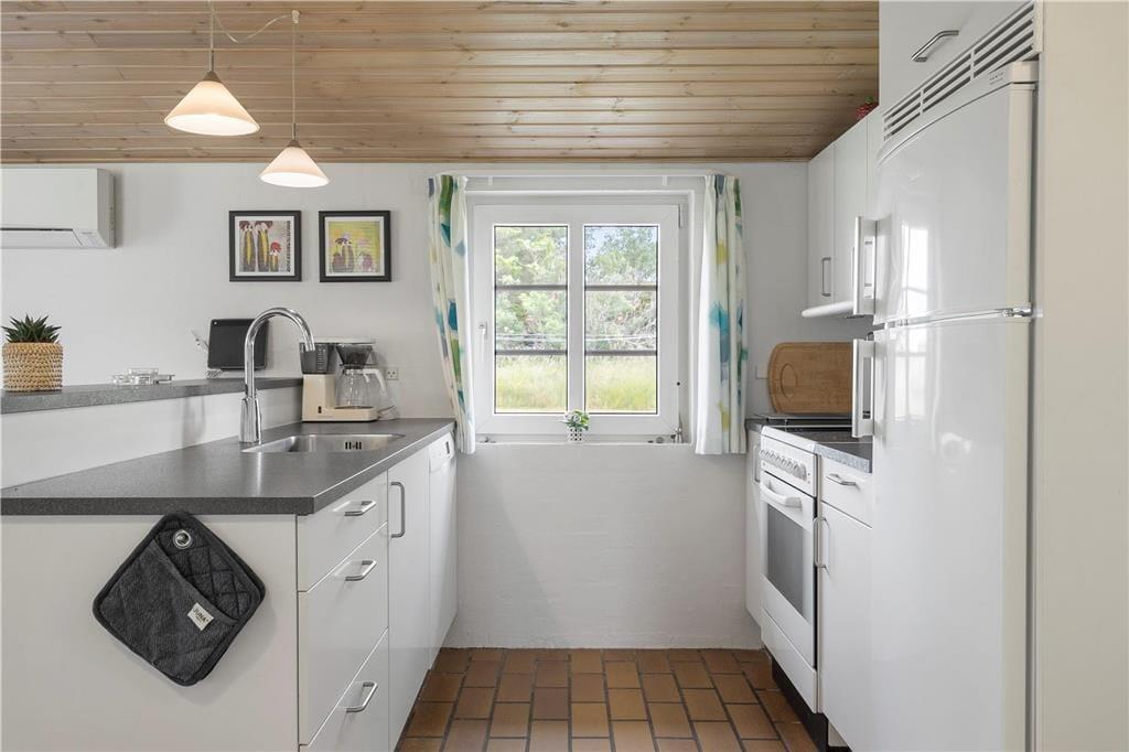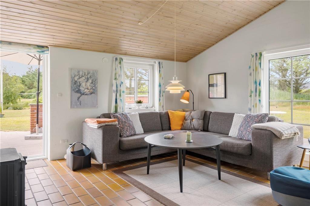 Flotte klinkegulve pryder huset og giver det en dejlig rumlighed. Det dejlige og godt udstyrede køkken ligger i åben forbindelse med både opholdsstue og spiseafdeling som gør det muligt for jer at nyde hinandens selskab på trods af at I laver forskellige ting. Trænger I til en afslappende stund så tænd op i det dejlige spabad og nyd de varme bobler der virker afslappende inden I sætter jer ind i den dejlige sauna. På de kølige sommeraftner kan I med fordel tænde op for den dejlige brændeovn, og nyde den dejlige varme og den hyggelige knitrende lyd der spreder sig.