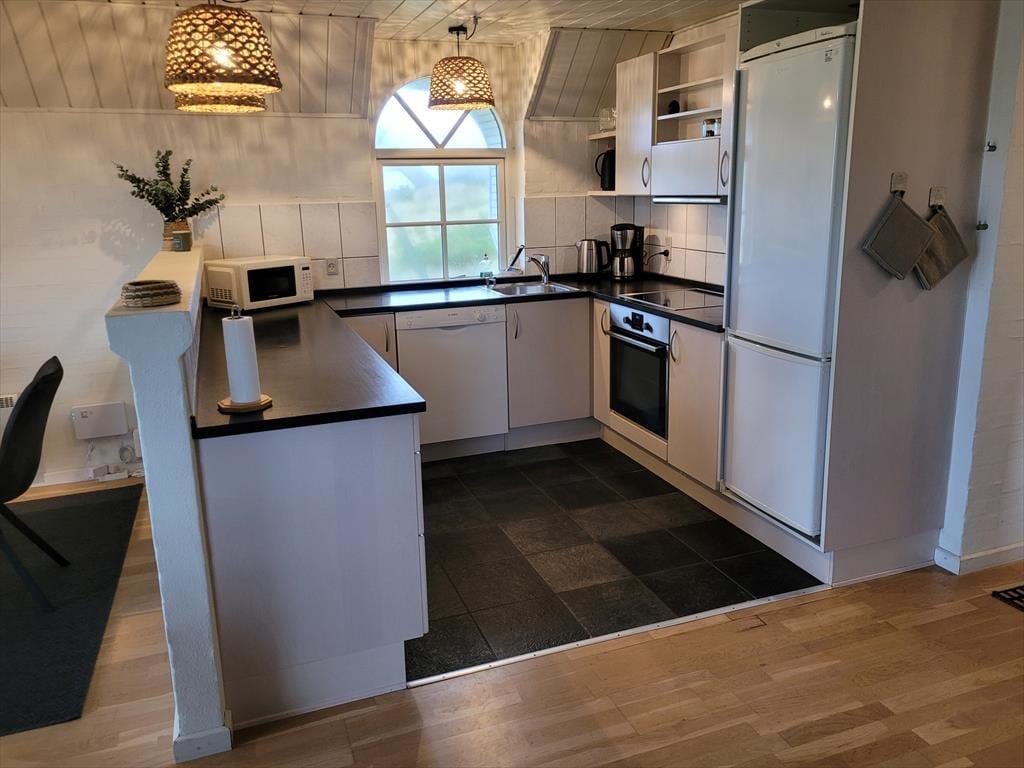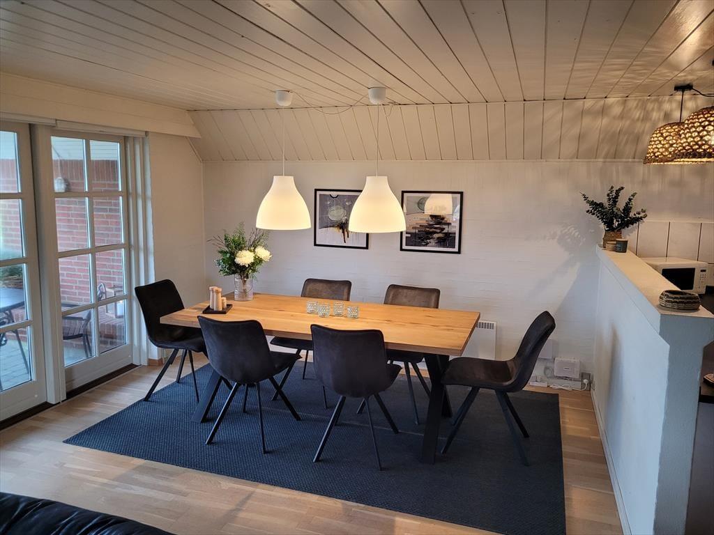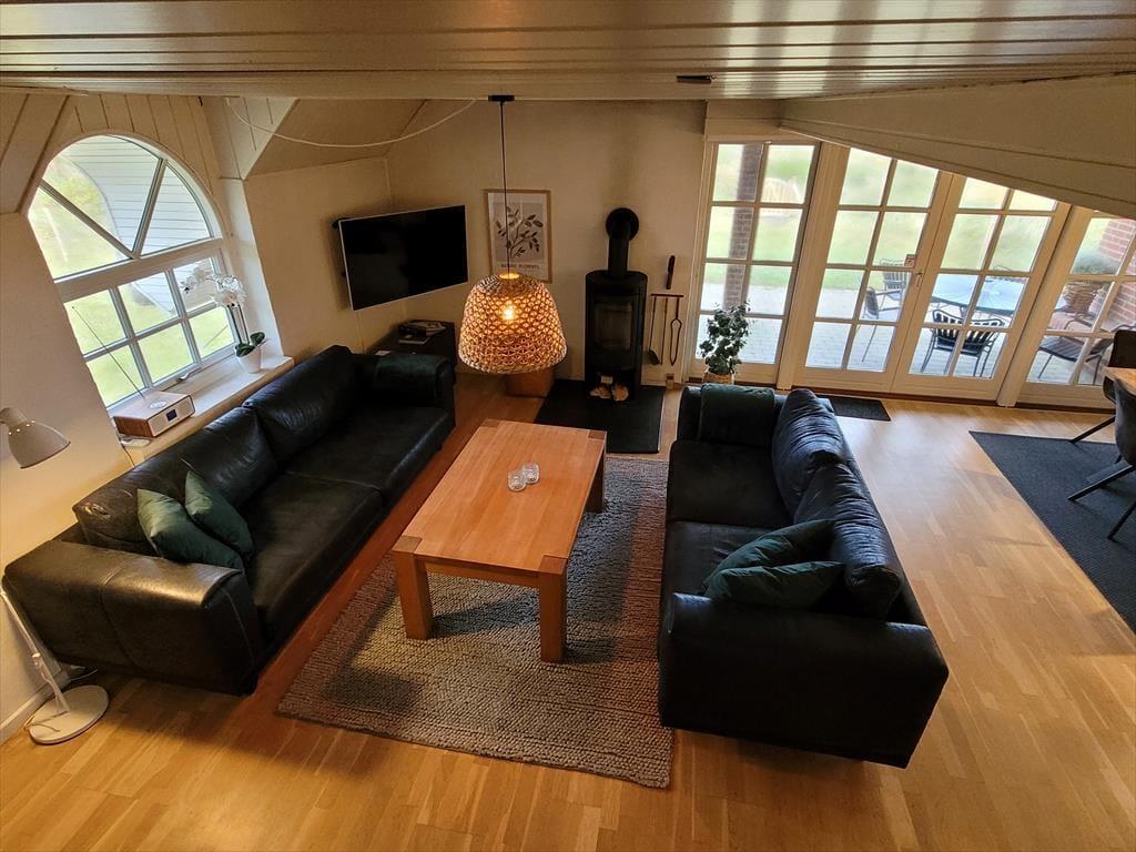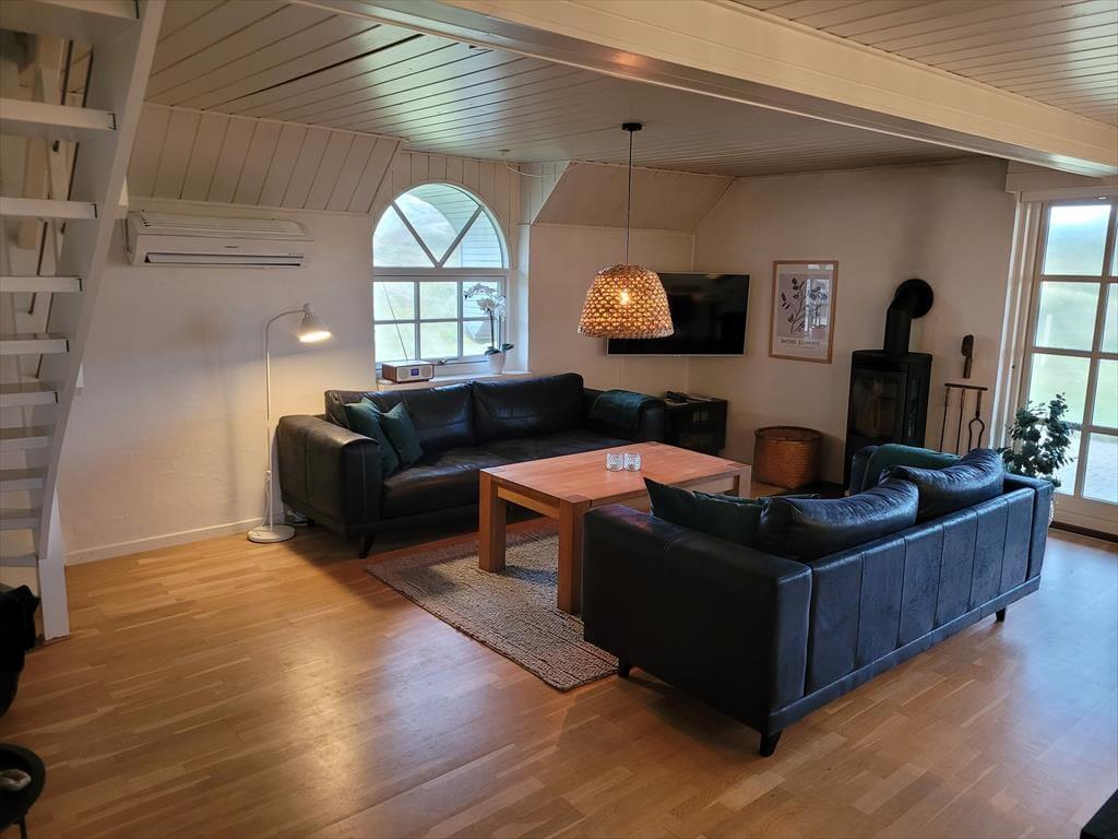 Sommerhus i Vedersø Klit Strand, Vestjylland, med plads til 6 voksne og 3 husdyr. Der er en hyggelig indretning med bl.a. brændeovn, og du finder desuden vaskemaskine, opvaskemaskine og tørretumbler i boligen.