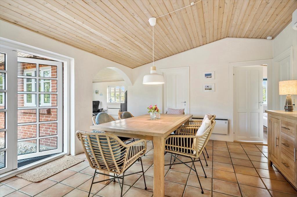 Her kan I nyde ferien i et dejligt lyst, velindrettet og fuldt udstyrede hus med alle bekvemmeligheder. Tag en afslappende stund foran brændeovnen i den lyse opholdsstue, eller nyd et lækkert måltid i spisestuen omkring det store spisebord imens I taler om hvad morgendagen skal bringe. Da køkkenet ligger i åben forbindelse med spisestuen har I rig mulighed for at nyde hinandens selskab på trods af at I laver forskellige ting. Når I trænger til total hygge og afslapning kan I med fordel tænde op for den dejlige spa og varme sauna, mærk hvordan skulderne sænkes og roen indfinder sig.