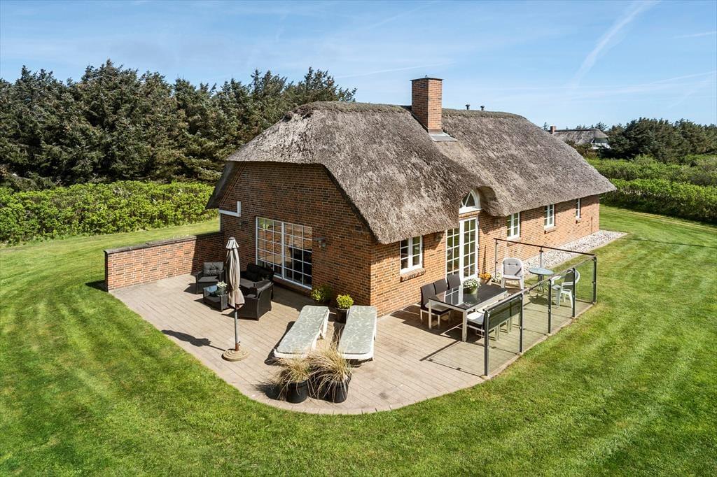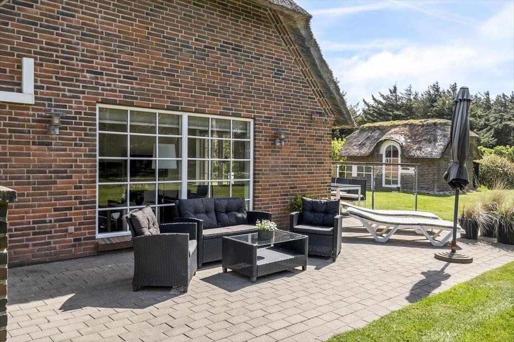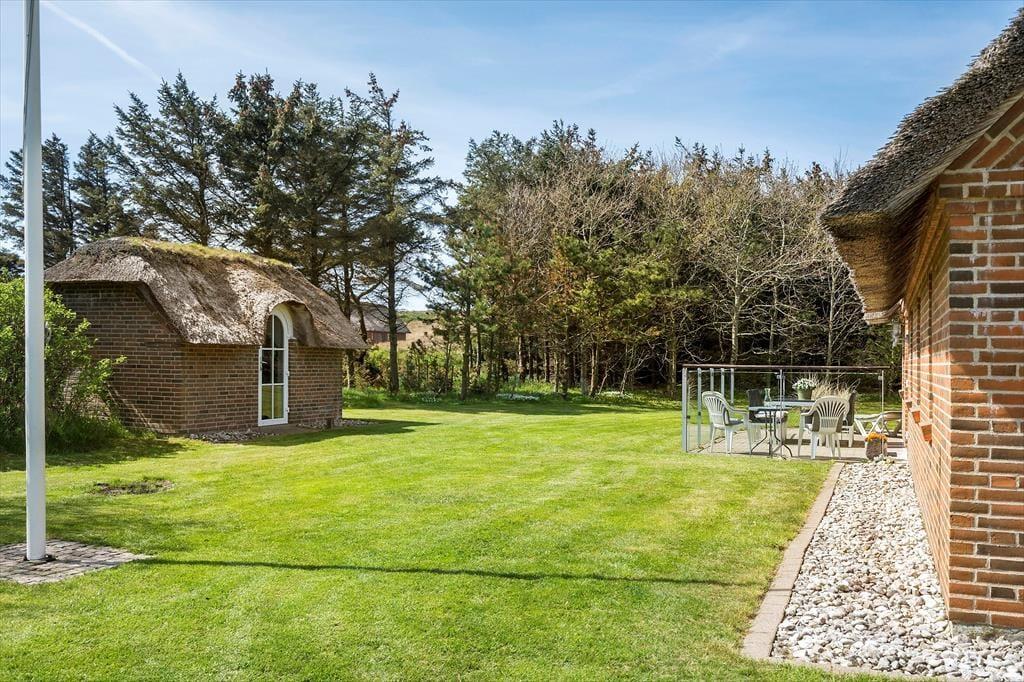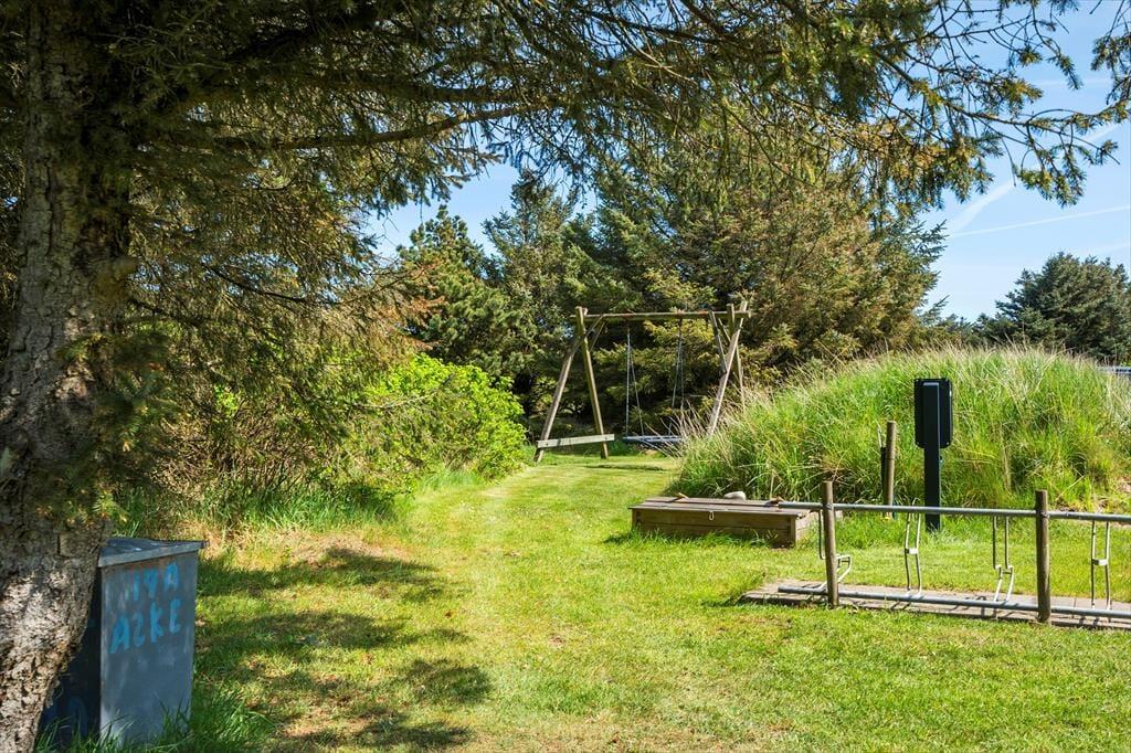Feriehuset ligger på en stor og velplejet grund i Vedersø Klit, her har I godt med plads at boltre jer på, så tag fodbolden med udenfor og få sved på panden eller giv ungerne en gyngetur på de opsatte gynger der er tilgængelige på grunden. Når vejret tillader det så tag aftensmaden med udenfor på den sydvendte terrasse og lav den på grillen og kom I rigtig feriestemning, imens maden steger på grillen, kan I nyde solens varme stråler der skinner ned på jer.