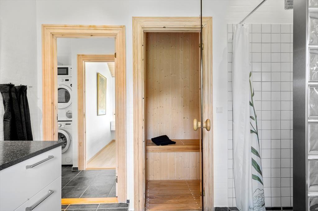 Trænger I til en førsteklasses ferie for hele familien? Så er dette det helt rigtige feriehus for med moderne detaljer, et arkitekttegnet og stilrent look, har I masser af tid til at koncentrere jer om hinanden og komme helt ned i gear efter hverdagens trummerum. Stuen er præget af store flotte malerier der giver huset en fantastisk sjæl, og eftersom stuen er I åben forbindelse med både spise afdeling og køkken har I rig mulighed for at fordybe jer i helt forskellige ting, men stadigvæk være i stand til at holde samtalen kørende. Det dejlige feriehus ligger også op til selvforkælelse for med både spabad og sauna kan det vist ikke blive mere afslappende og nærende for sjælen.