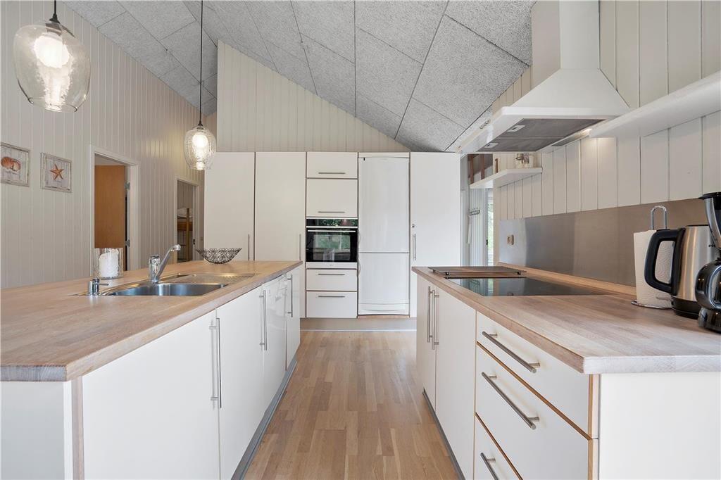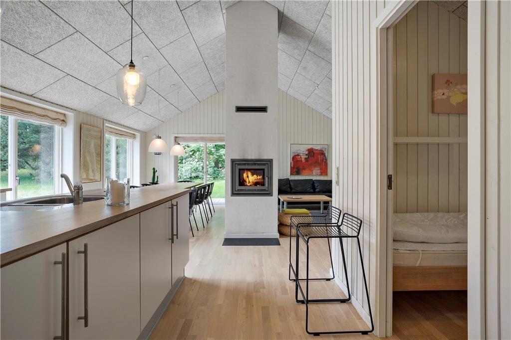 Et idyllisk og smukt feriehus som man kun kan forelske sig i, for med et fantastisk stort køkkenalrum hvor der er plads til hele familien er der rig mulighed for at I kan nyde tiden med jeres kære. Det store godt udstyrede køkken ligger op til mange timers madlavning for hele familien, så tag forklædet på og find kogebøgerne frem og nyd en hyggelig stund med familien. Dette skønne feriehus giver jer alle forudsætninger for at komme helt ned i gear, så tænd op i den dejlige sauna og nyd varmen der kan får enhver til at slappe af.