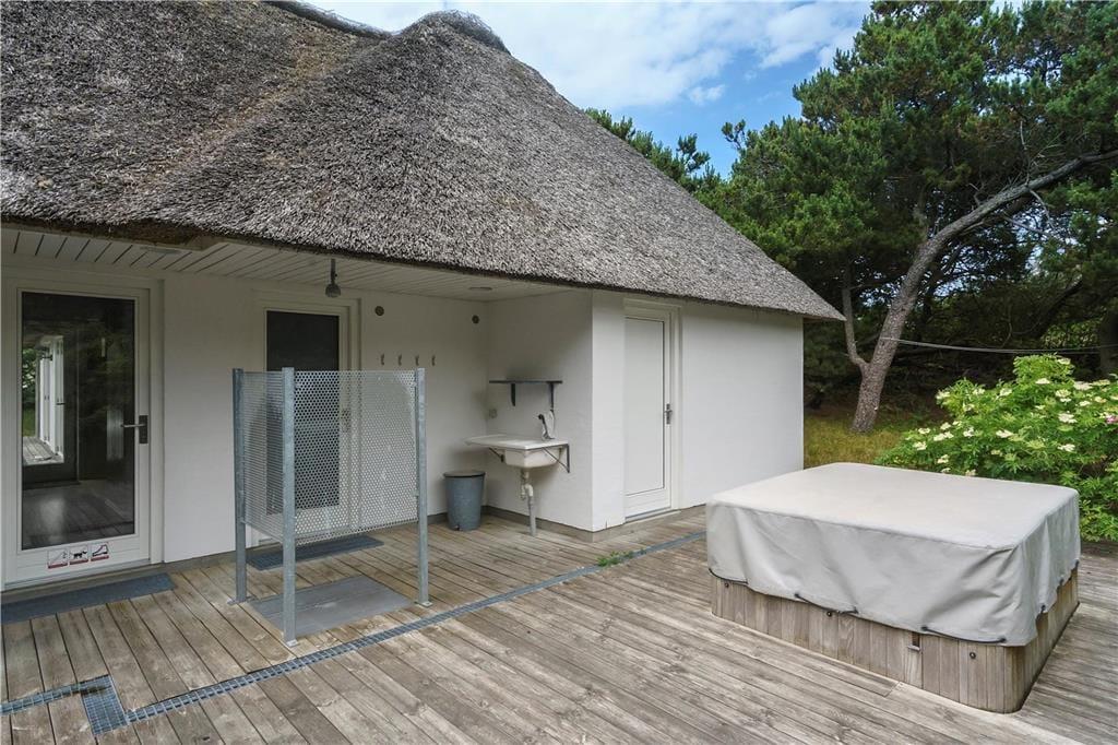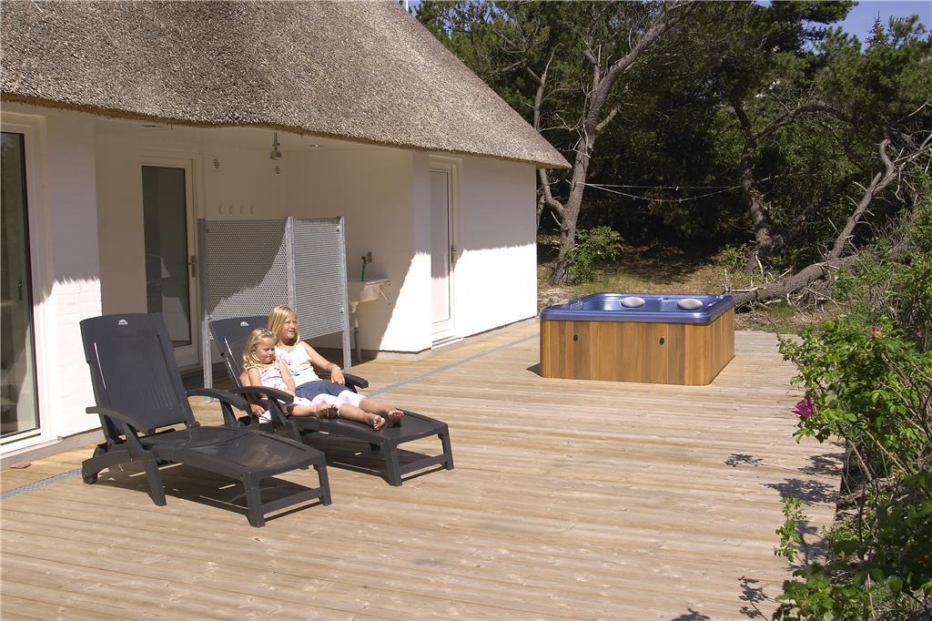 En stor smuk grund omkranser dette idylliske feriehus, og da grunden er omkranset af træer og buske har I fantastiske muligheder for at nyde jeres ferie i ro og mag, uden forstyrrelser fra naboerne. Den skønne grund byder jer også på mange forskellige hyggekroge der indbyder til lange dybe samtaler, men også grin og gode jokes. Sidst men ikke mindst er grunden fantastisk til både boldspil og leg for hele familien. Når solen begynder at gå ned og I har nydt et lækkert måltid fra grillen så tænd op for den udendørs spa, inden I hopper i vandet så tag en kort skyller under den udendørs bruser inden I sætter jer op og nyder tilværelsen i den dejlige spa.