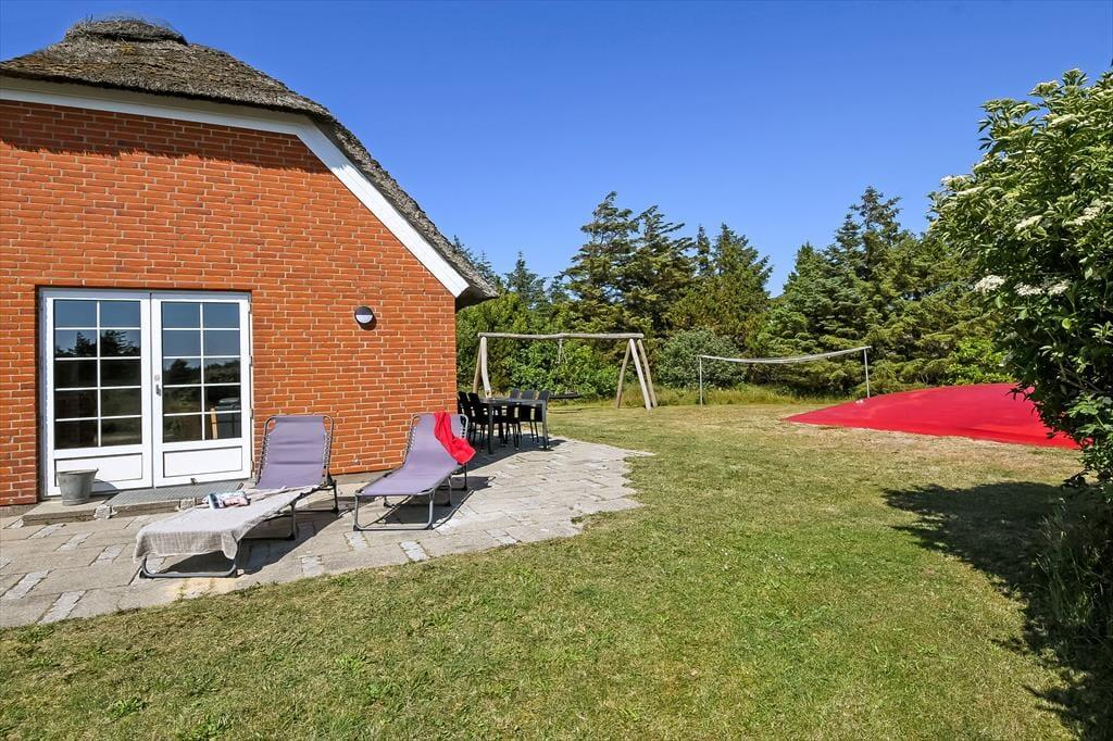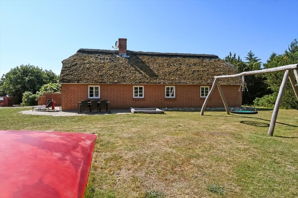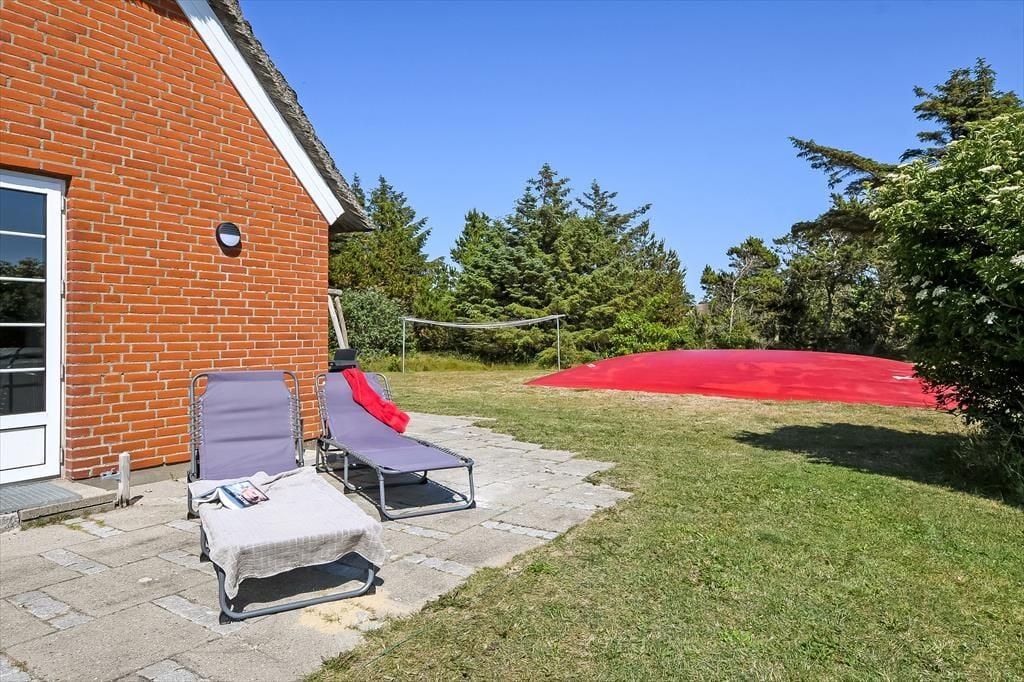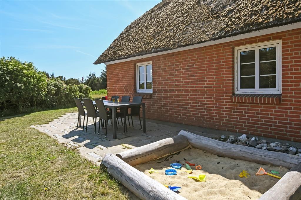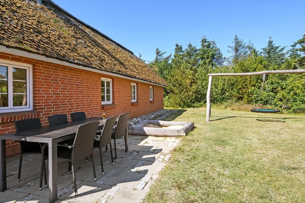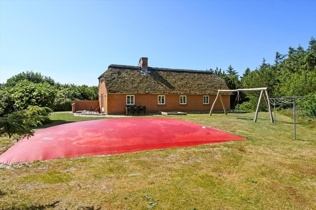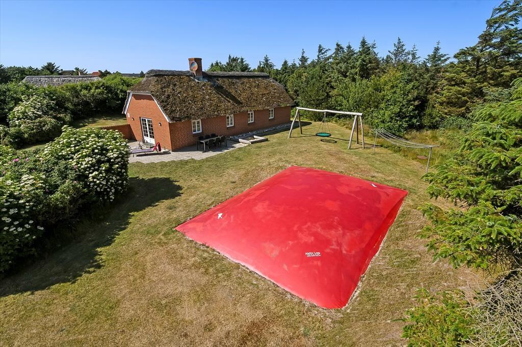 Den store, lukkede naturgrund giver jer masser af plads og privatliv – her kan både børn og voksne brede sig og nyde ferielivet i fulde drag. For de mindste er der både en stor hoppepude og en sandkasse, og for de lidt større er der god plads til boldspil og leg. Terrassen indbyder til lange, afslappede feriedage med solskin, grill og god tid – her er det let at finde sig et læhjørne og bare nyde stilheden. Huset ligger kun en kort gå- eller cykeltur fra det brusende Vesterhav, hvor I kan bade, gå ture langs stranden og mærke den særlige vestjyske ro.
