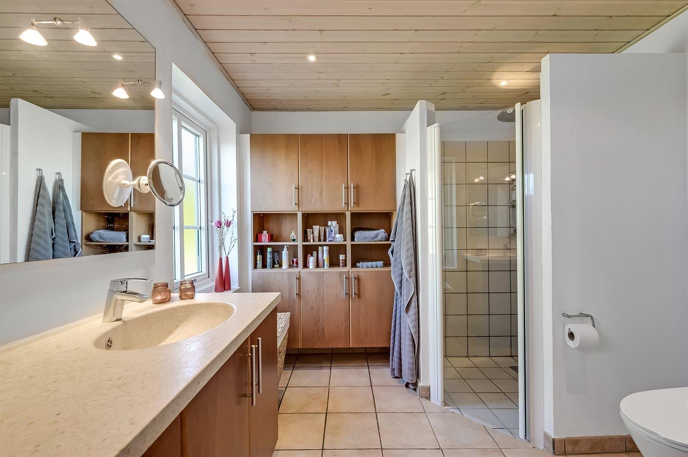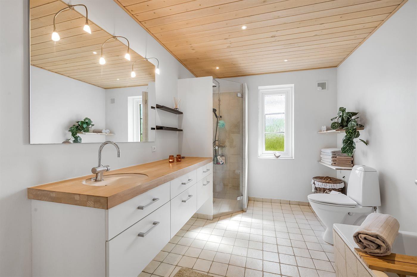 Der er 2 badeværelser med bruseniche og 2 toiletter. Badekar.
