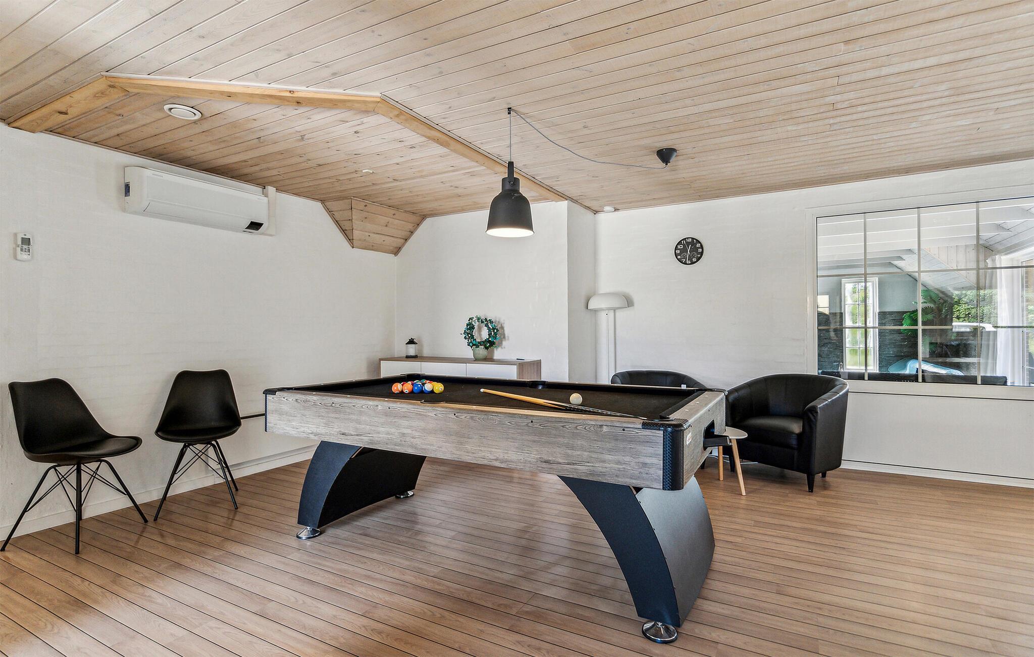 Velkommen til dette moderne og lyse feriehus. Her kan I tilbringe en dejlig tid med familie eller venner. Fantastiske ekstrafaciliteter som swimmingpool, jacuzzi og poolbord giver jer mulighed for at holde en rigtig luksusferie her. Børn og firbenede familiemedlemmer kan boltre sig i haven og slå sig løs på legeredskaberne. Imens kan de voksne slappe af på terrassen med en kølig drink og nyde solens stråler. I kan også bruge husets sauna til at slappe af og komme helt ned i gear efter begivenhedsrige dage.