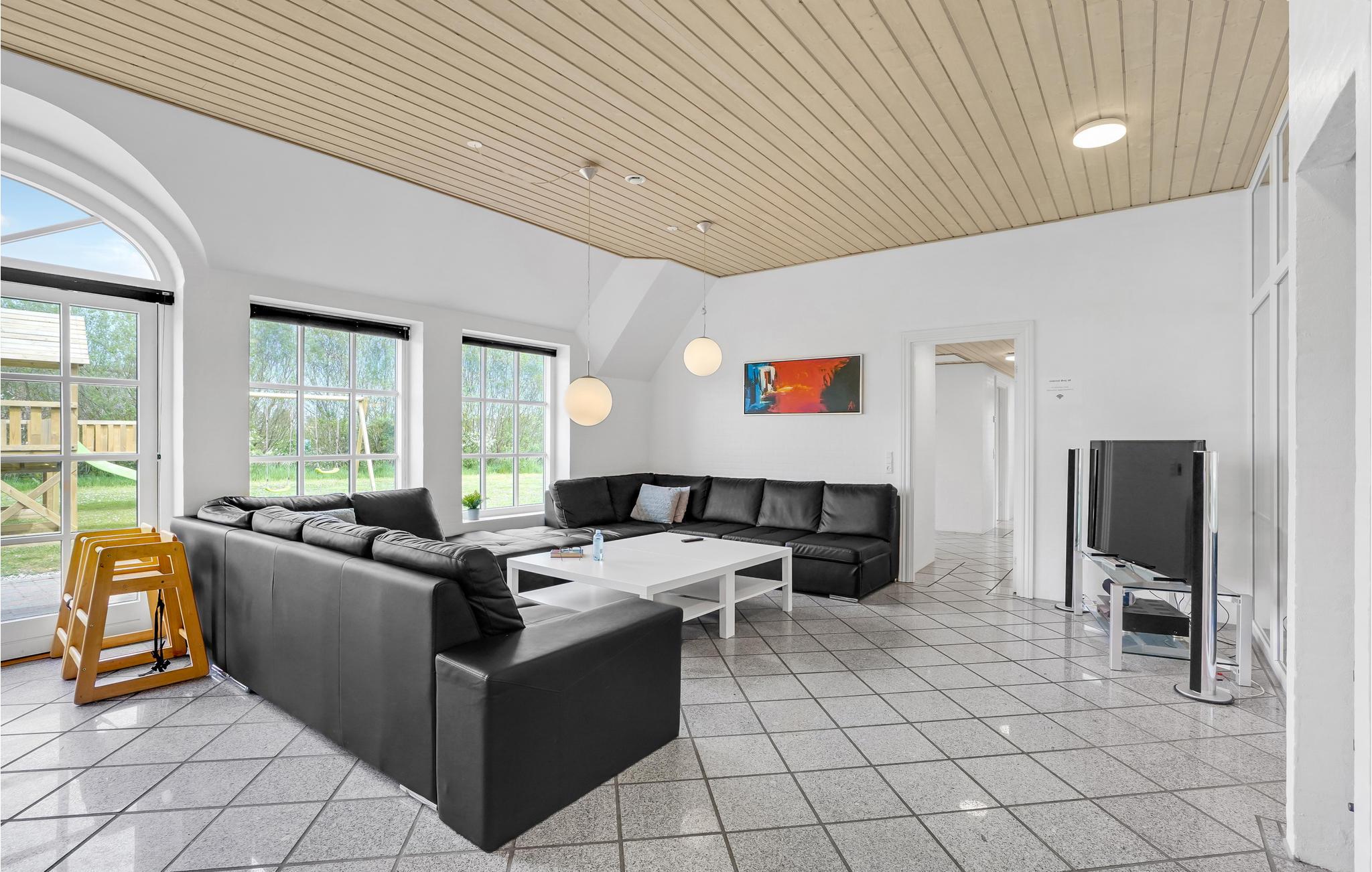 Glæd jer til en dejlig ferie i dette moderne stråtagshus, som er typisk for området. I bydes velkommen her med masser af lys og udsøgte materialer. Takket være den store åbne stue, er der plads nok til at brede jer ud og gøre dette hus til et skønt midlertidigt hjem. Udover den dejlige, lyse stue med udsigt ud til haven kan I se frem til den indendørs pool og sauna samt den åbne terrasse med grill, hvor I kan slappe af og nyde jeres velfortjente pause fra hverdagen.