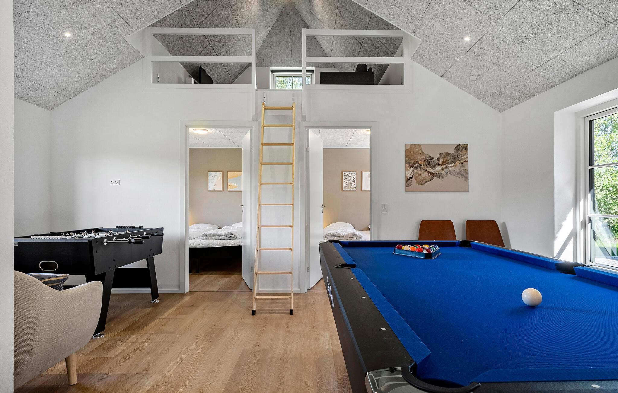 Huset har også meget at byde på, når det kommer til fritidsaktiviteter. Poolbord, bordfodbold, dartskive og en lille siddeplads gør aktivitetsrummet til et mødested for store og små. Beachvolley, fodbold, legeredskaber og et overdækket terrasseområde med grill venter jer på udeområdet. Derudover inviterer det overdækkede spabad på terrassen til at slappe af og er en fornøjelse i al slags vejr.