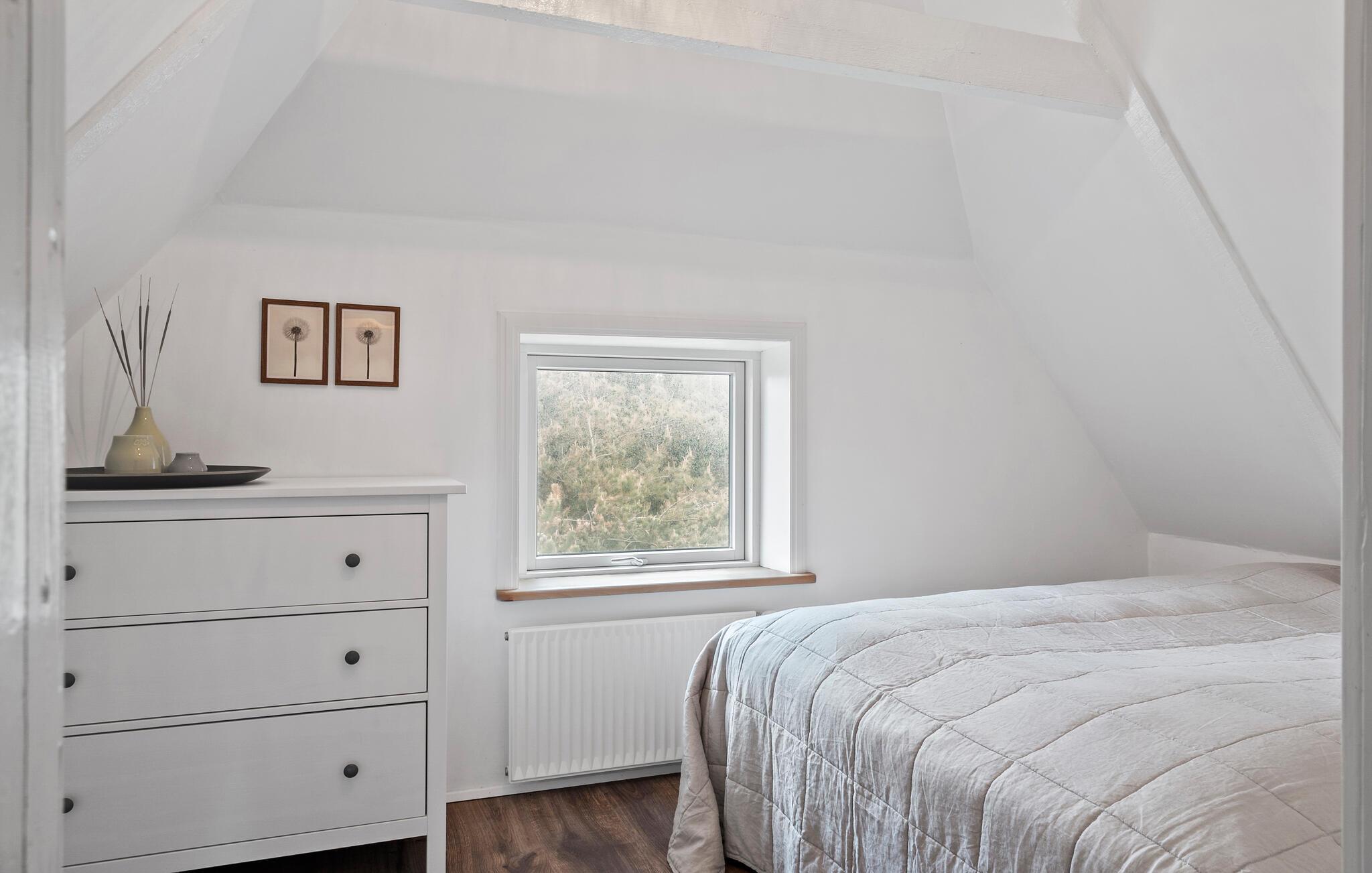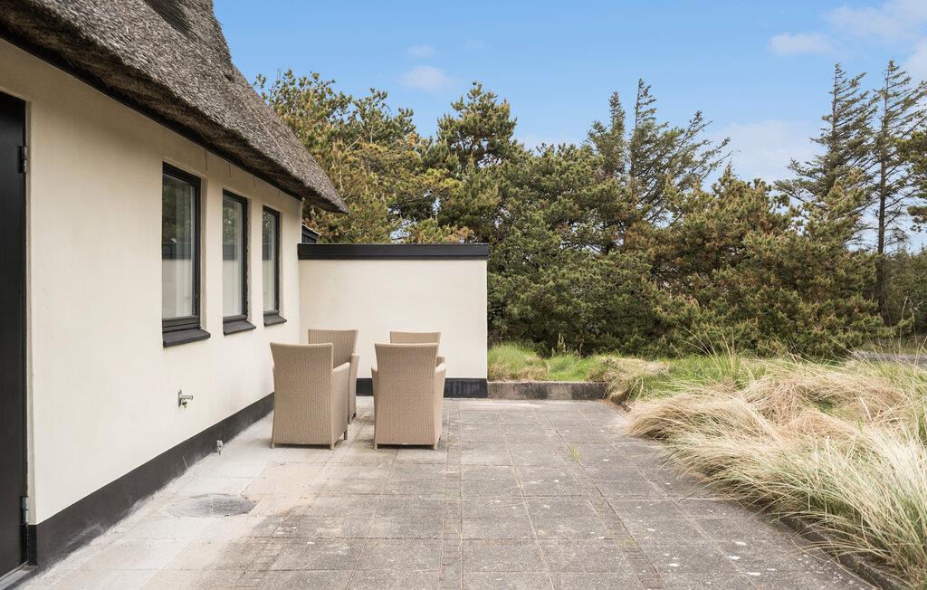 Tilbring afslappende dage i dette charmerende feriehus med stråtag, der smelter hyggelig sammen med de naturskønne omgivelser. Den beskyttede beliggenhed på en åben naturgrund sikrer ro, panoramaudsigt og en særlig atmosfære. Find jer godt til rette i den lyse opholdsstue. De mange vinduer bringer masser af lys ind og tilbyder udsigt over klitterne. Slap af i sofaen eller lænestolene og nyd den hjemlige atmosfære. Det åbne køkken er praktisk udstyret og giver mulighed for at tilberede jeres egne feriemåltider. Der er plads nok ved spisebordet til fælles måltider eller sjove spilleaftener.