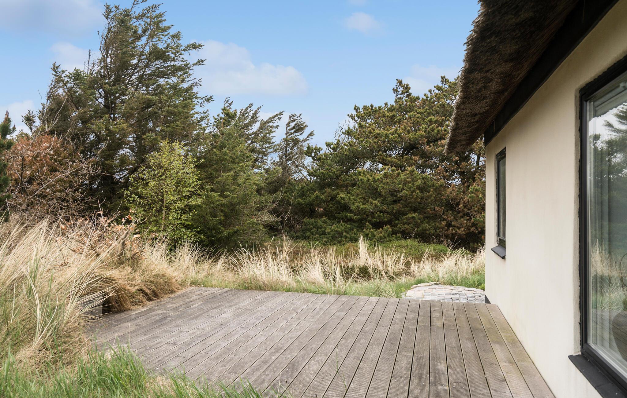 Nyd et charmerende stråtækt feriehus ved Vedersø Klit med panoramaudsigt og solrige terrasser i naturskønne omgivelser.
