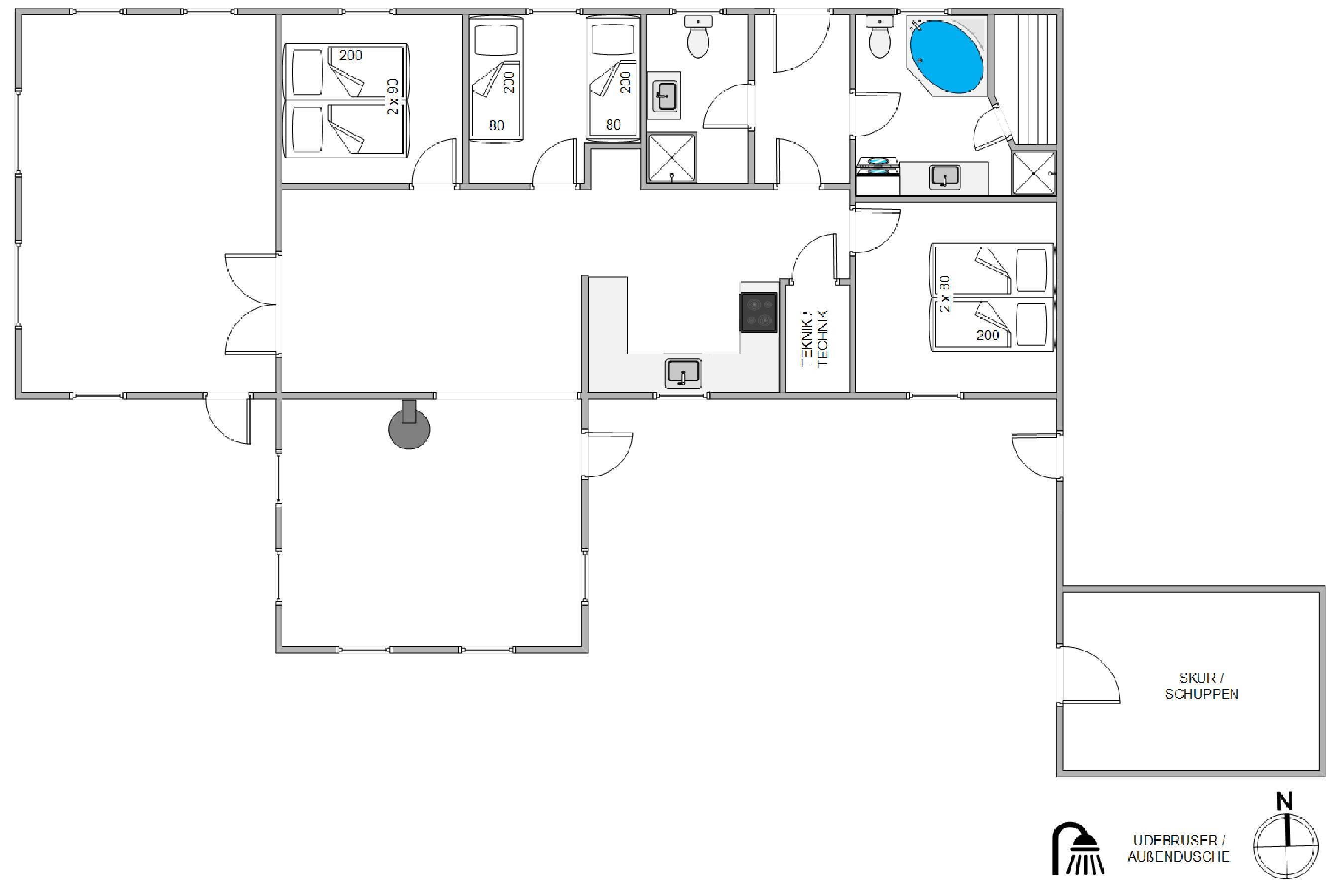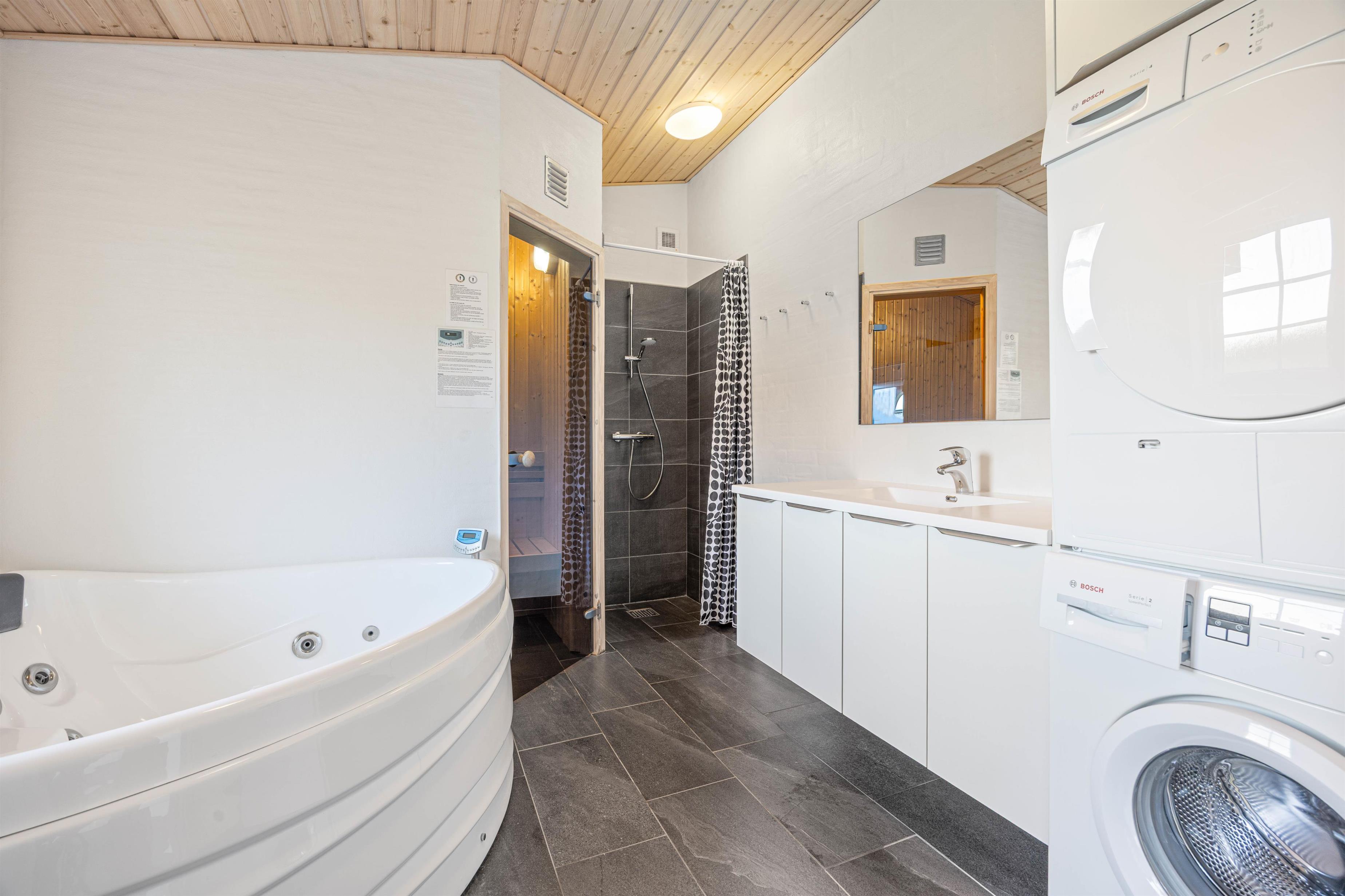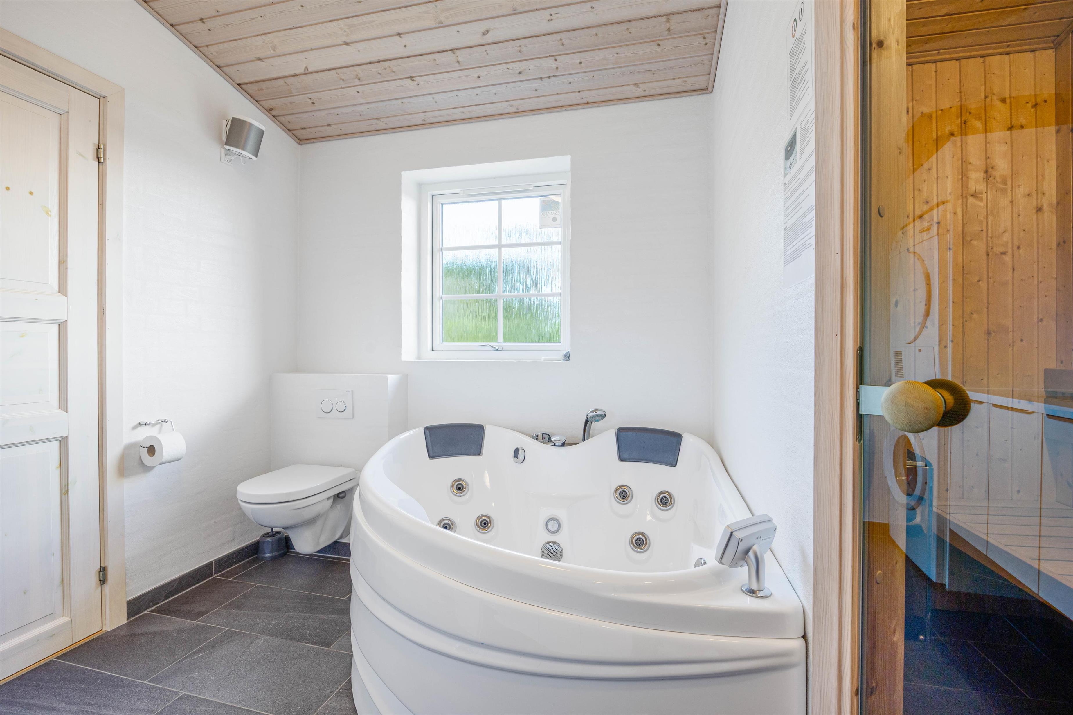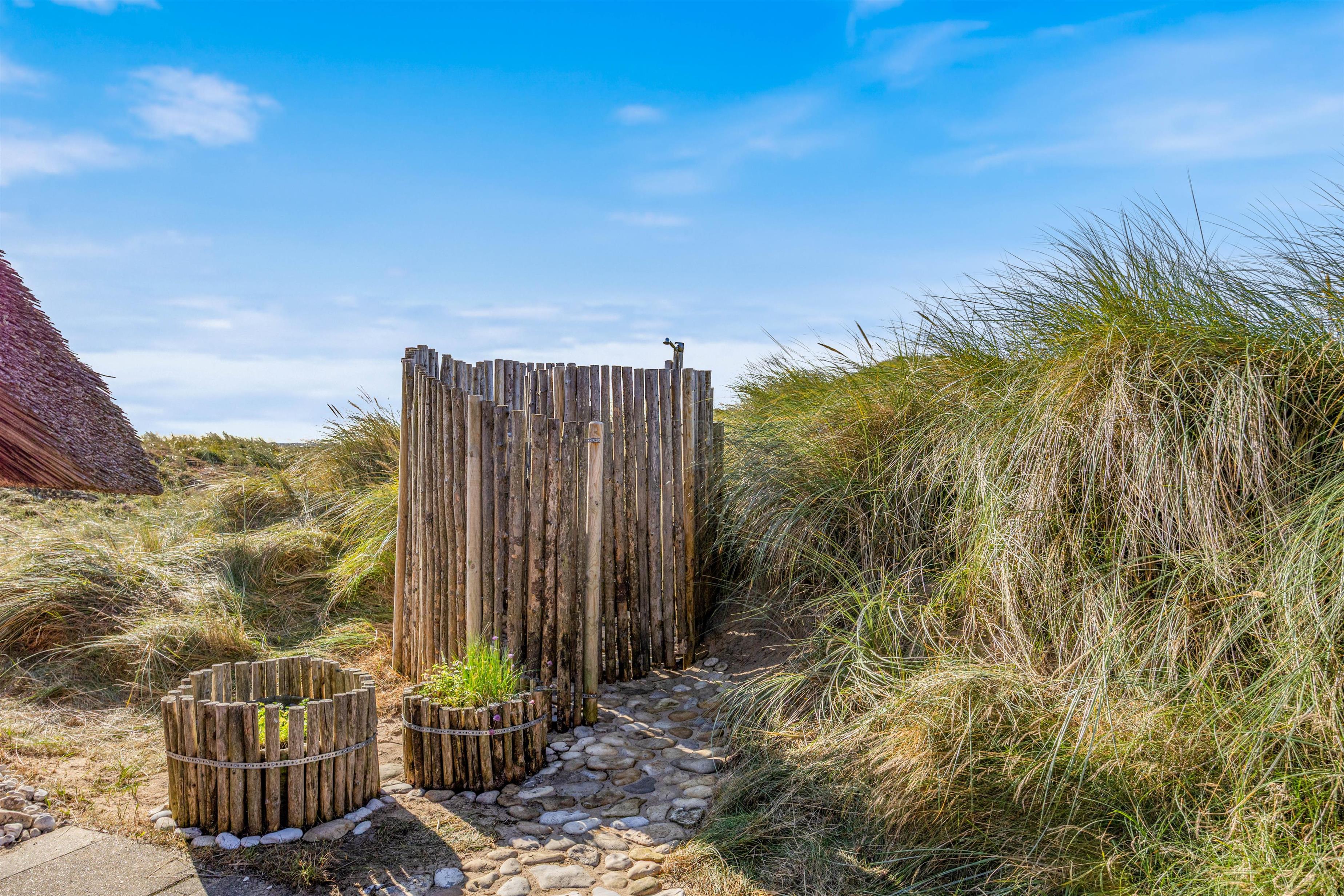 Du kan også tænde saunaen eller hoppe i spabadet og blive varmet godt igennem efter en kølig dukkert i Vesterhavet. Den udendørs bruser er desuden ideel til lige at skylle det værste saltvand og sand af kroppen efter strandturen. Den kan benyttes fra april frem til november.