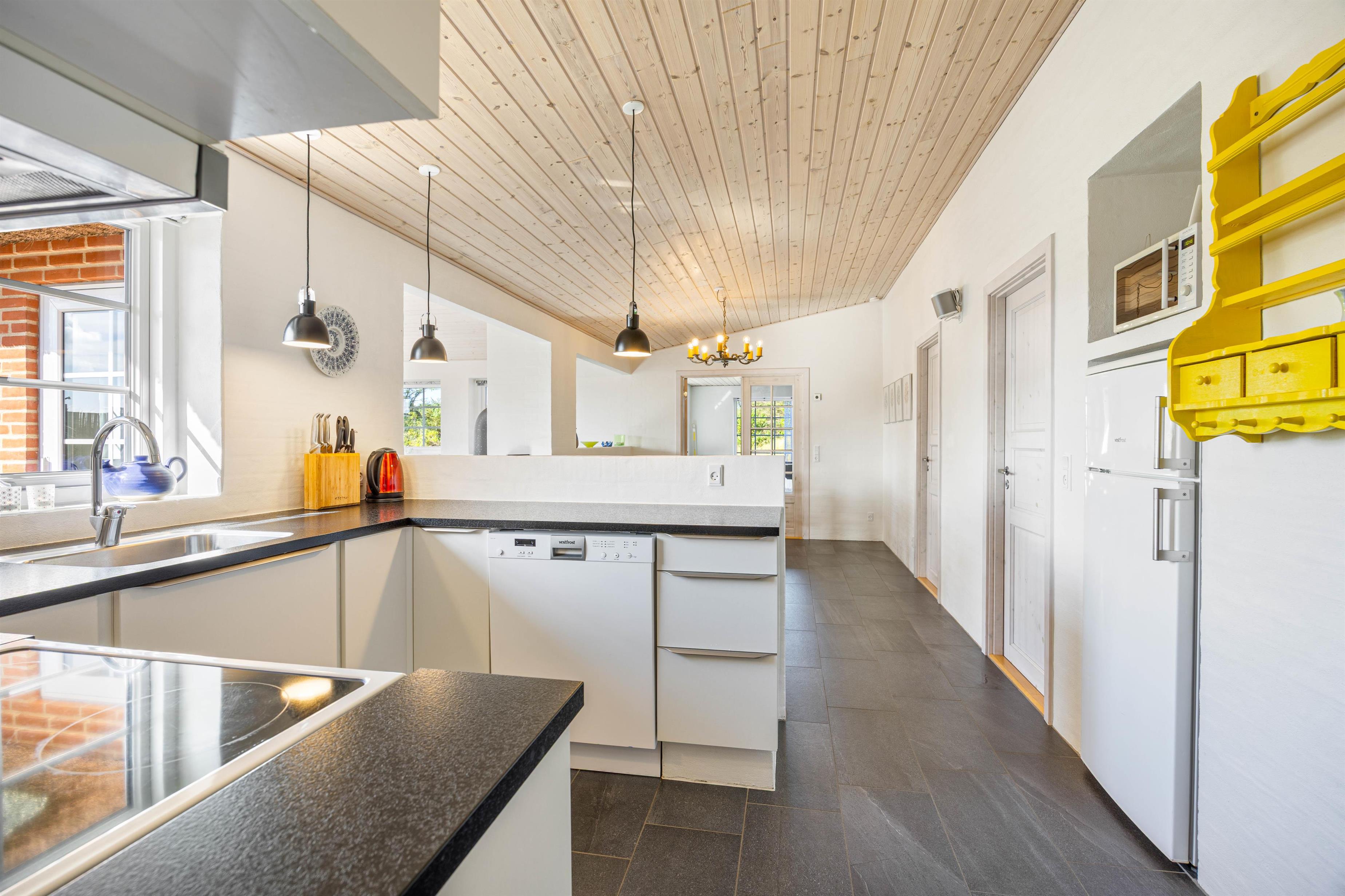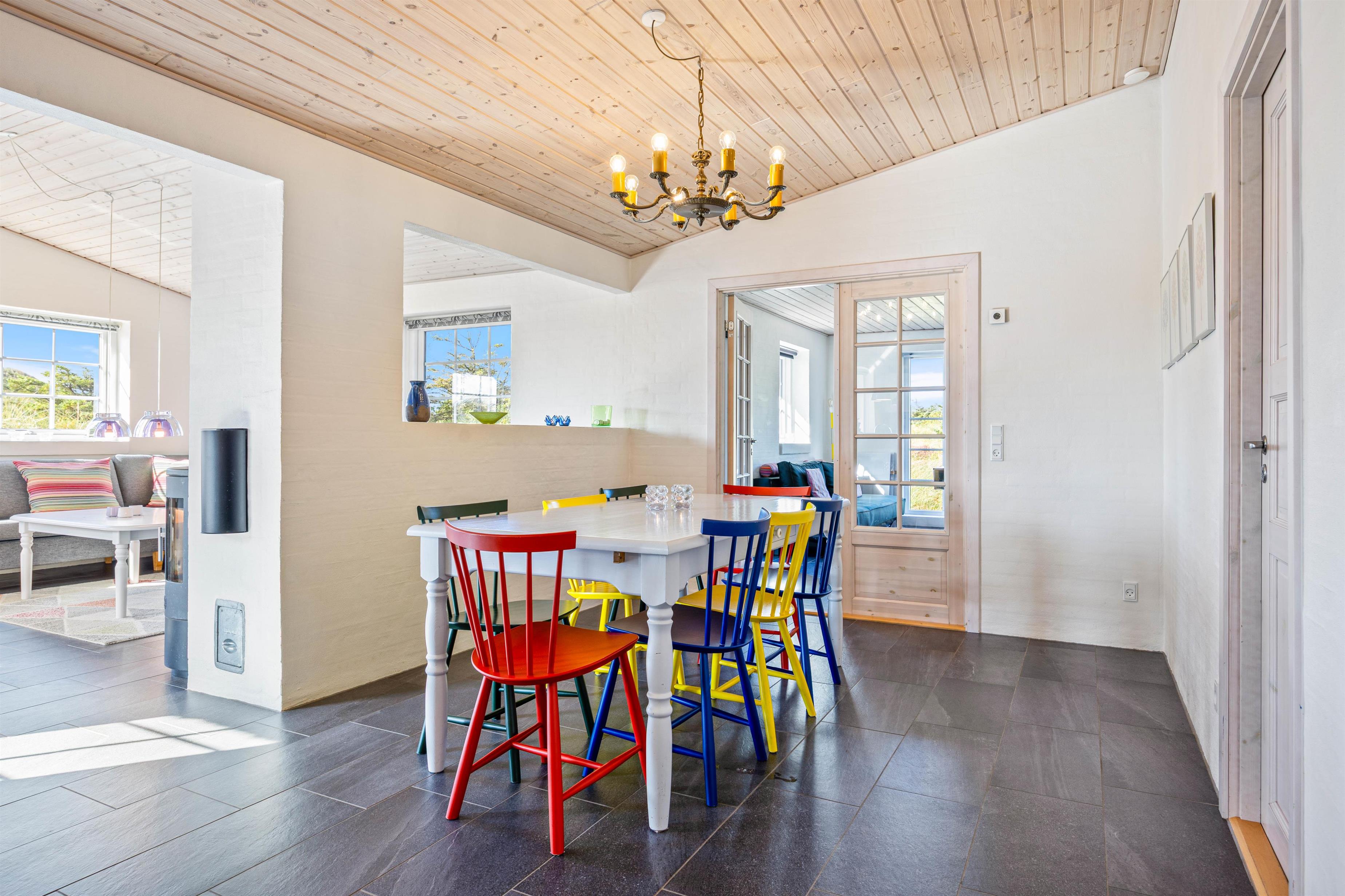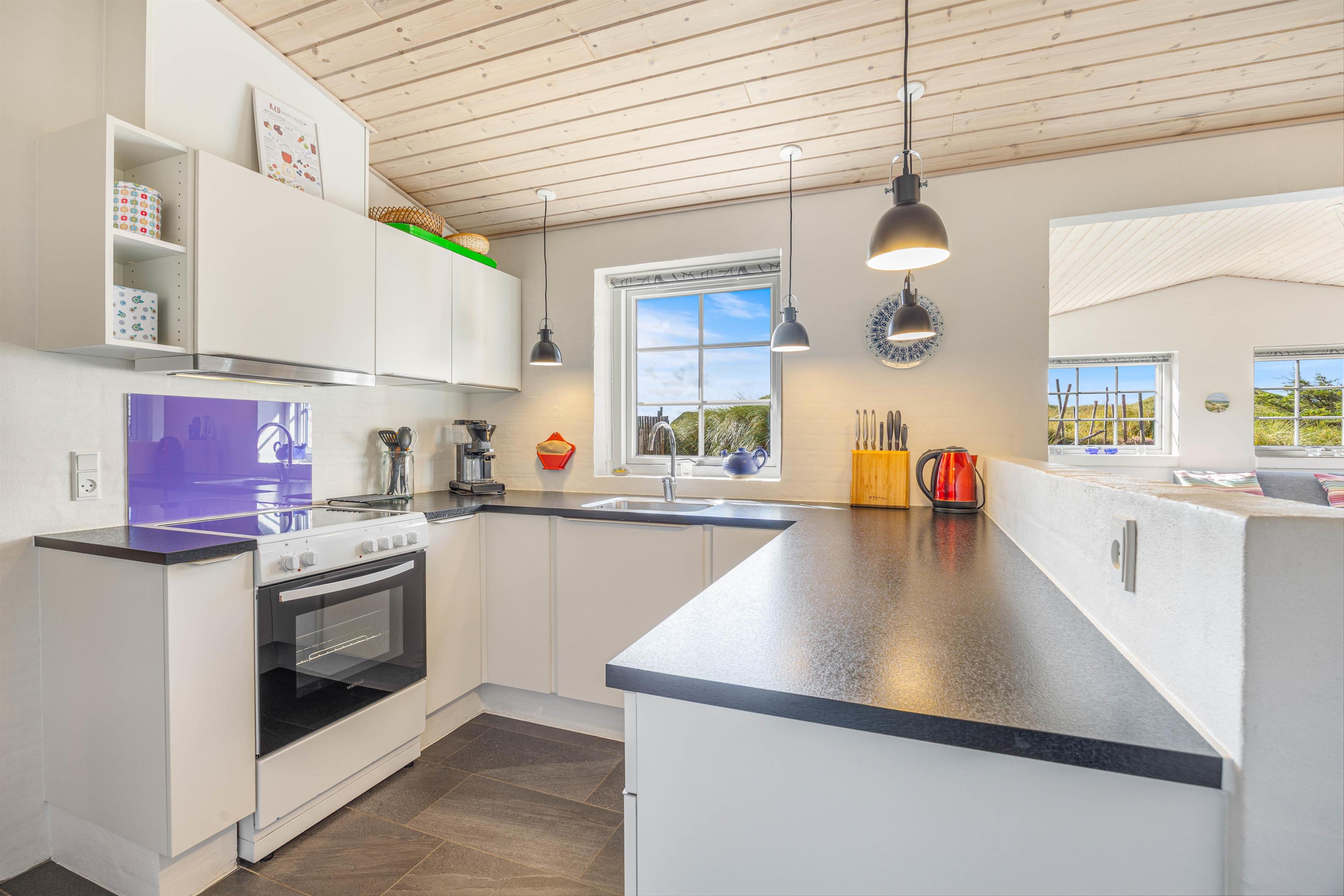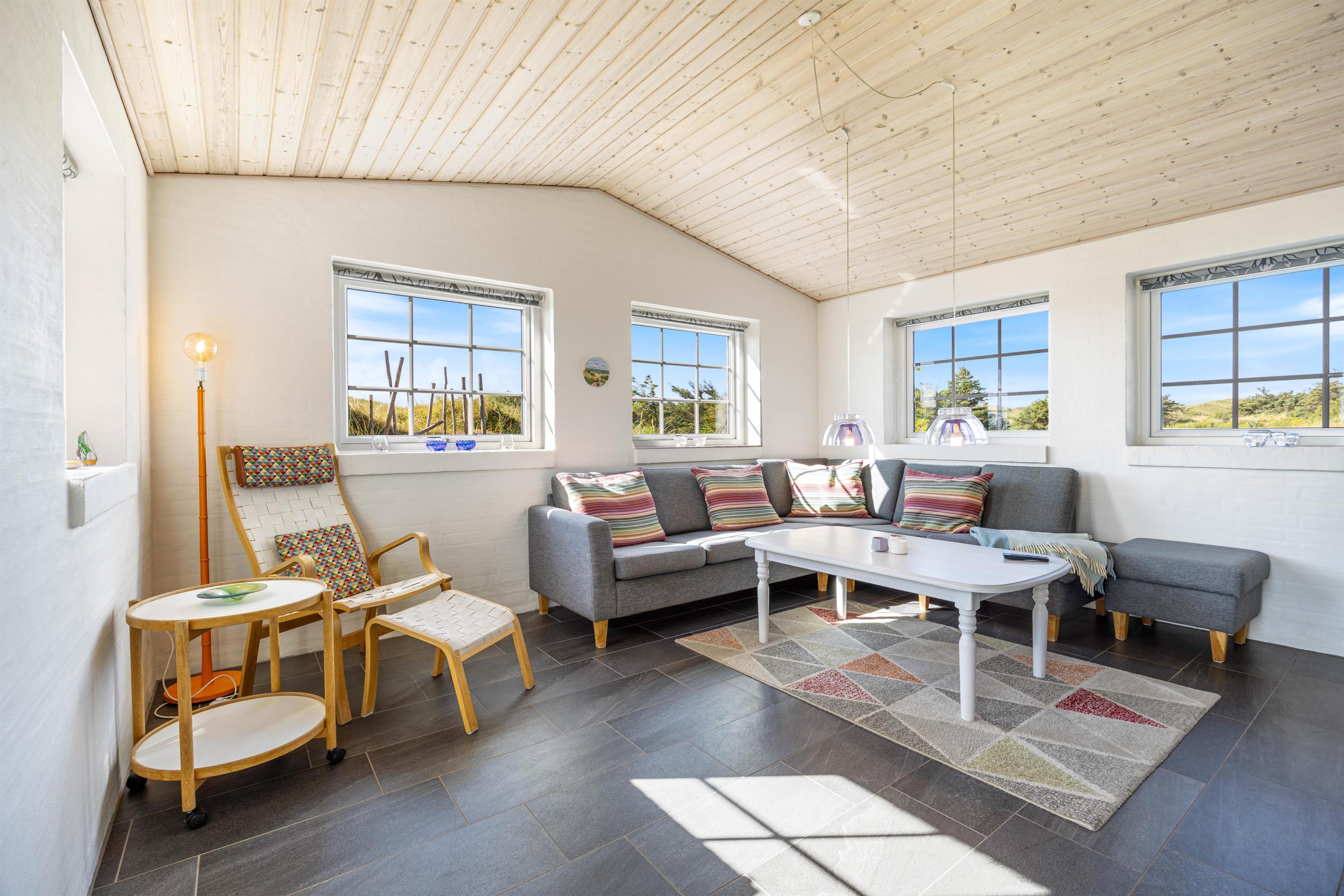 Husby Klitvej 35 er det perfekte valg til en ferie fuld af naturoplevelser, sjov og afslapning. Tænd op i brændeovnen efter dagens gåtur ved havet og nyd et glas vin foran flammerne i husets flydersofa.
