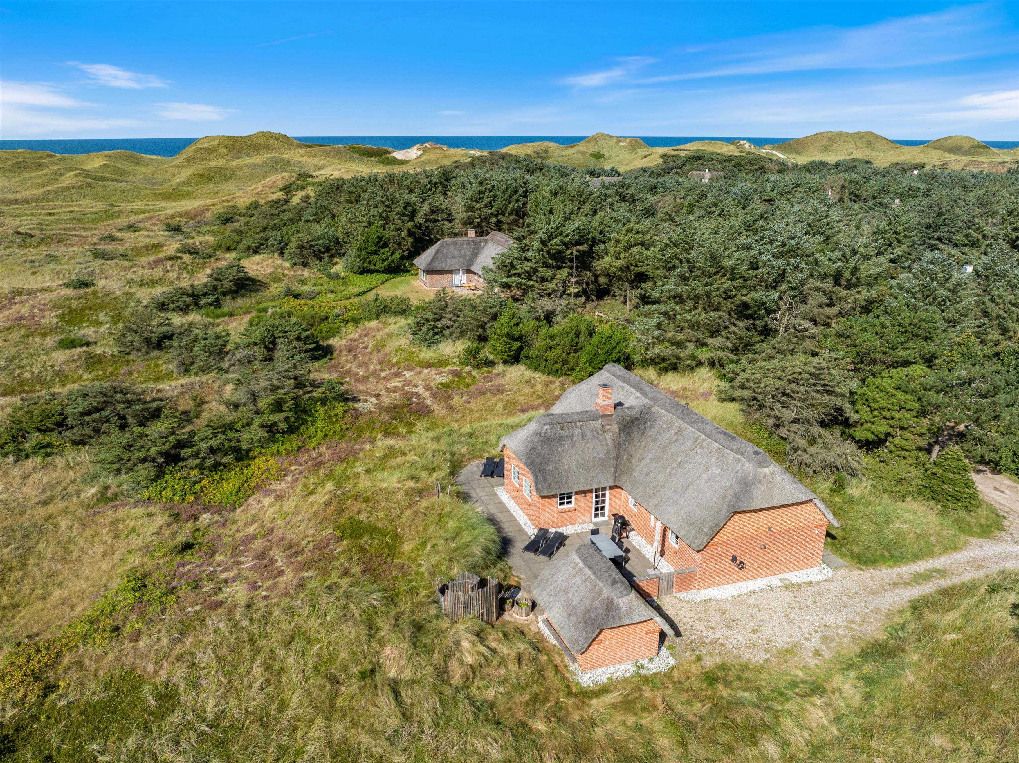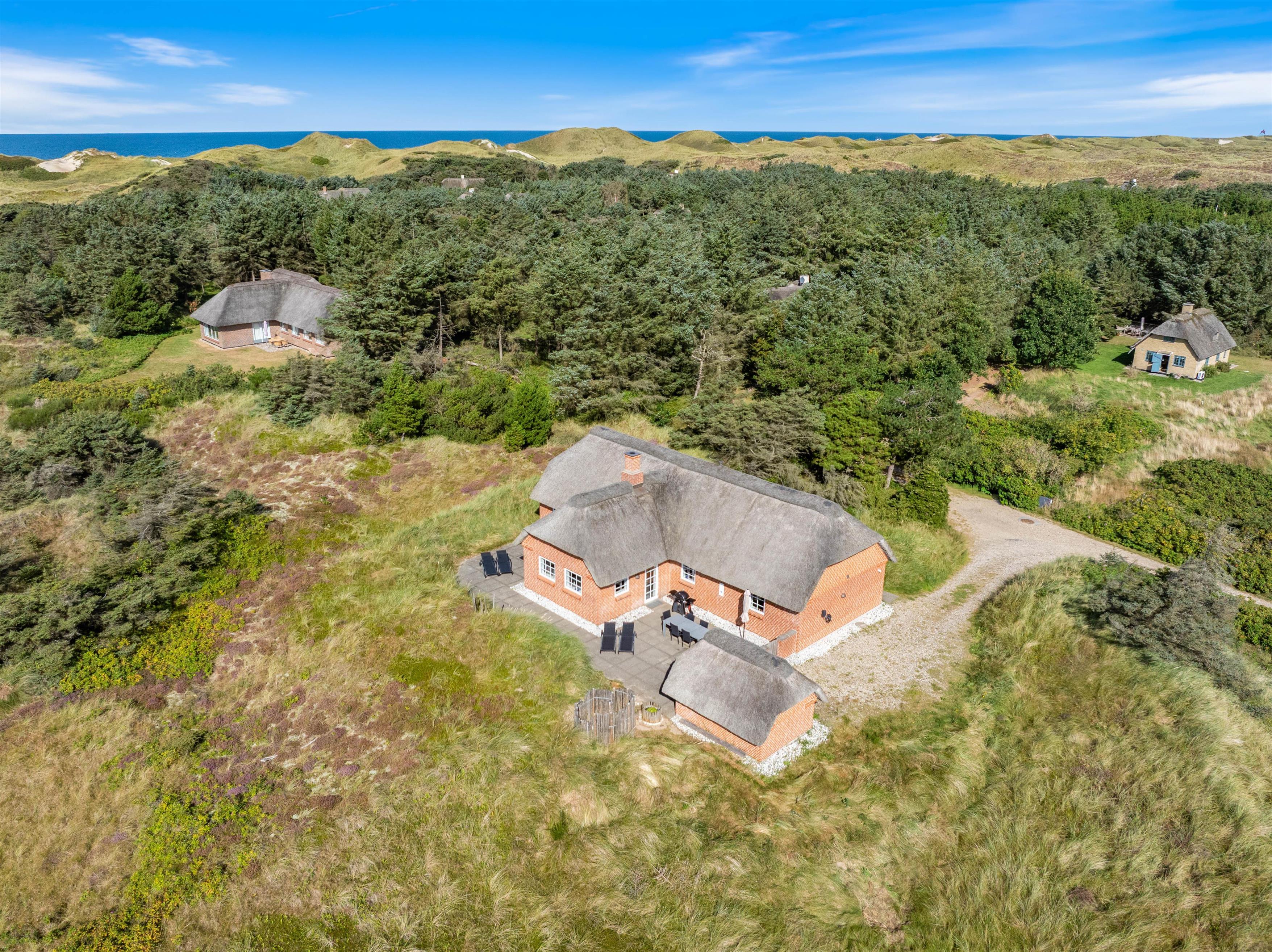 Beliggenheden midt i det smukke klitlandskab og mindre end 400 meter fra stranden gør feriehuset til det perfekte sted at nyde udelivet i fulde drag.