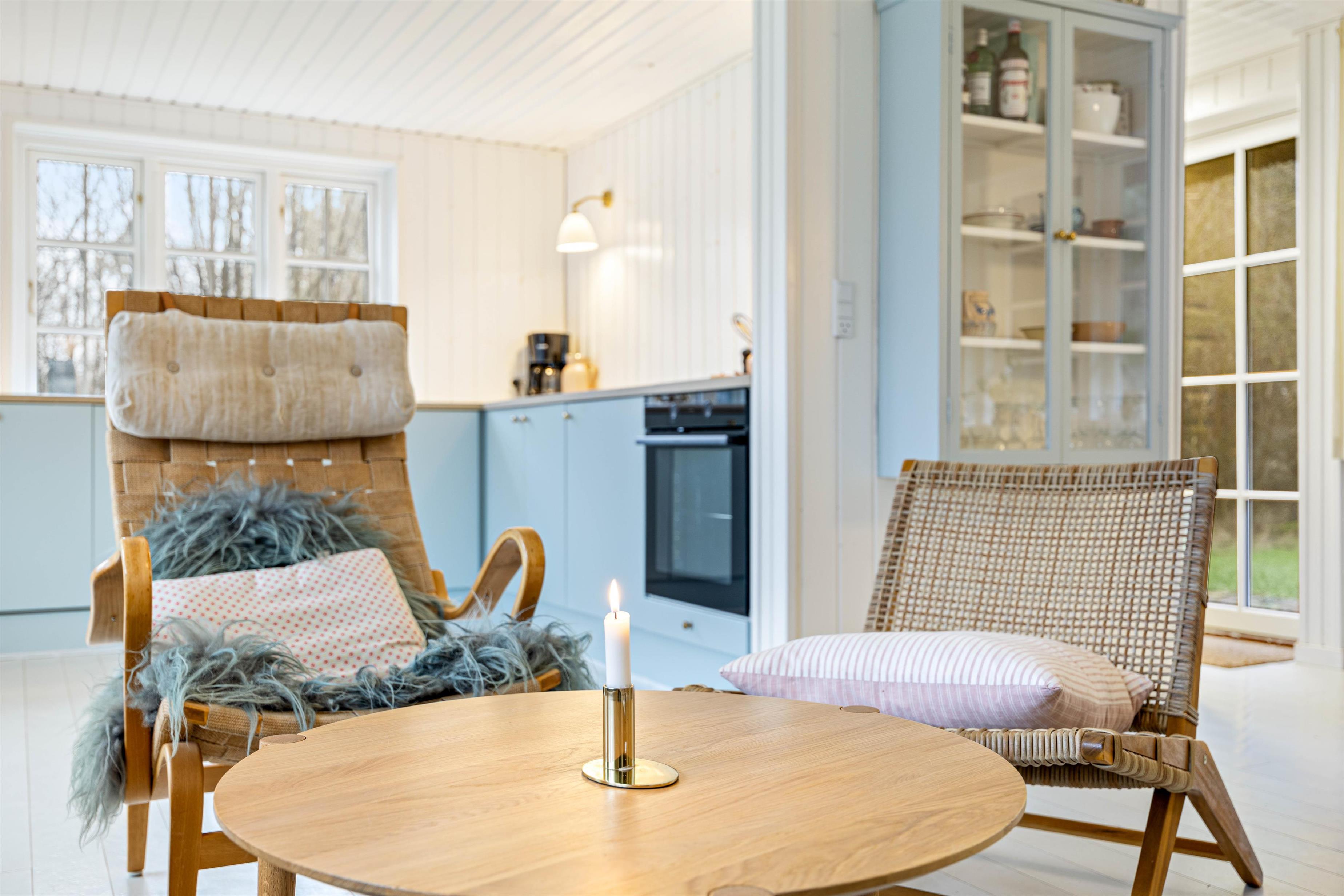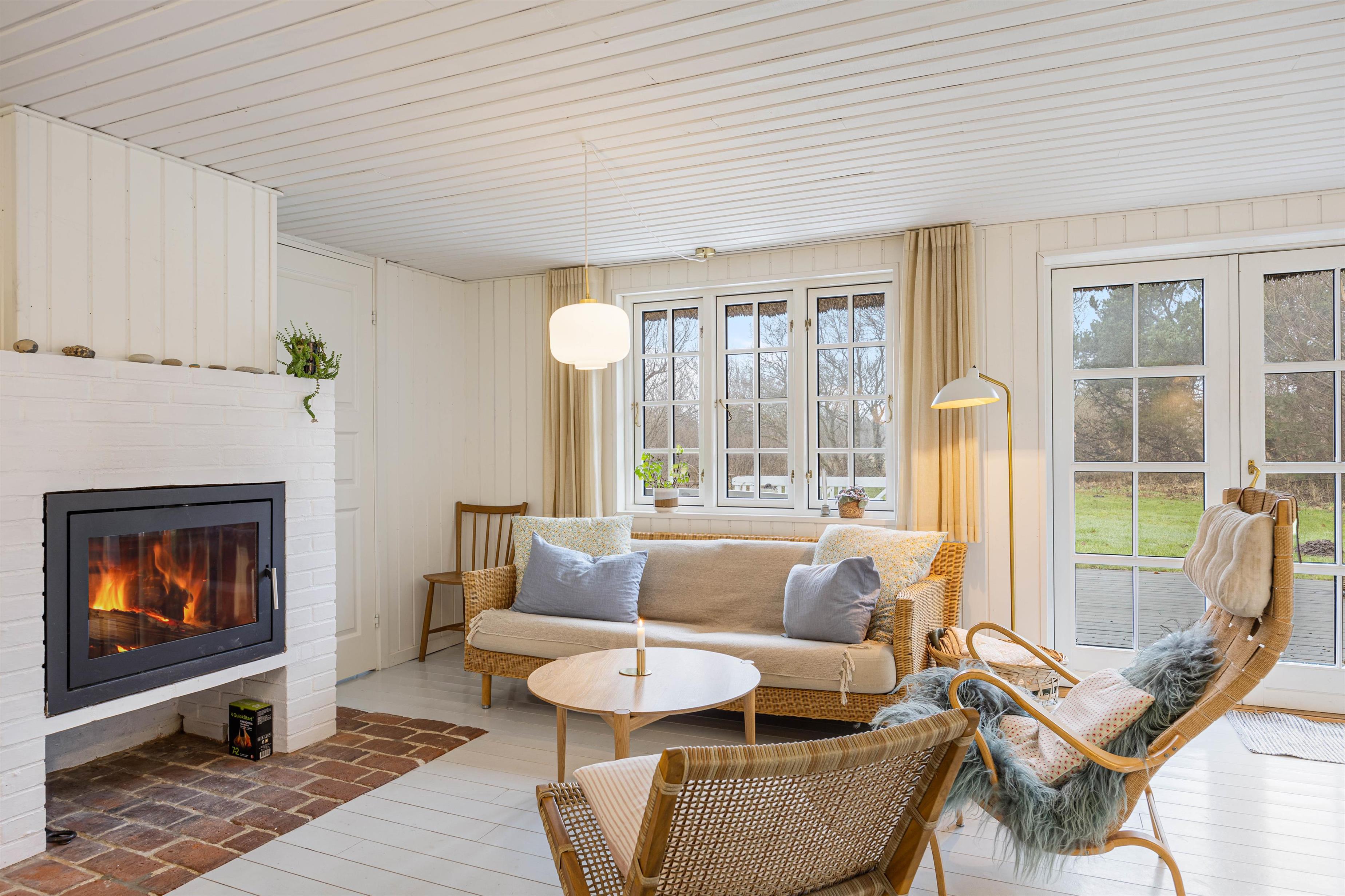 Når I træder ind i dette sommerhus, fornemmer I straks ægte sommerhusstil med lyse træpaneler og lyse trægulve. Sommerhuset på Øhusevej 15 er fordelt på 3 soverum. Det lyse og funktionelle køkken er i åben forbindelse med stuen, hvorfra der også er udgang til træterrassen. I stuen finder I også sommerhusets brændeovn, som sørger for hyggelig sommerhusstemning og varme på køligere dage. Der er desuden opvaskemaskine, fladskærms-tv og gratis fibernet, så I er garanteret en hurtig internetforbindelse på ferien.