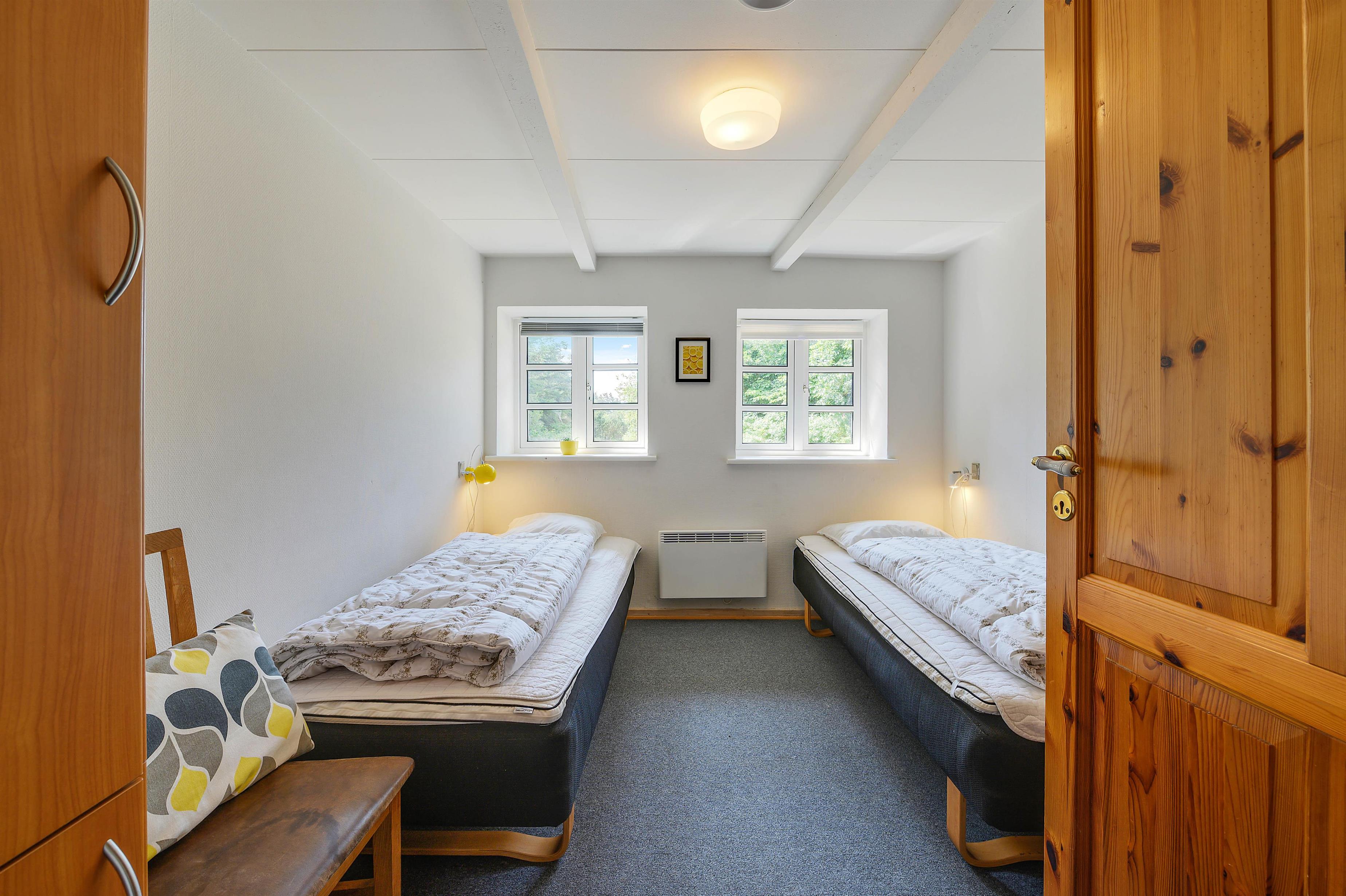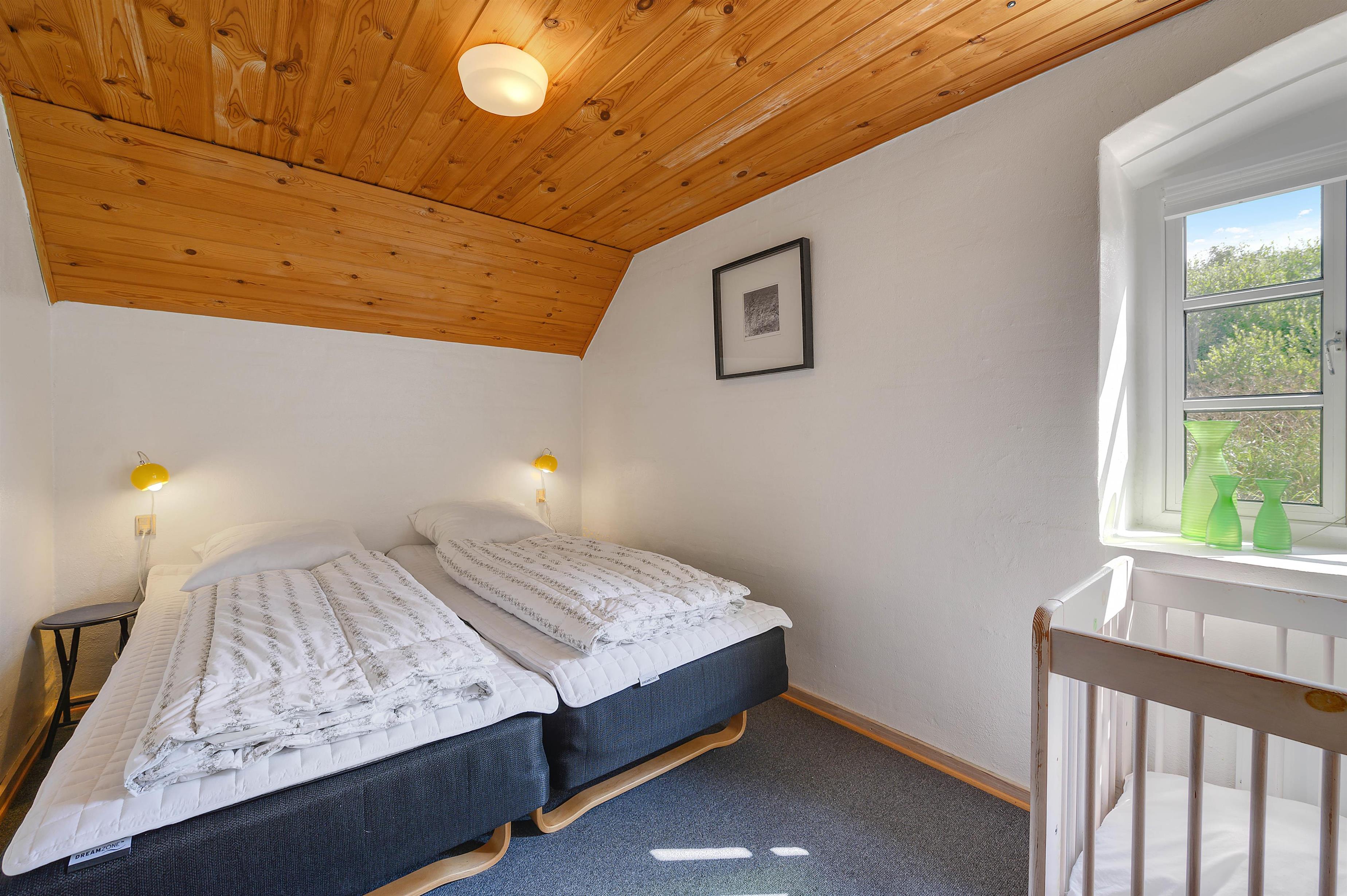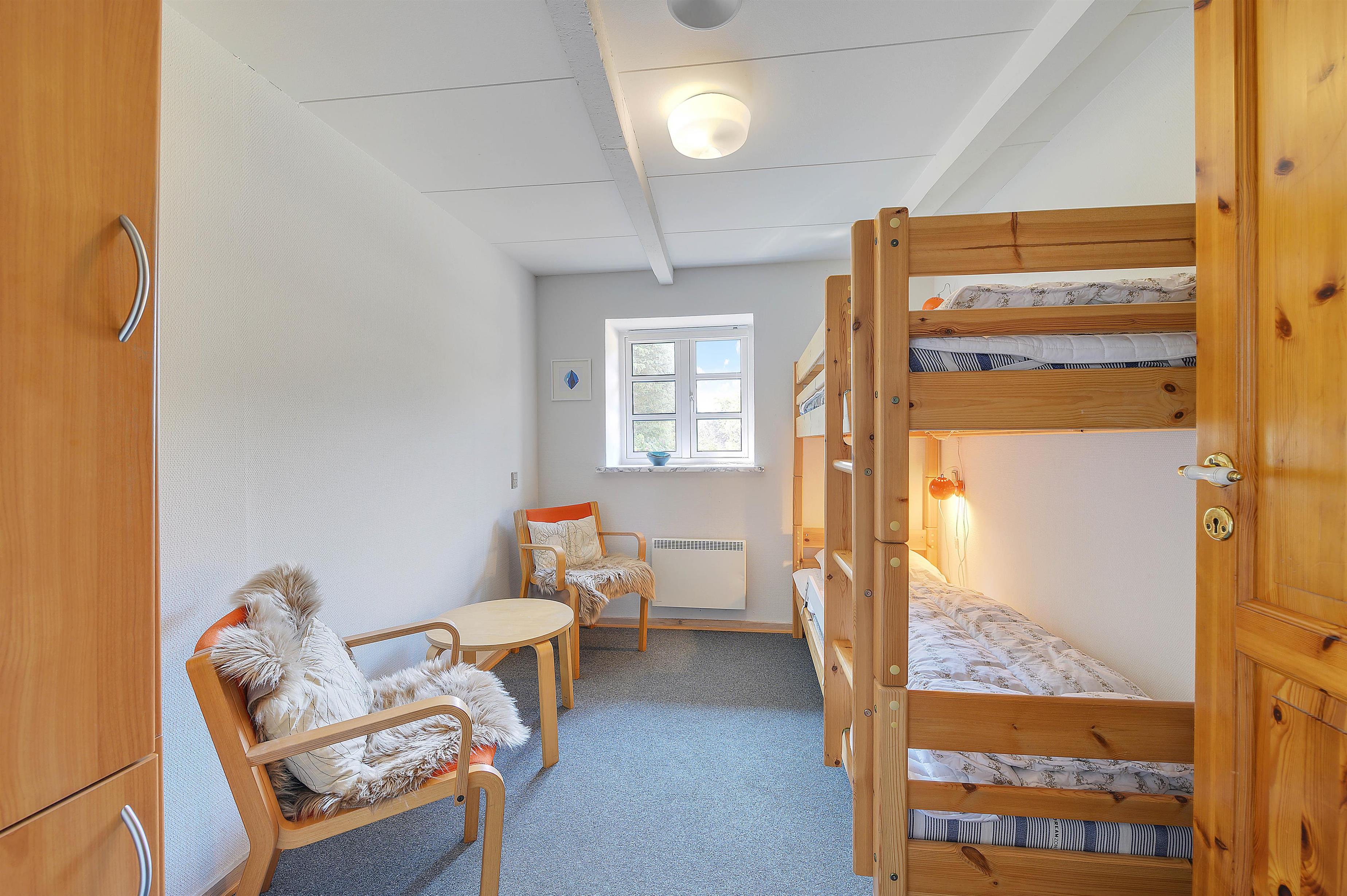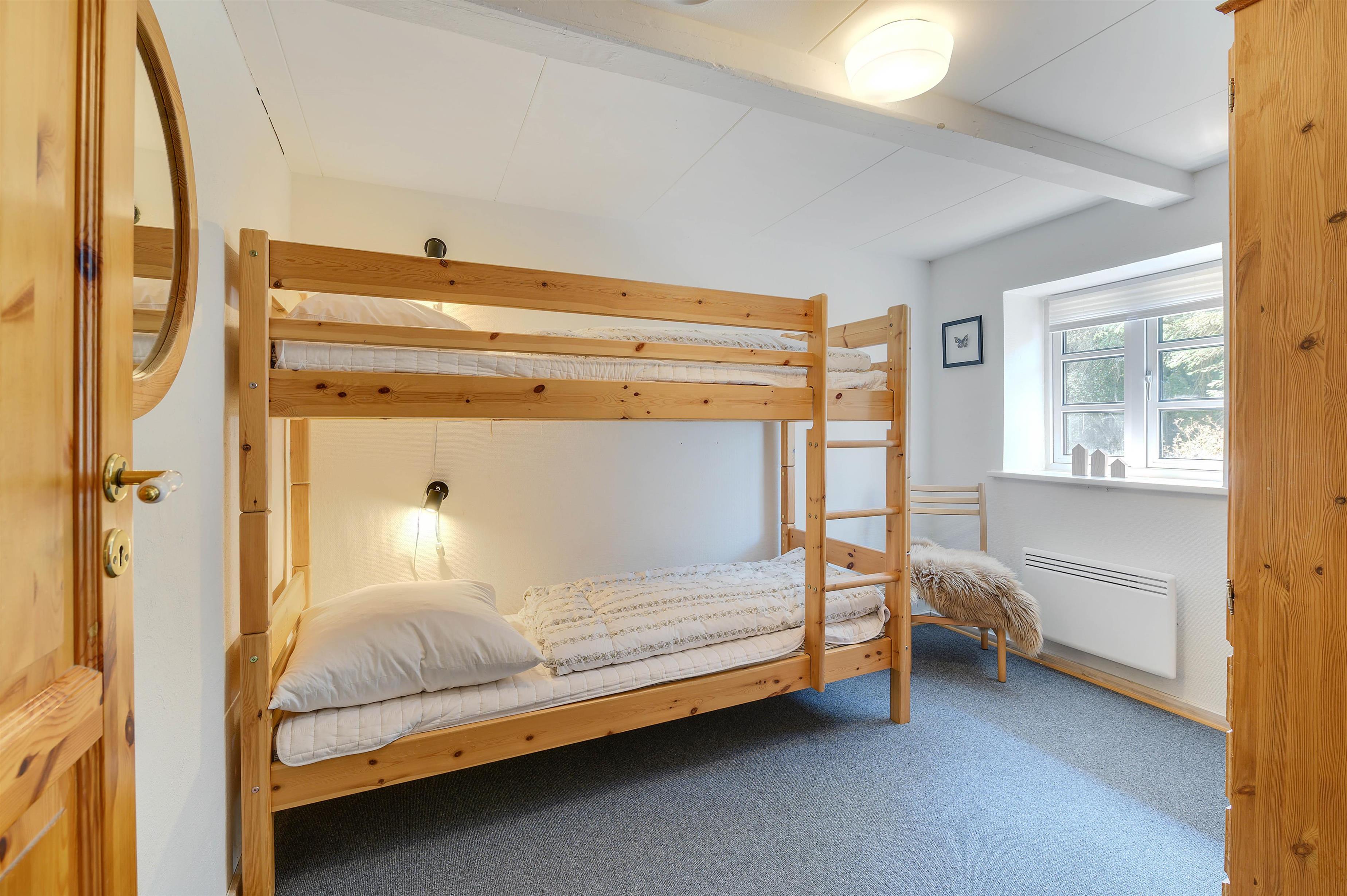 Sommerhuset er fordelt på 7 soverum, heraf har det ene dobbeltseng og derudover er der 6 enkeltsenge og 3 køjesenge. Stuen er i åben forbindelse med køkkenet, så I alle kan følge med i madlavningen og ferieplanlægningen.