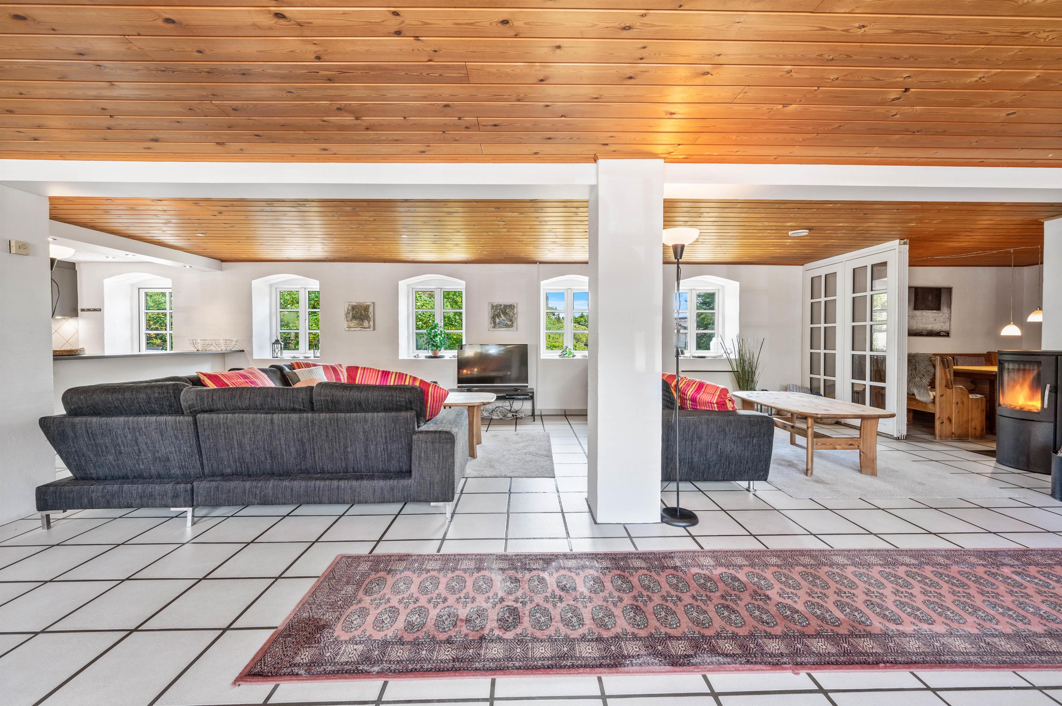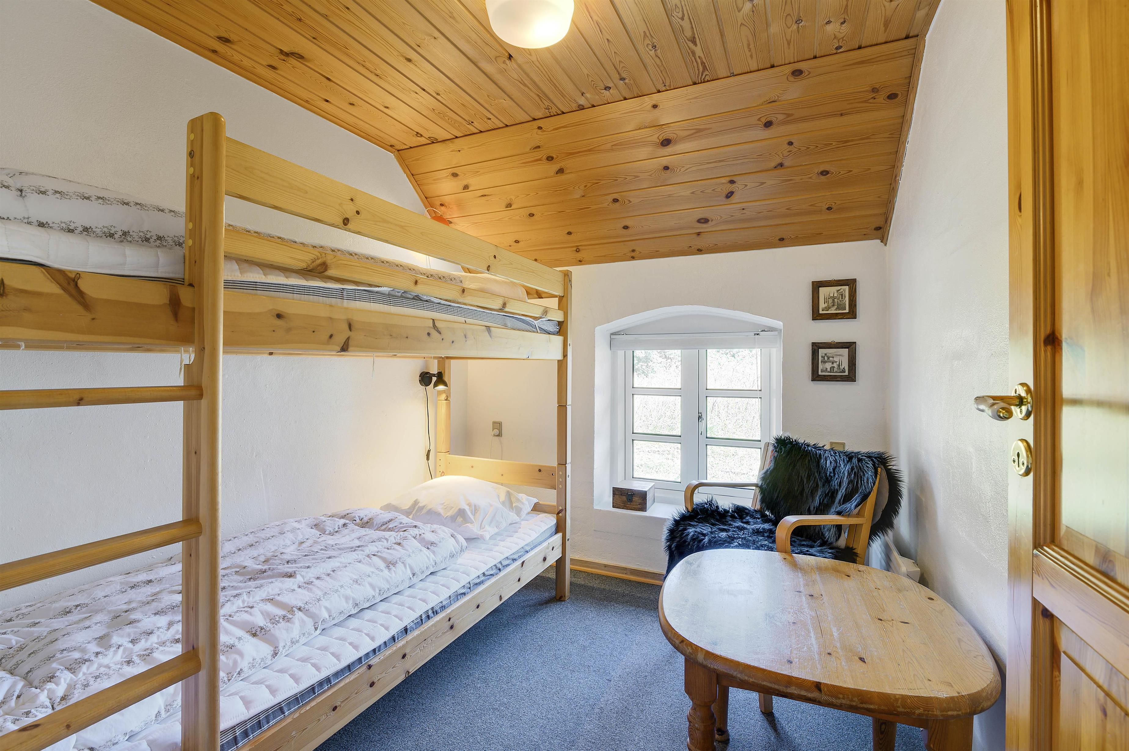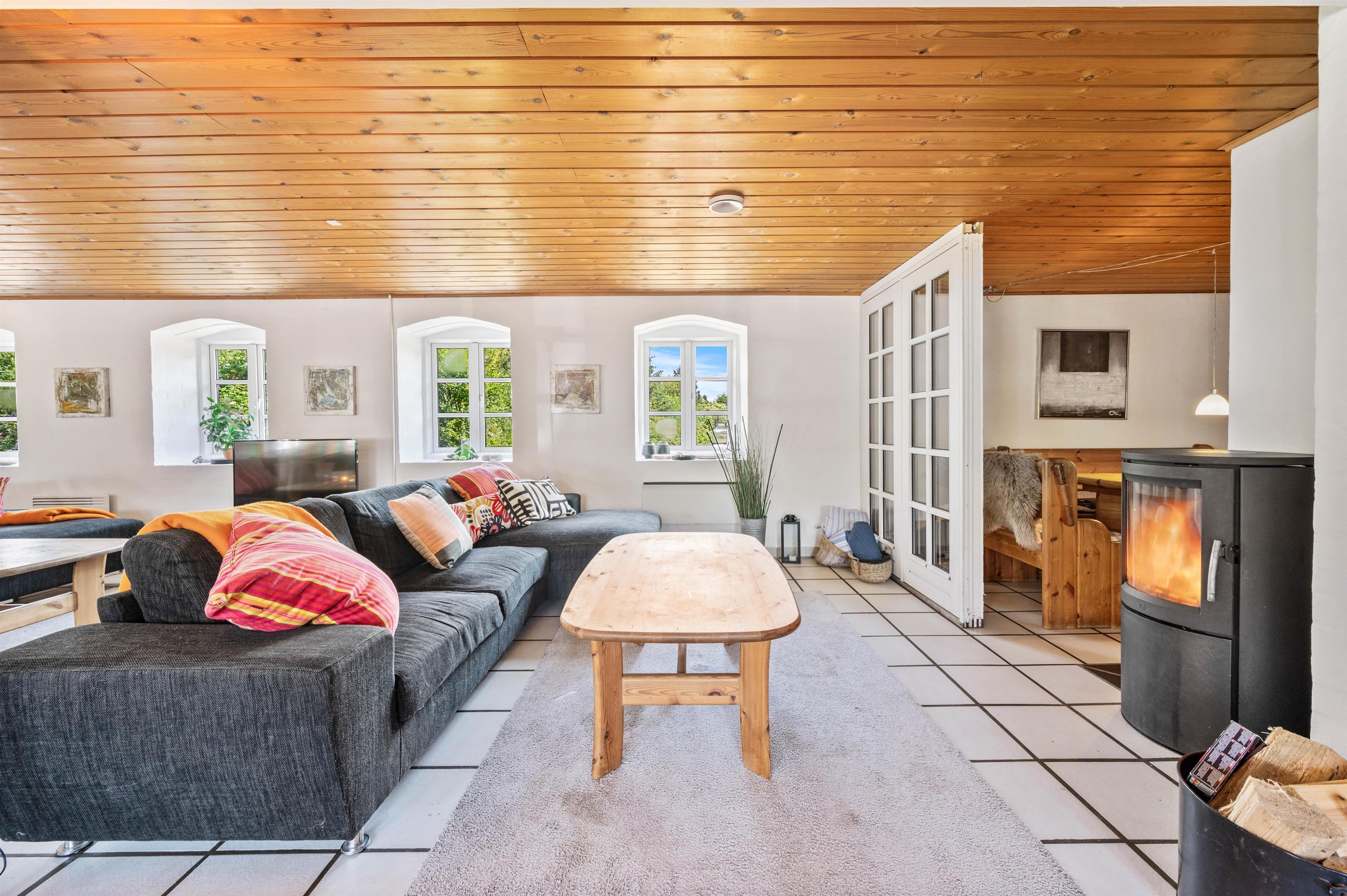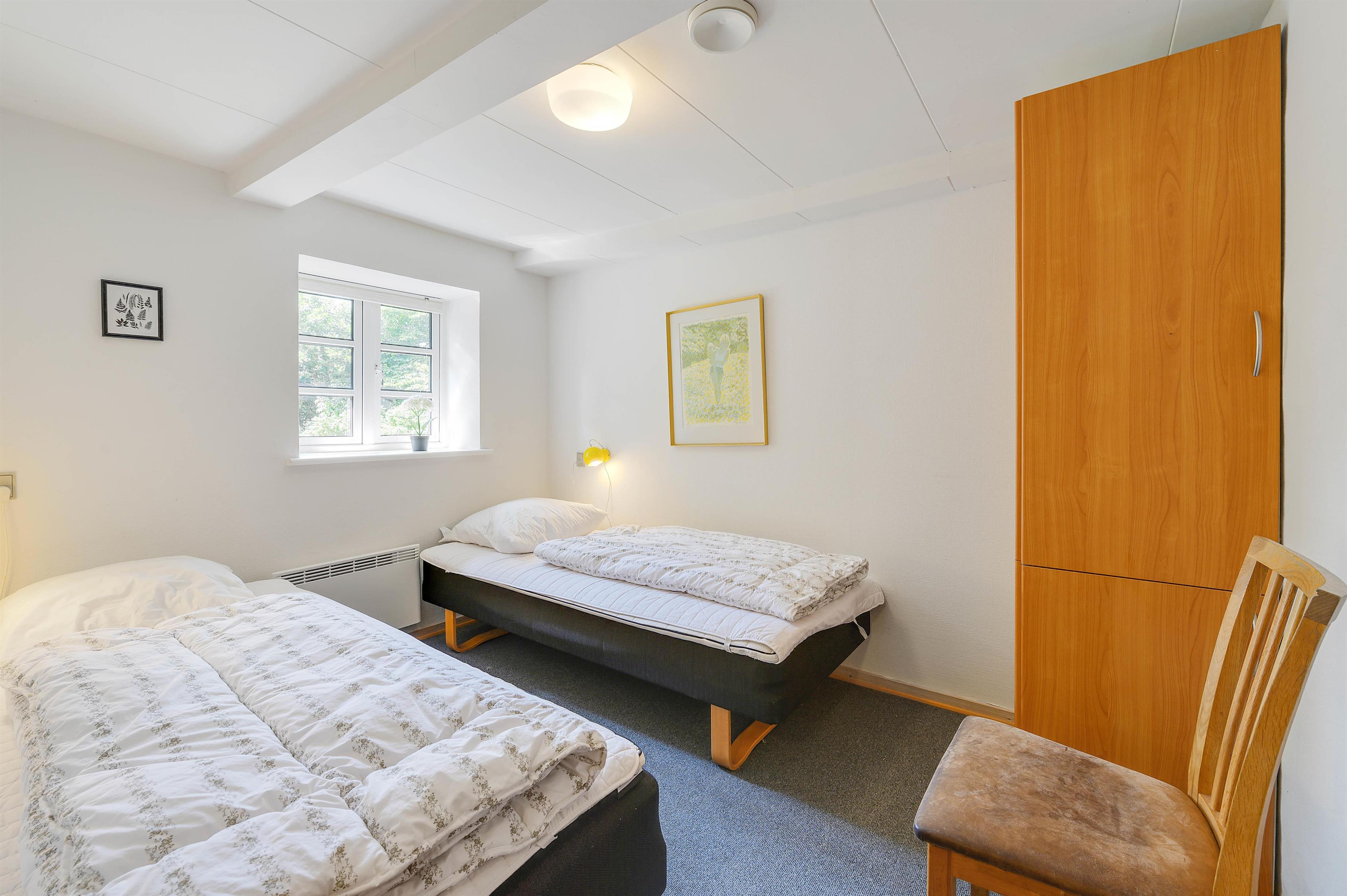 Sommerhuset er fordelt på 7 soverum, heraf har det ene dobbeltseng og derudover er der 6 enkeltsenge og 3 køjesenge. Stuen er i åben forbindelse med køkkenet, så I alle kan følge med i madlavningen og ferieplanlægningen.
