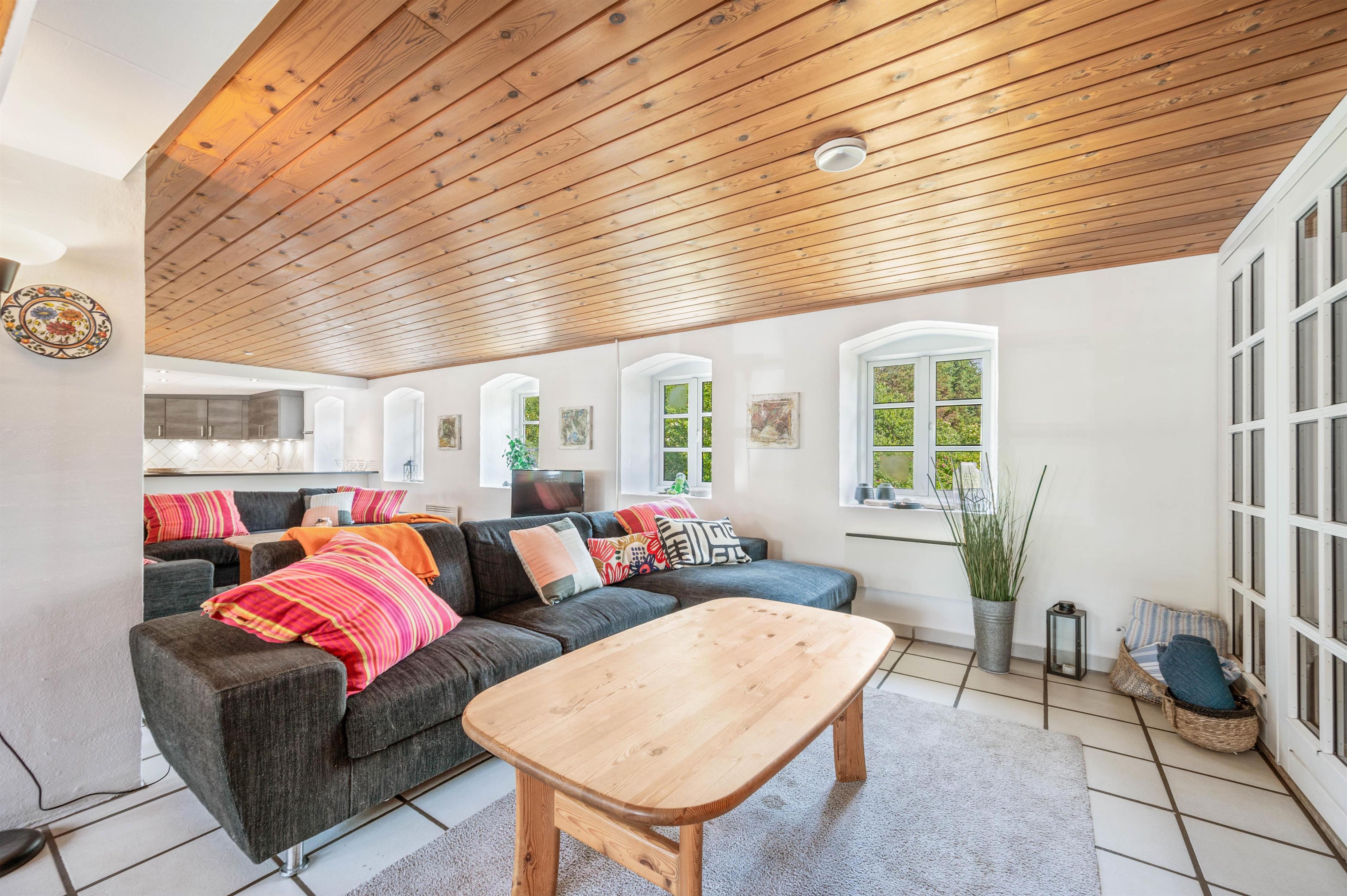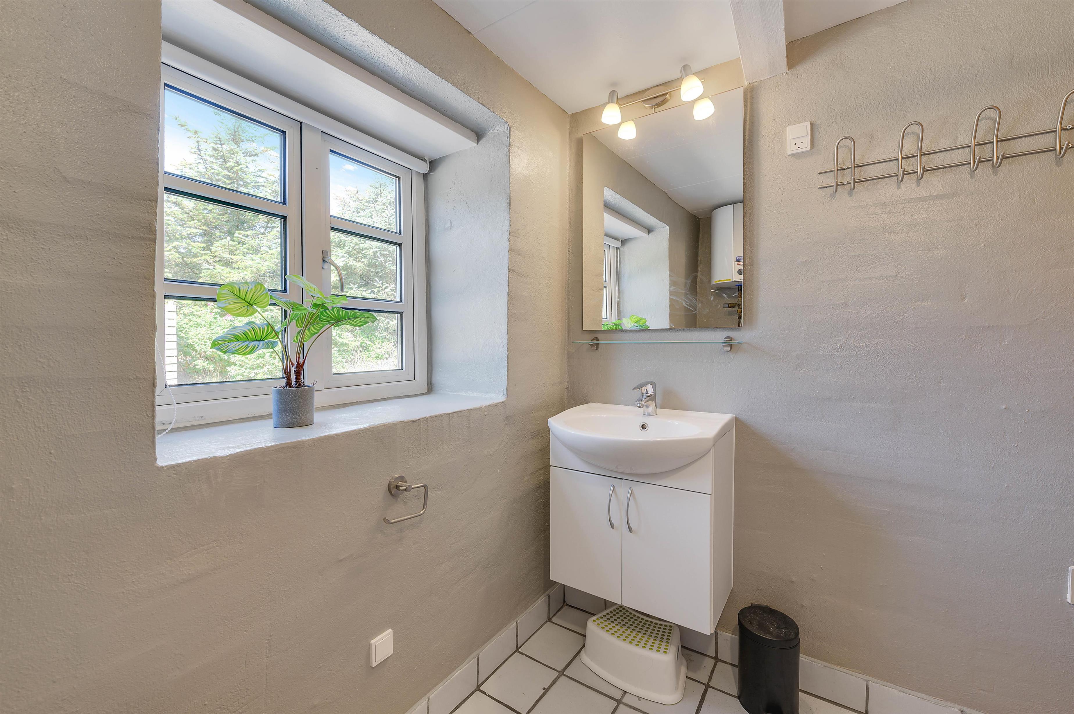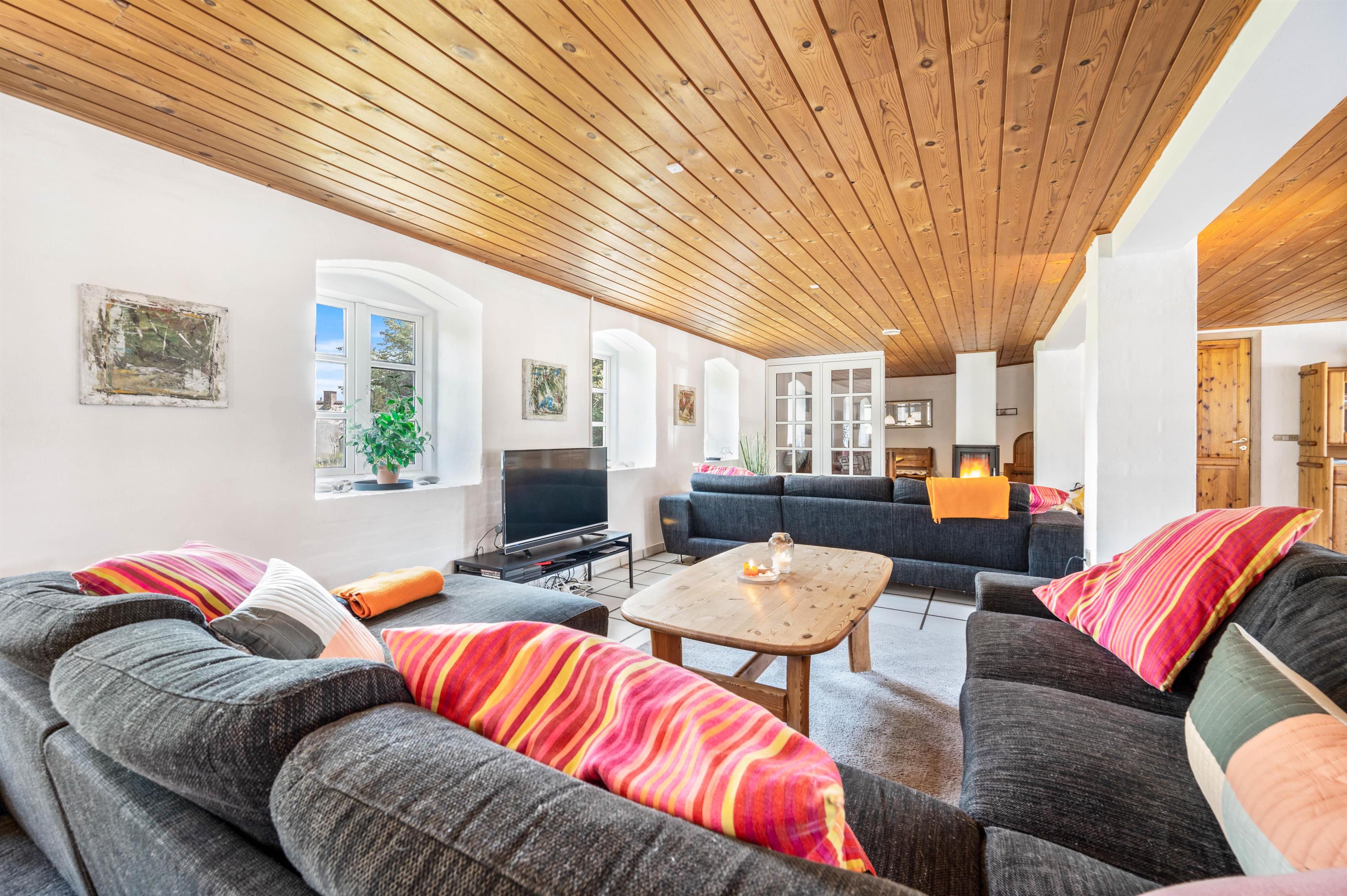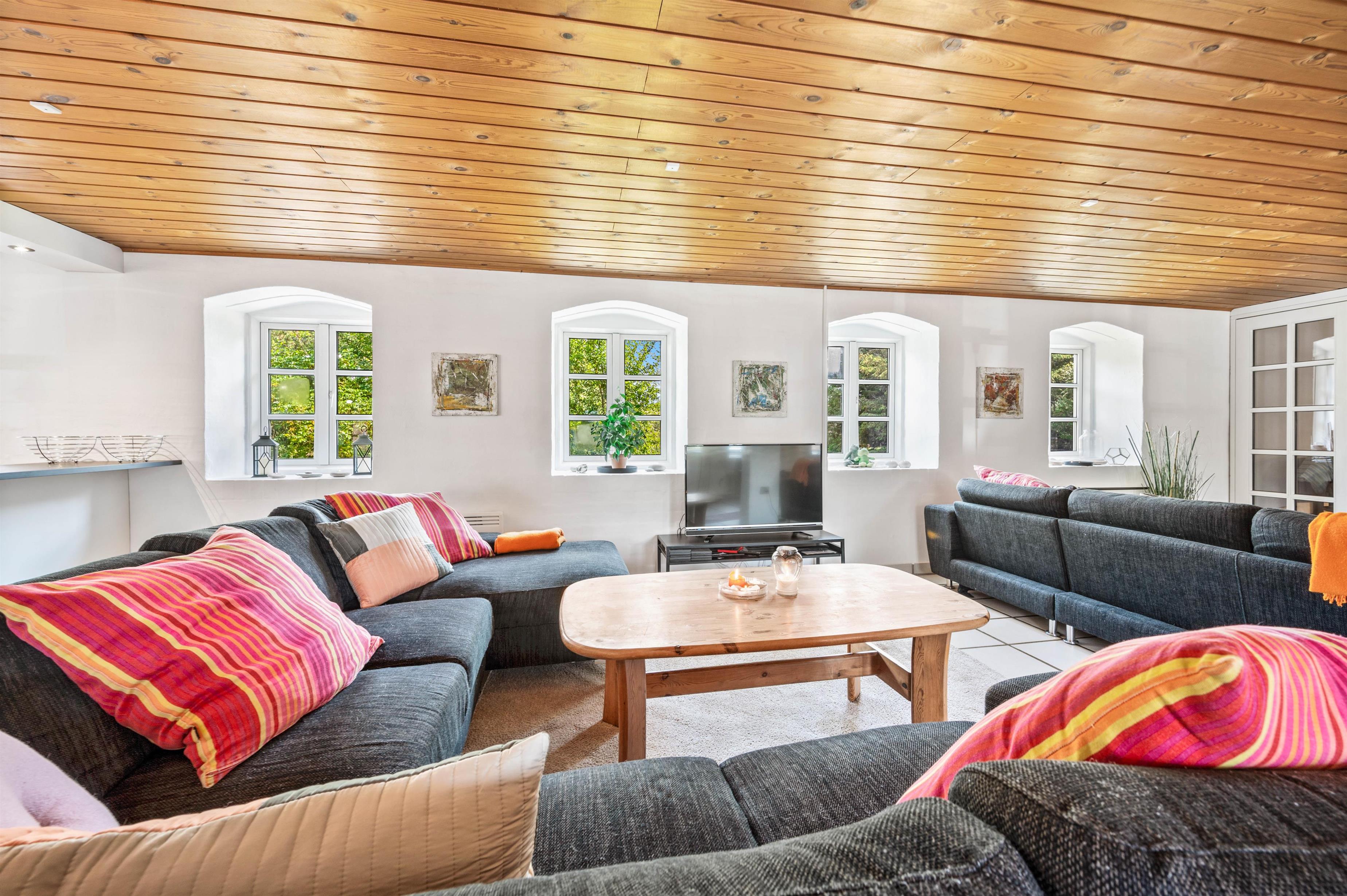 Sommerhuset er fordelt på 7 soverum, heraf har det ene dobbeltseng og derudover er der 6 enkeltsenge og 3 køjesenge. Stuen er i åben forbindelse med køkkenet, så I alle kan følge med i madlavningen og ferieplanlægningen.