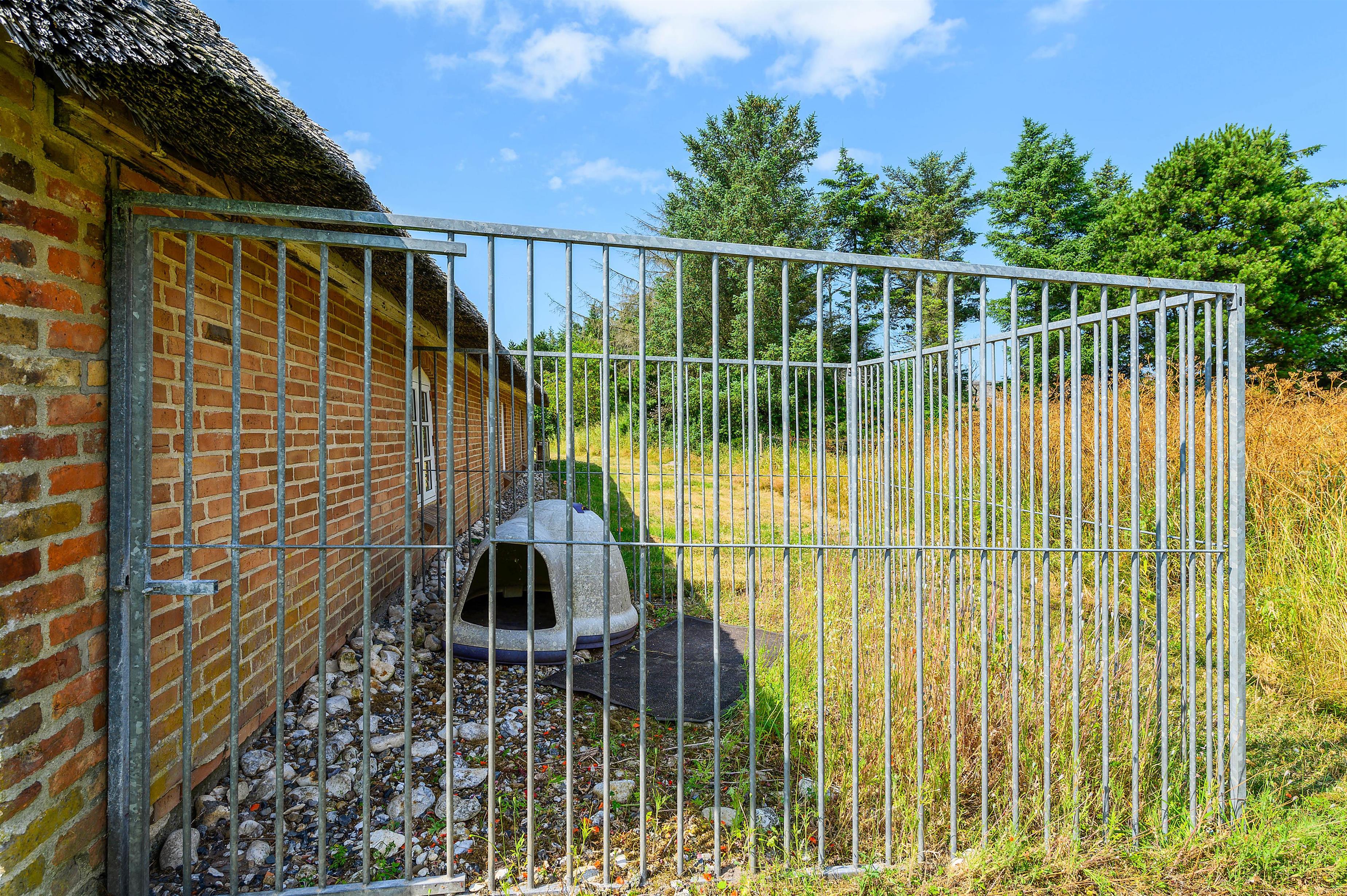 Udenfor på gårdspladsen er der rig mulighed for at slappe i liggestolene, og her kan I sidde og nyde solen, mens ungerne hygger sig på gyngestativet eller i sandkassen. I kan også tænde op i grillen og tilberede en lækker middag, som I kan nyde på gårdspladsen eller på terrassen i læ for Vestenvinden. Der er også en hundegård, så familiens firbenede venner kan færdes trygt.