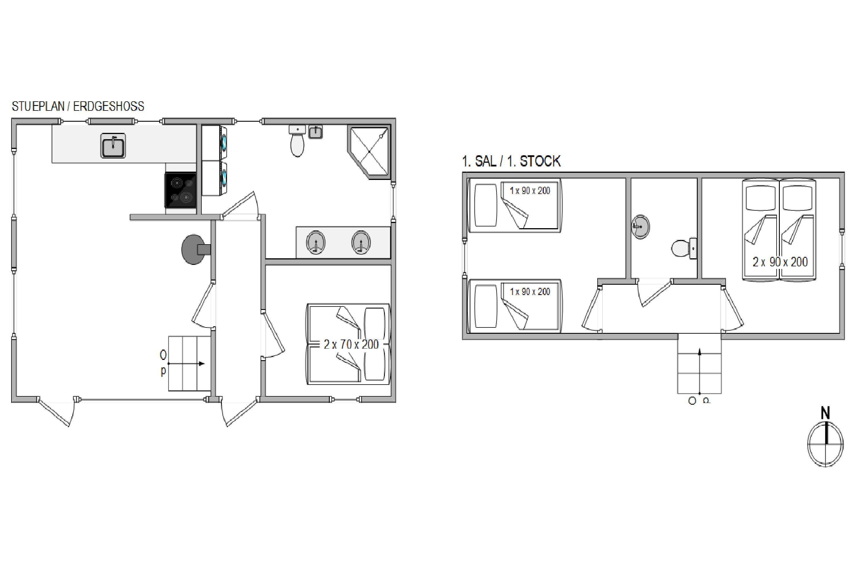 De i alt 6 sovepladser er fordelt over 3 soveværelser. To af soveværelserne finder I ovenpå, hvor der også er et gæstetoilet. Her slipper I for en tur ned ad trappen midt op natten. De to gode soveværelser rummer en dobbeltseng og to enkeltsenge. Nedenunder finder I det tredje og sidste soveværelse med en dobbeltseng, så de mindre godt gående i familien også kan nyde en afslappet ferie uden for mange anstrengelser.
