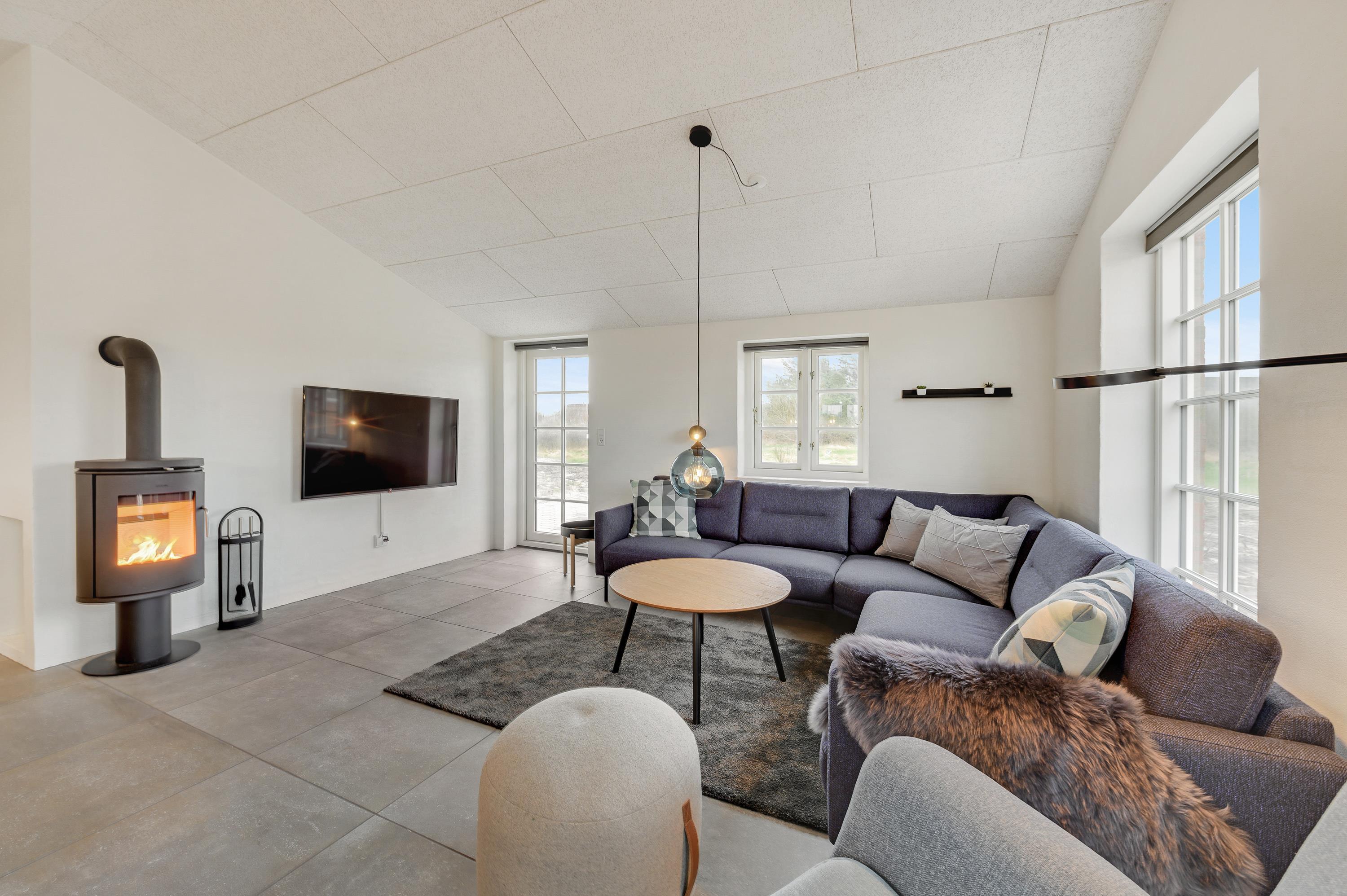 Oplev hygge og komfort i dette smukke stråtækte sommerhus, hvor varme fra brændeovnen og et blødt, varmt lys skaber den perfekte stemning. Slap af i den store, bekvemme sofa med din iPad, eller saml familien omkring det smukke plankebord og nyd et fælles måltid. I dette åbne rum, hvor stue og køkken smelter sammen, er der optimale betingelser for fællesskab og hygge.