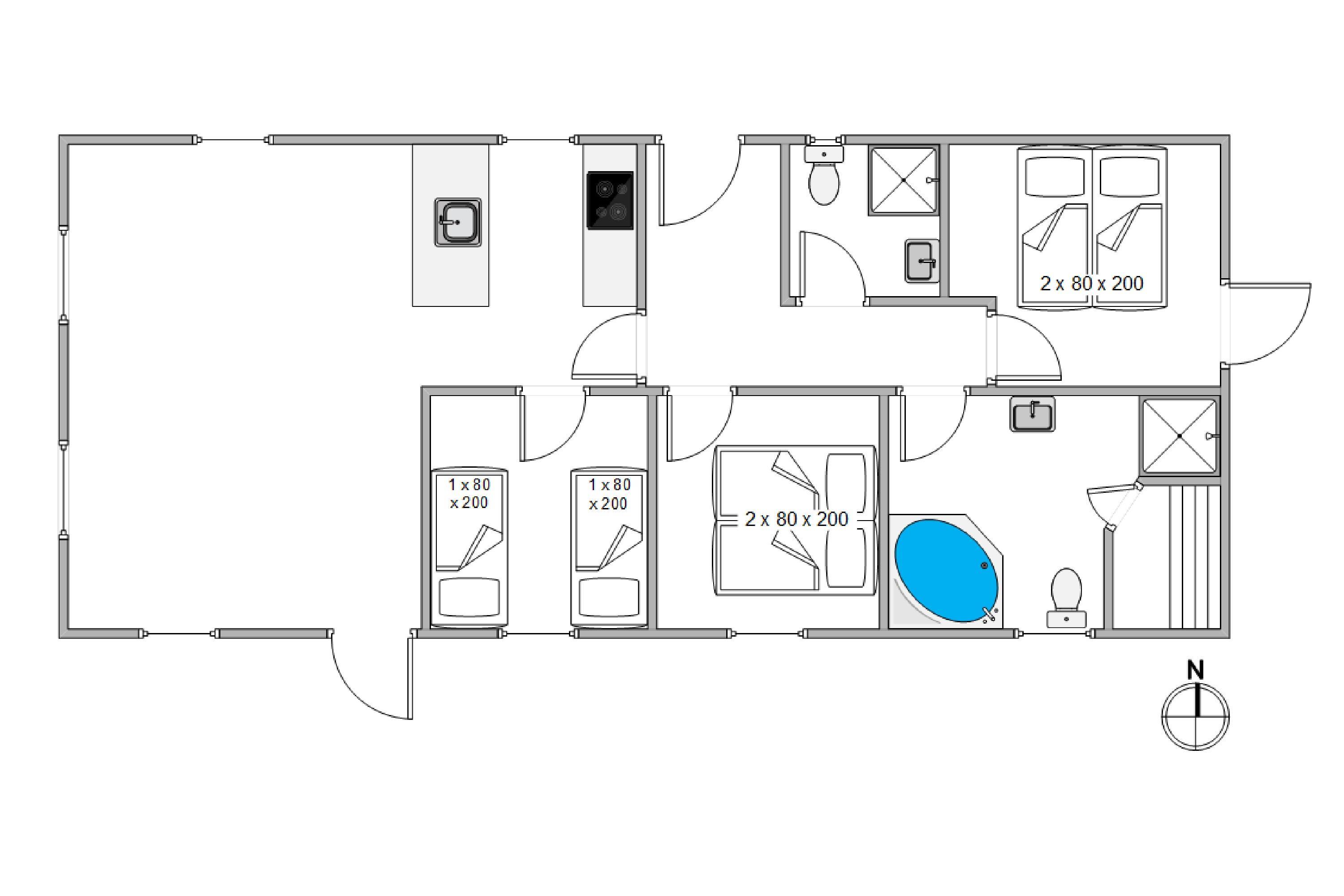 Den moderne og nyindrettede bolig garanterer både afslapning og velvære. Sommerhuset opvarmes af en energibesparende luft-til-vand-varmepumpe og har gulvvarme, så I altid kan nyde en behagelig temperatur. I det veludstyrede køkken går madlavning og oprydning nemt med induktionskomfur og opvaskemaskine. På badeværelset venter en sauna og en 2-personers spa, der er klar til masser af selvforkælelse og afslapning.