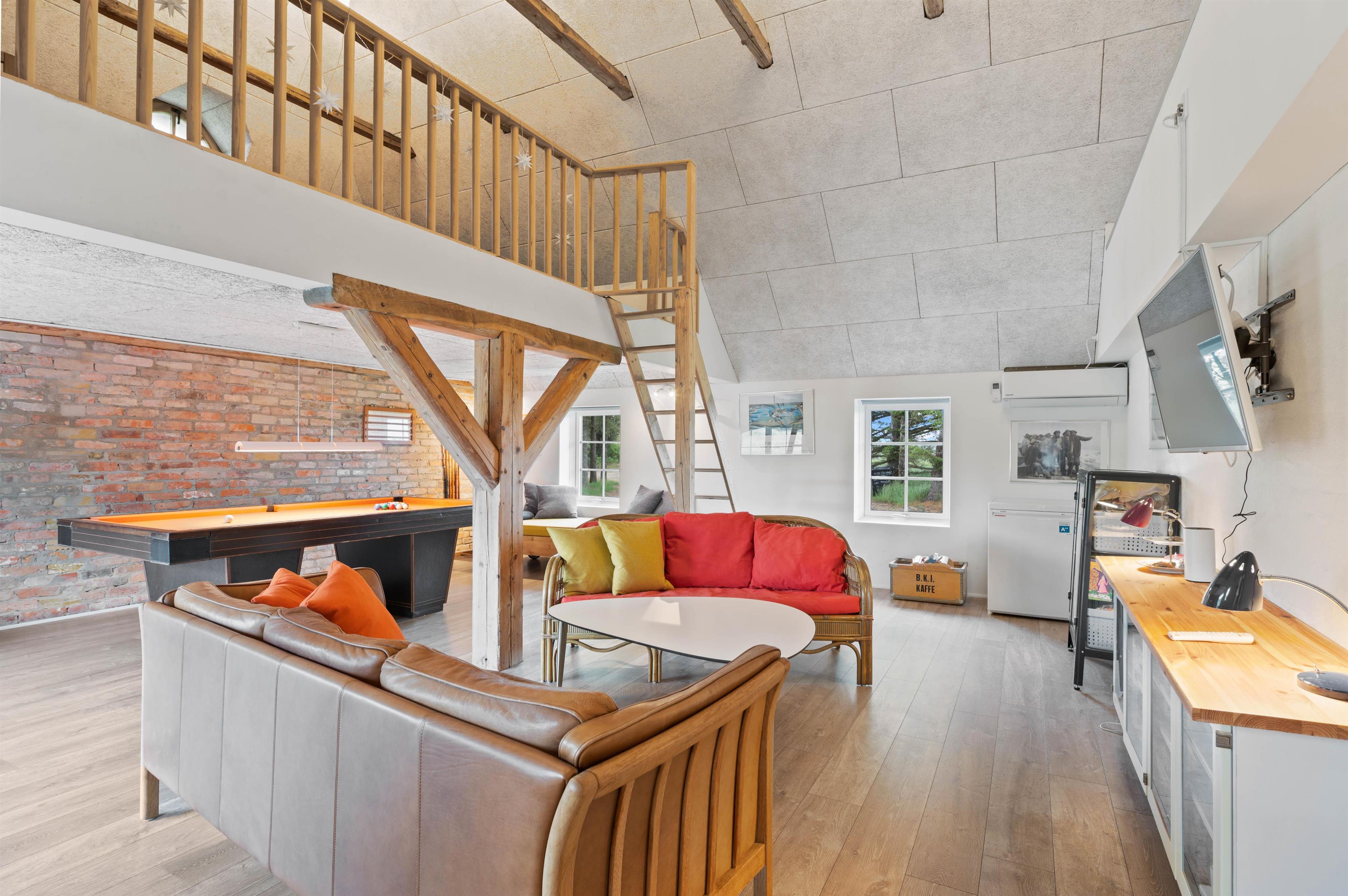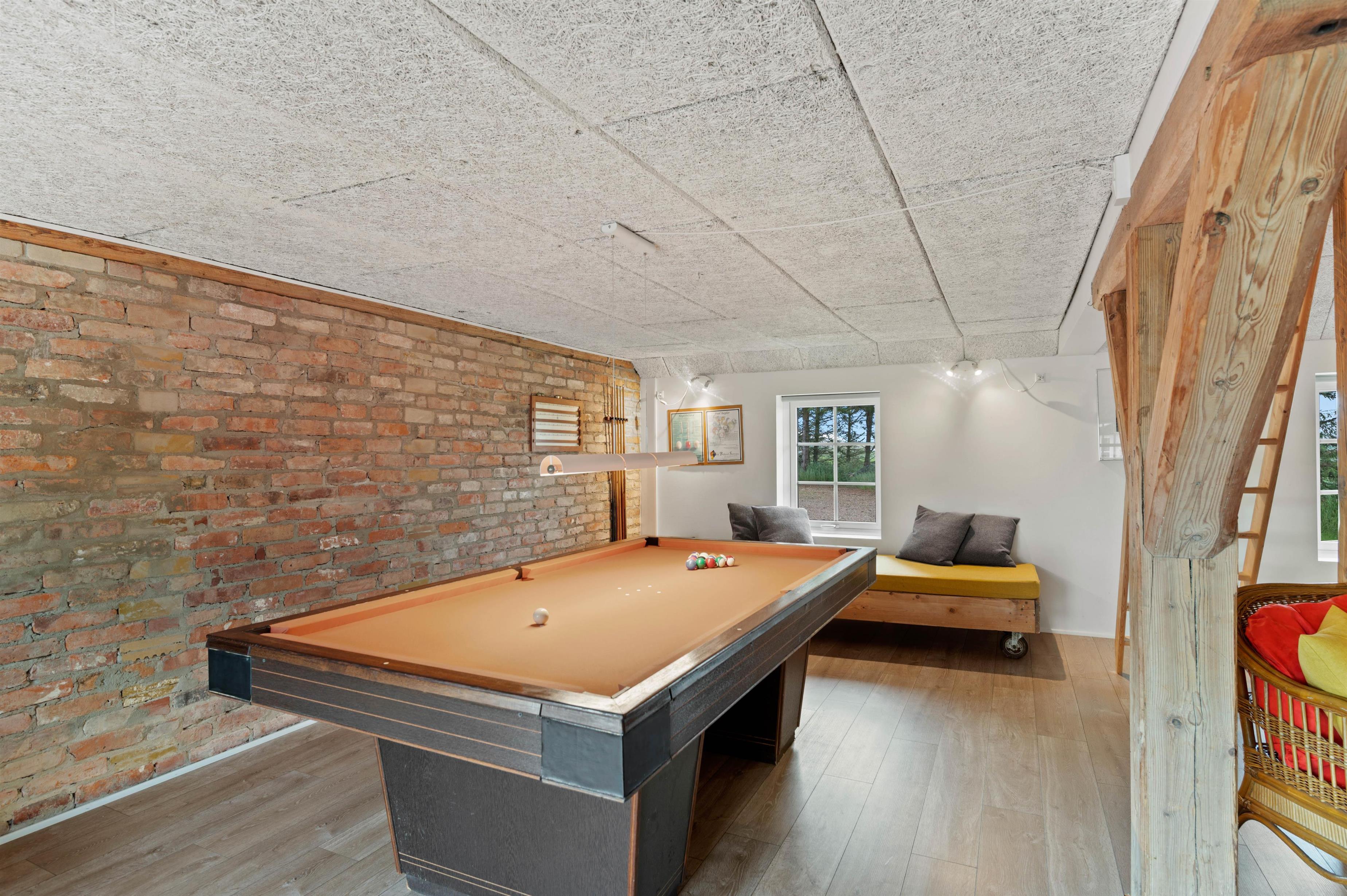 Et stort aktivitetsrum med billard, TV og hyggehjørne sørger for underholdningen for alle – børn som voksne - også på regnvejrsdage. I aktivitetsrummet er der delvis åbent helt op i kip, hvilket giver et dejligt stort rum. Her er også husets hems med 2 sovepladser. Et perfekt rum for hele familien – eller til familiens unge.