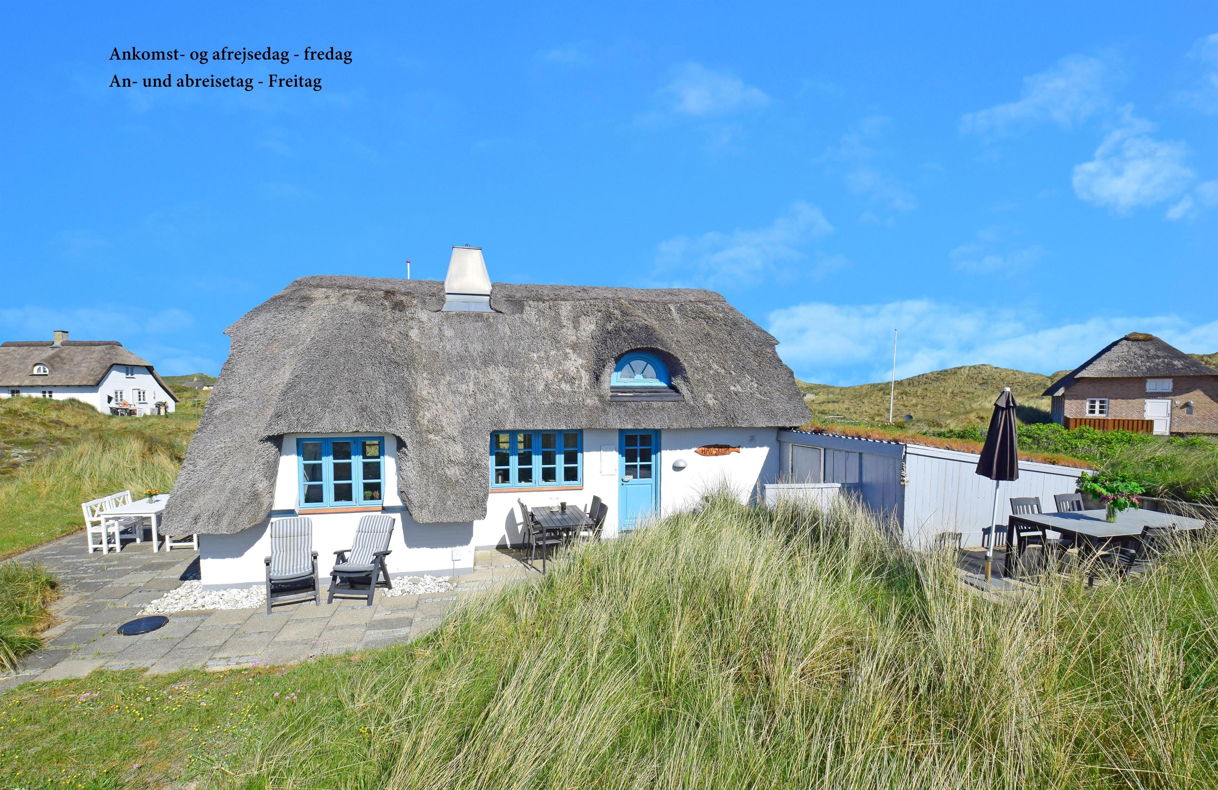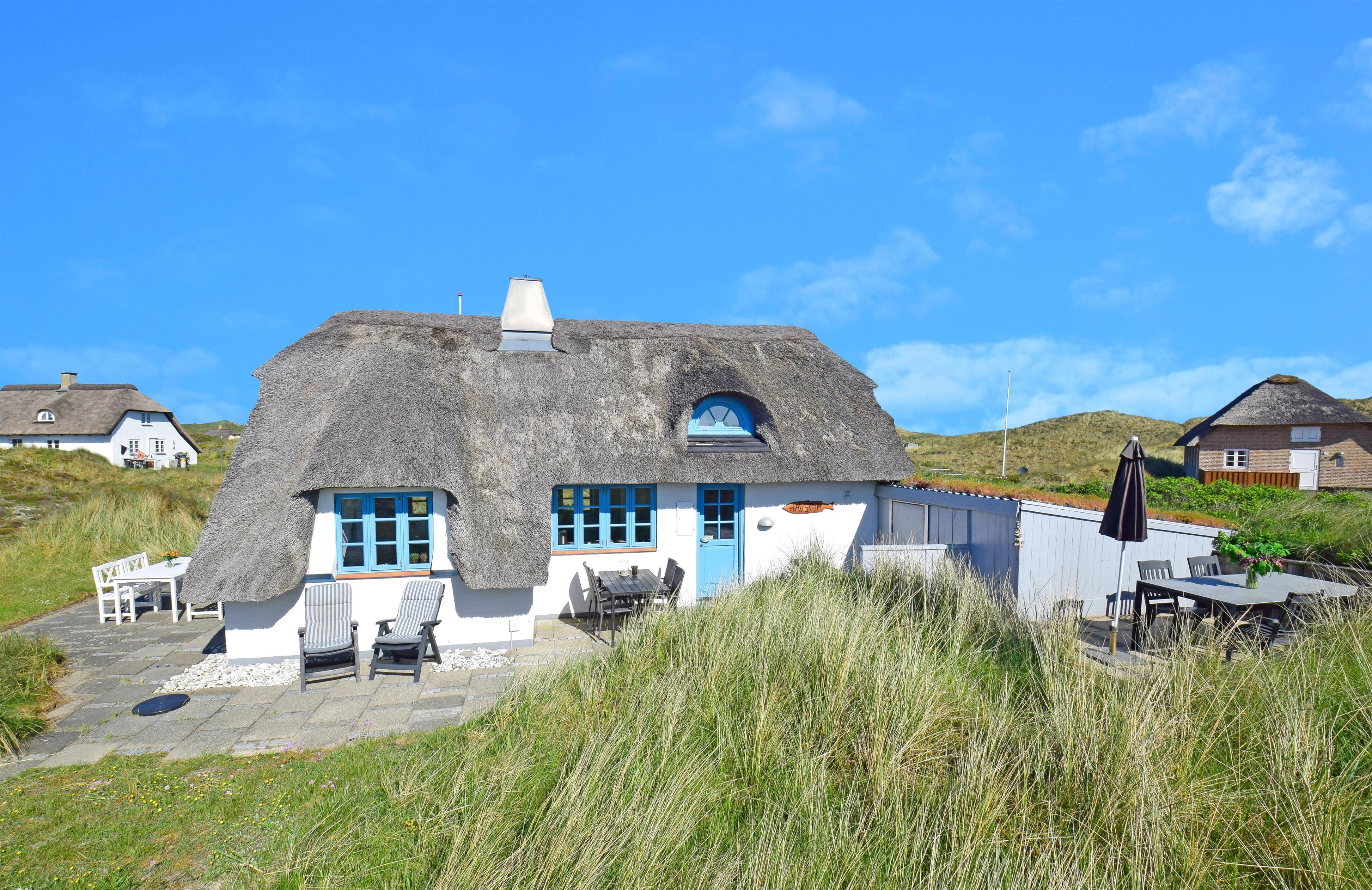 Det hyggelige sommerhus er på 75 m² og ligger midt i det smukke klitlandskab, blot 500 meter fra det brusende Vesterhav. Her kan I nyde ferien omgivet af fred og frihed, med naturens lyde og duften af havet som faste følgesvende.